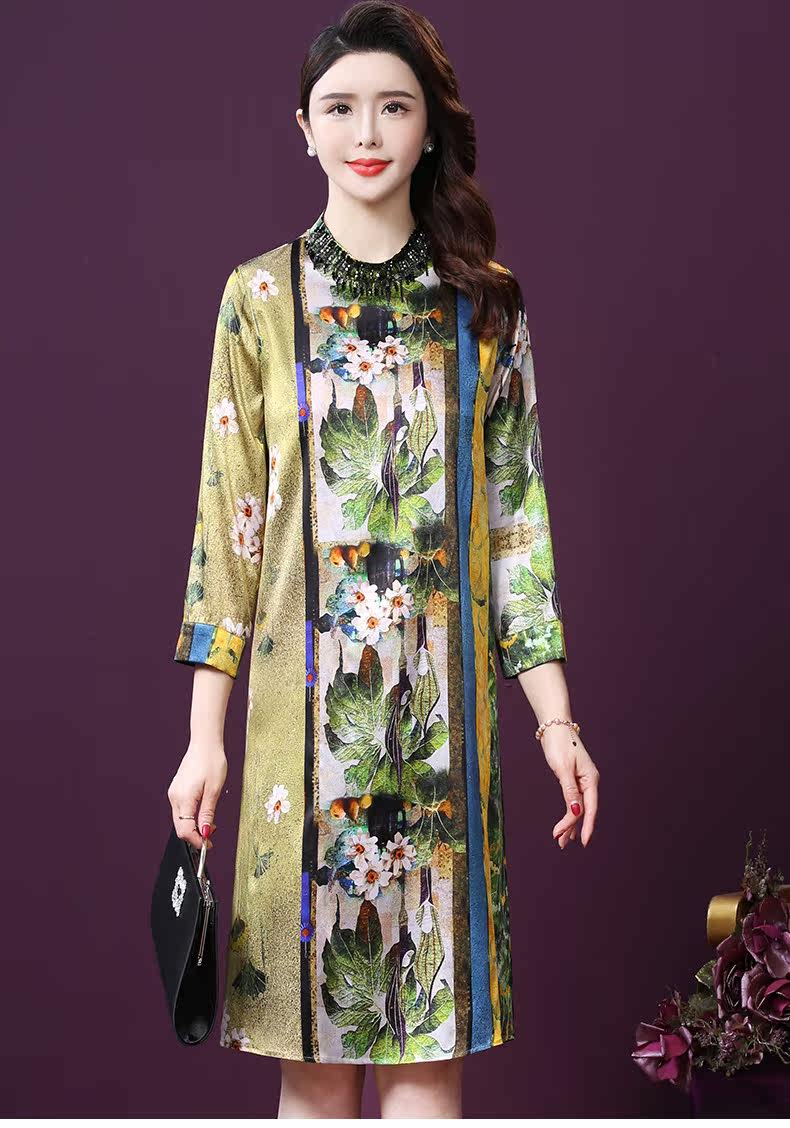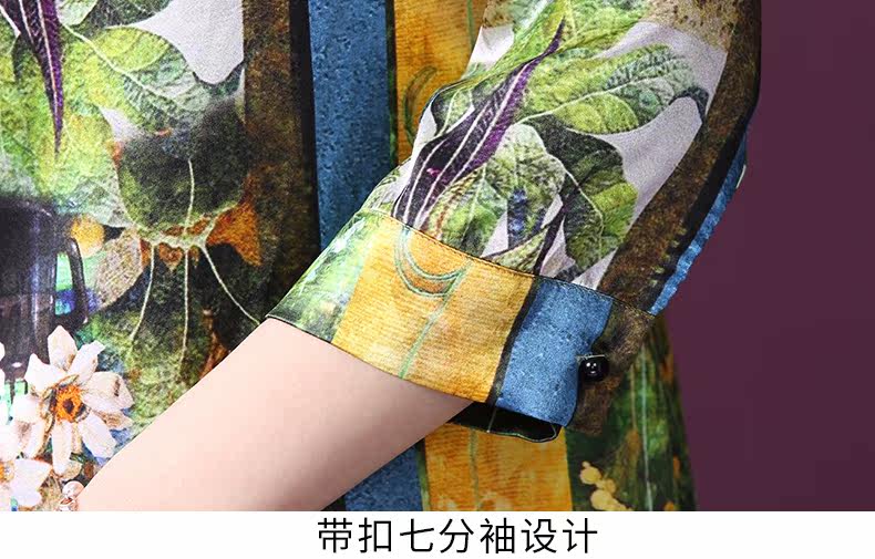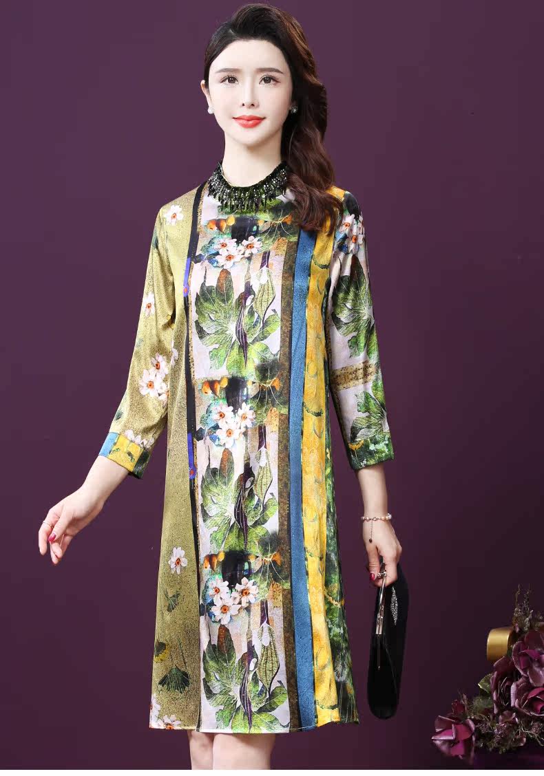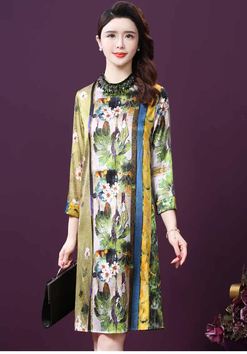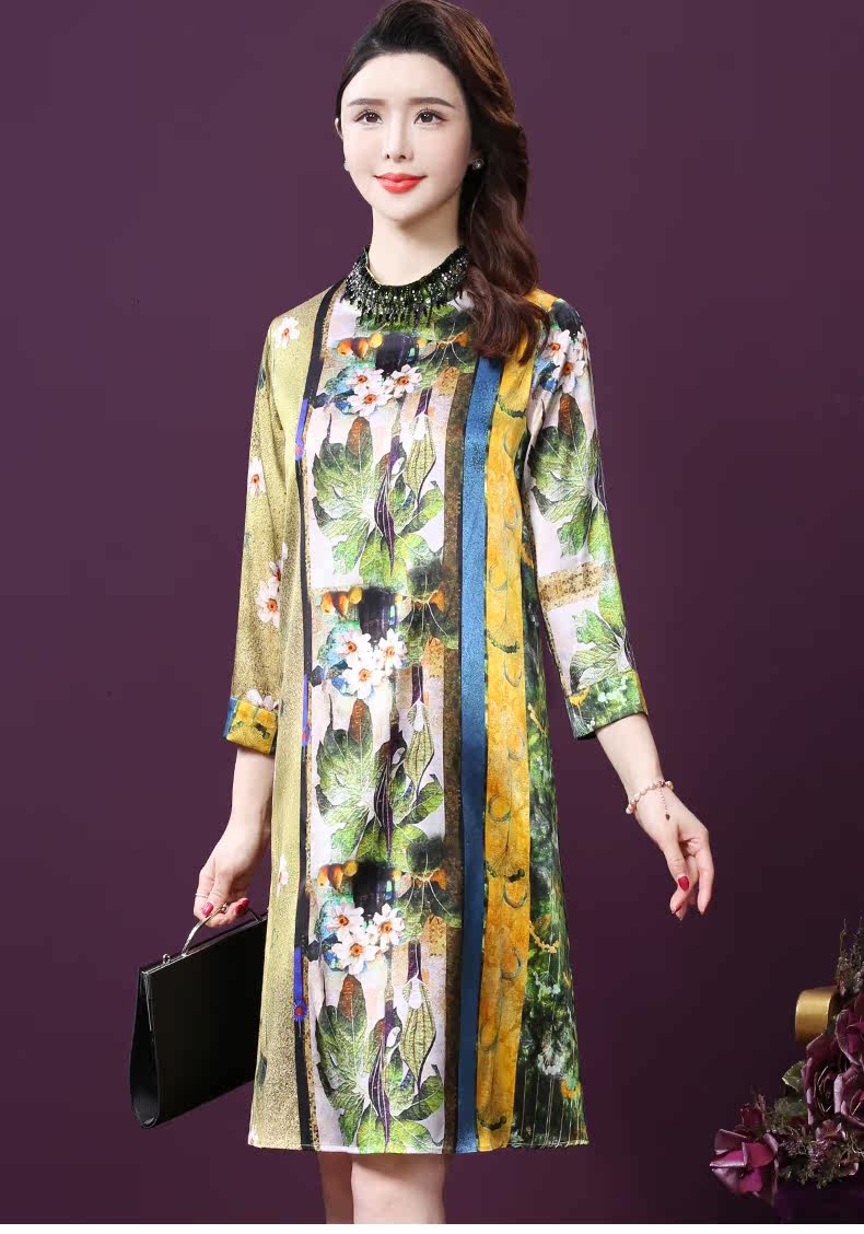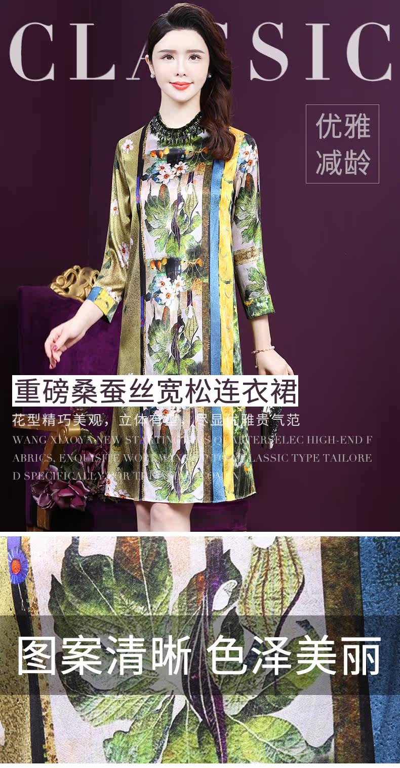 WXY-9107春夏新款流行复古中式印花宽松真丝裙