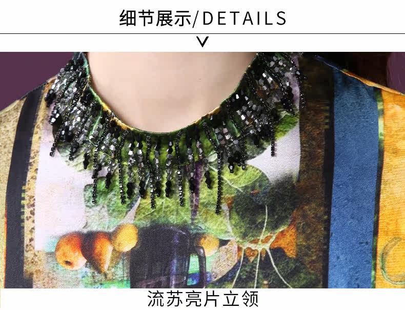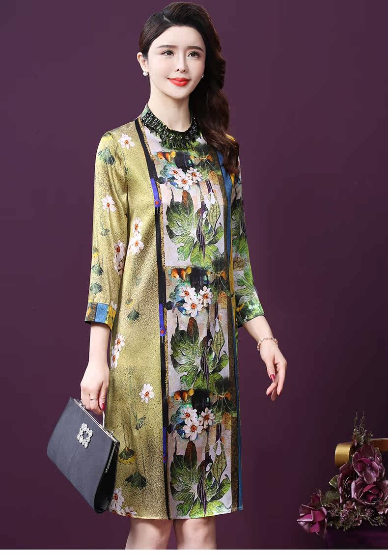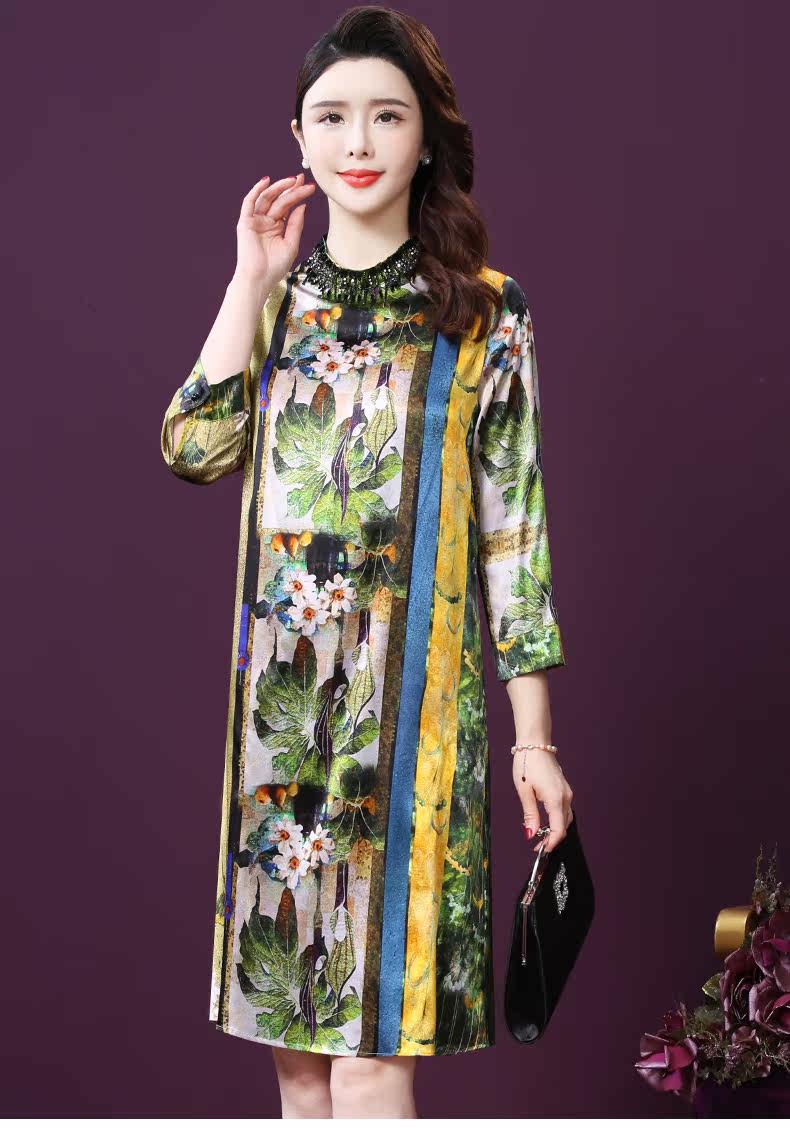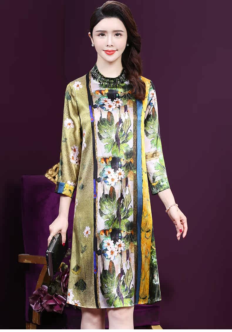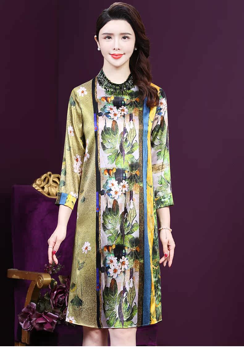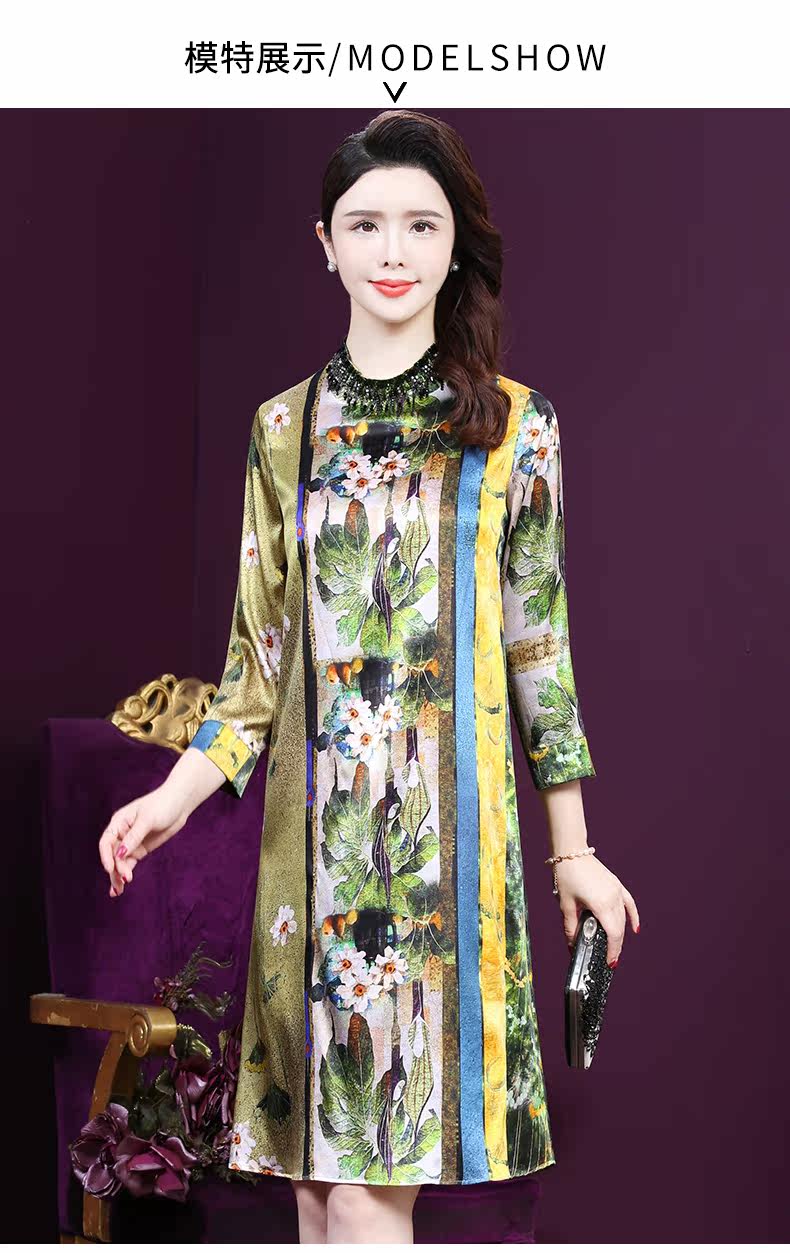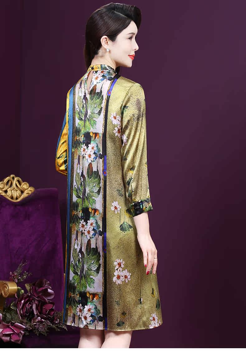 WXY-9107春夏新款流行复古中式印花宽松真丝裙