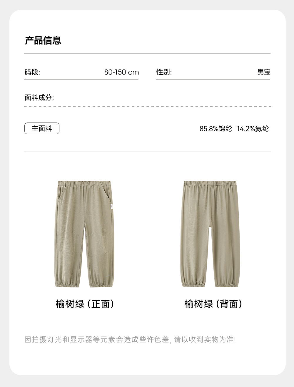 【商场同款】英氏儿童裤子夏季速干透气男宝裤子2025新款九分裤