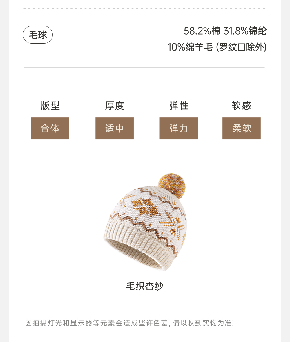 【商场同款】英氏儿童帽子羊毛保暖秋冬男童帽子女童毛织帽新款