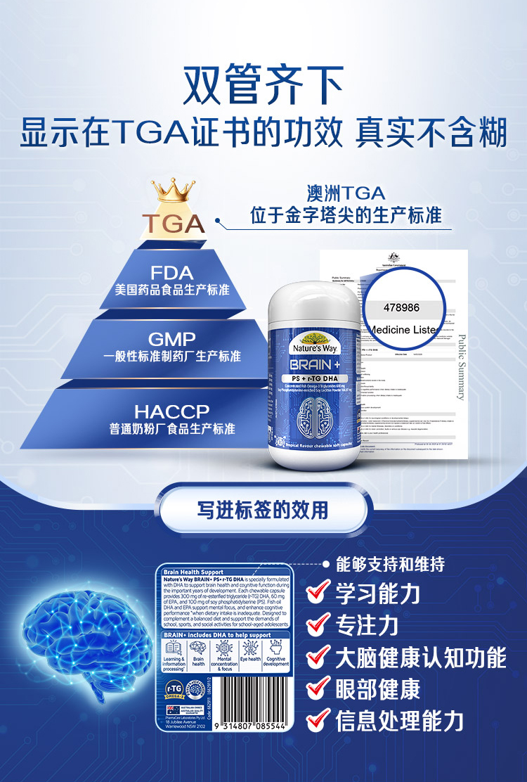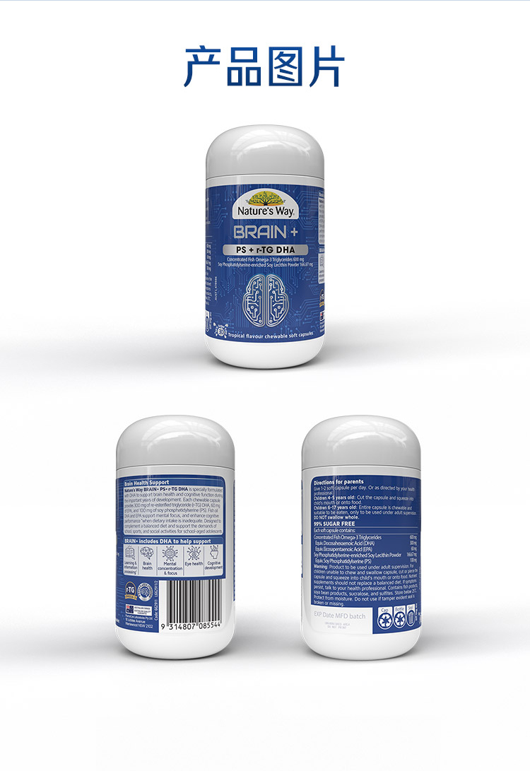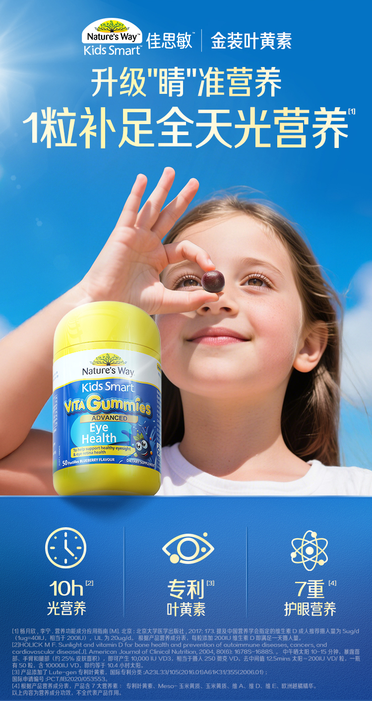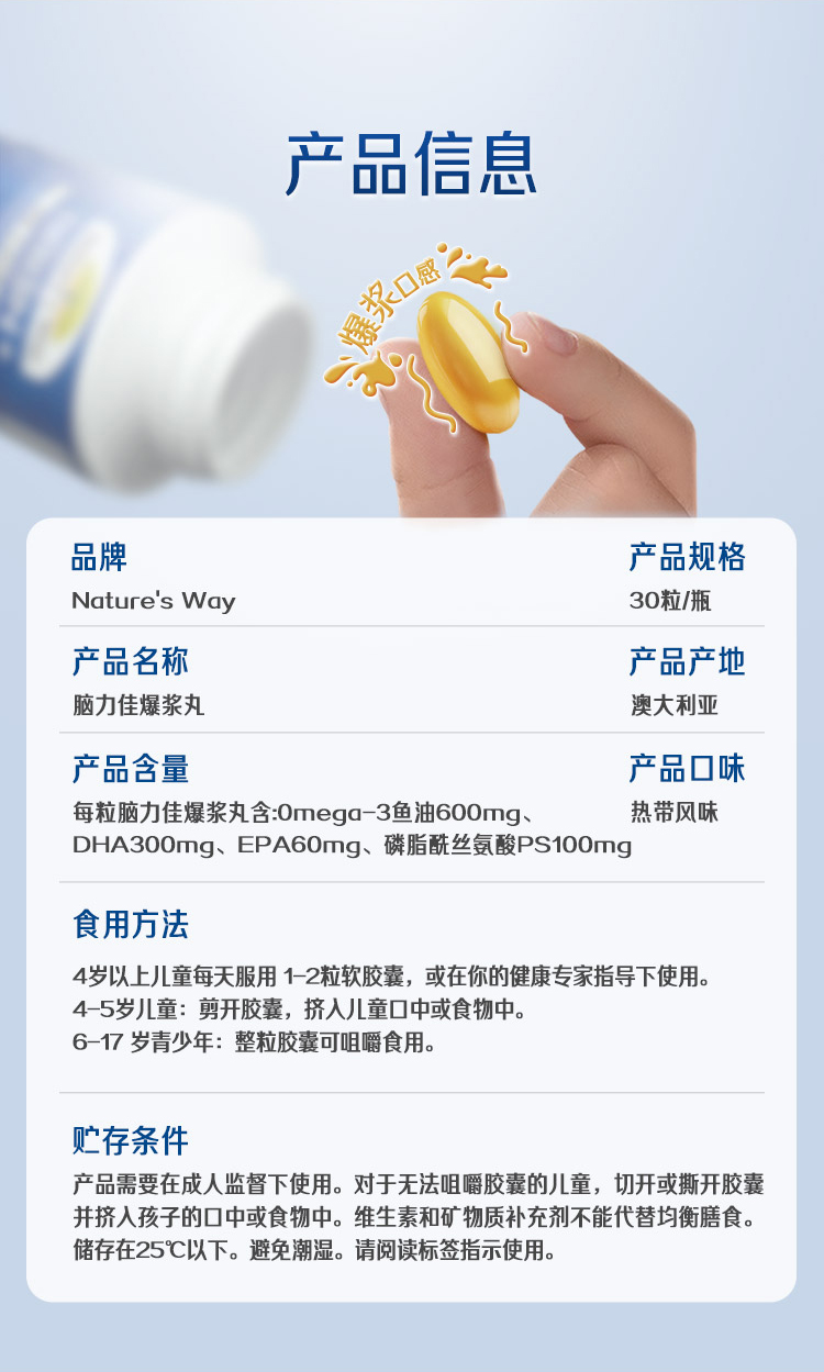 4-17岁 儿童脑力佳胶囊30粒+金装叶黄素软糖50粒 | Nature's Way 佳思敏