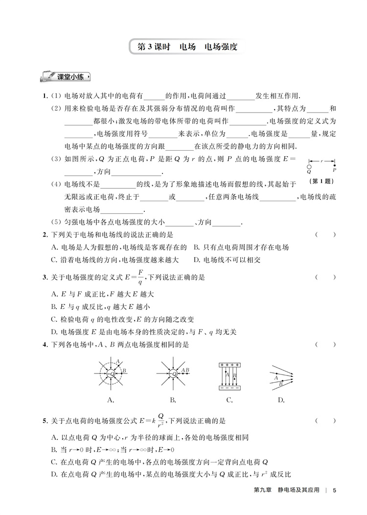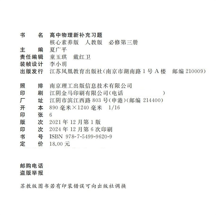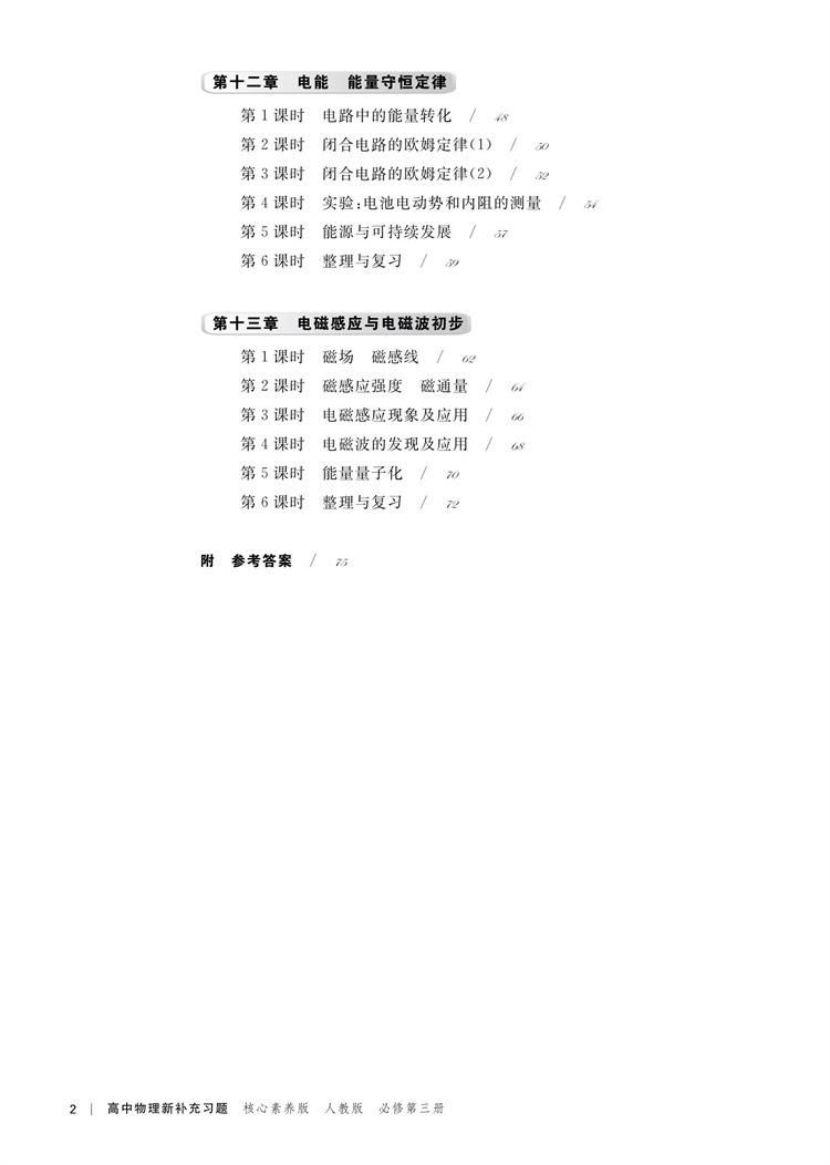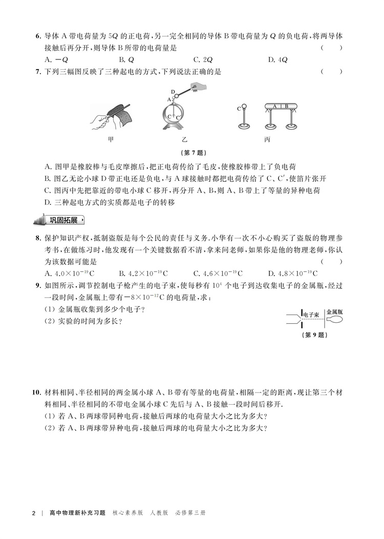 2025年 高中物理新补充习题 人教版 必修第三册 含参考答案 核心素养版 高中教辅 江苏凤凰教育出版社