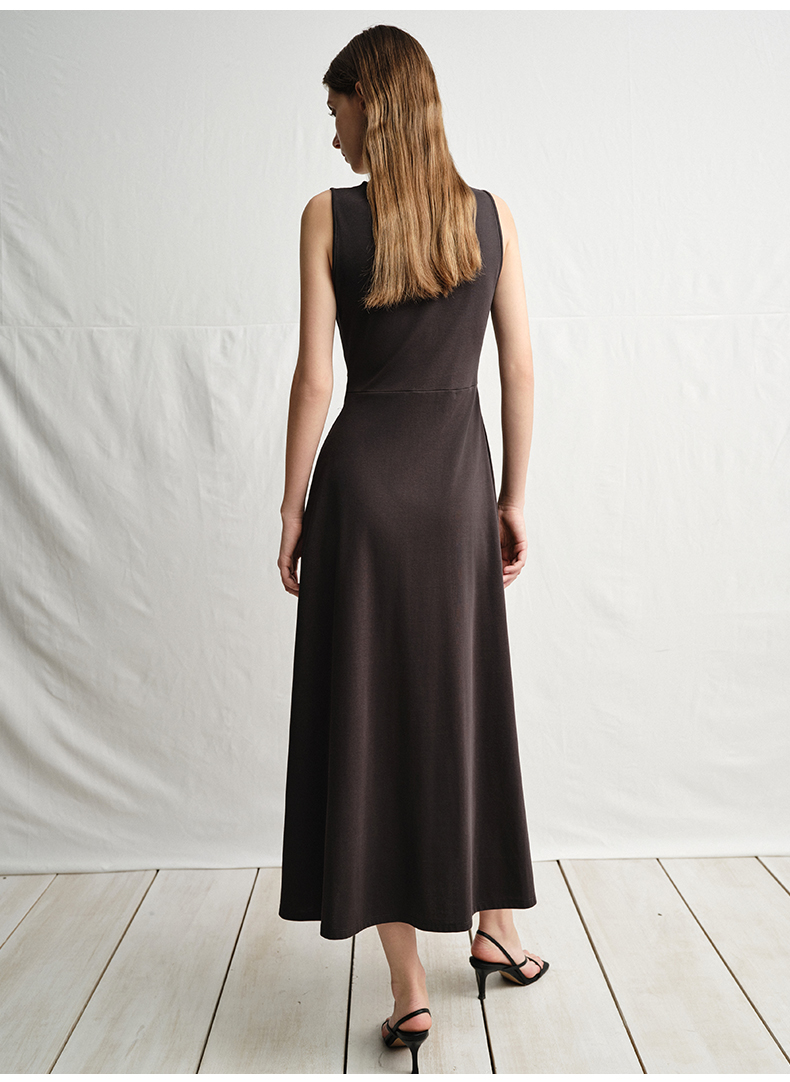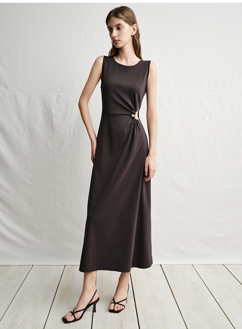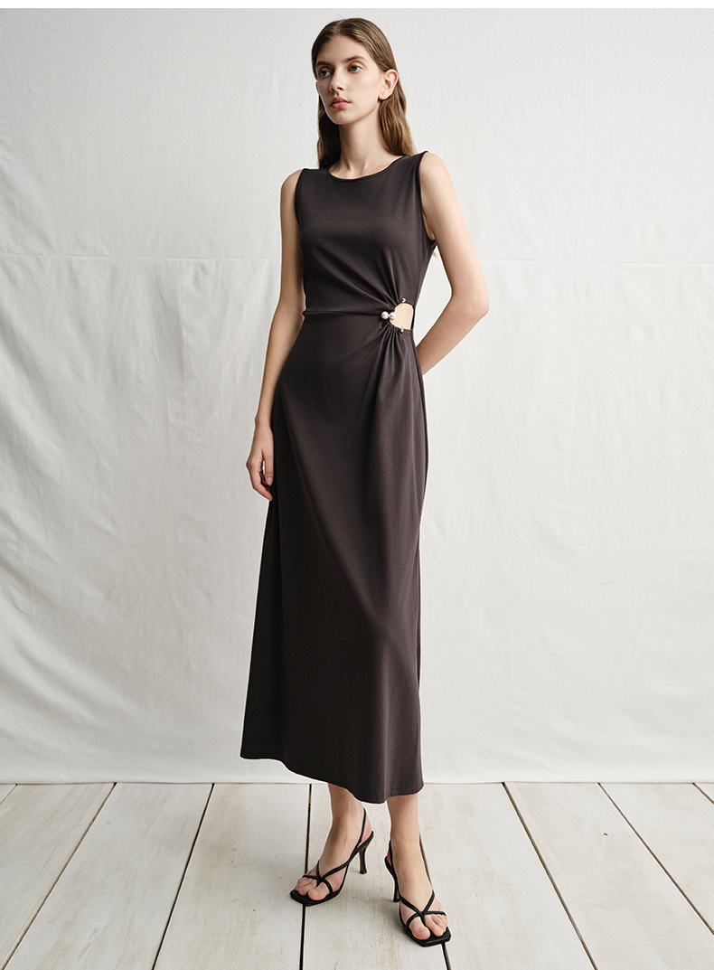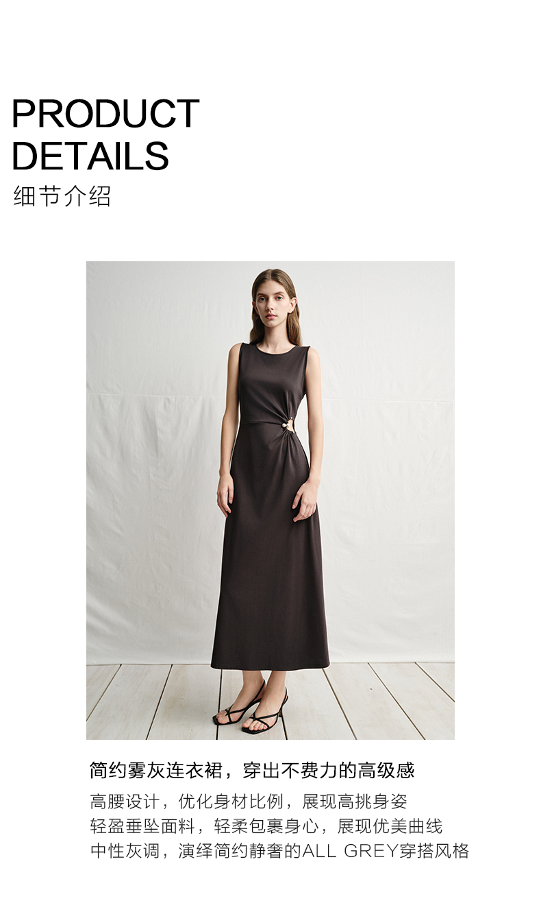 VIMAGE纬漫纪腰部镂空雾灰色无袖收腰显瘦A字连衣裙2025夏季新款V2307912