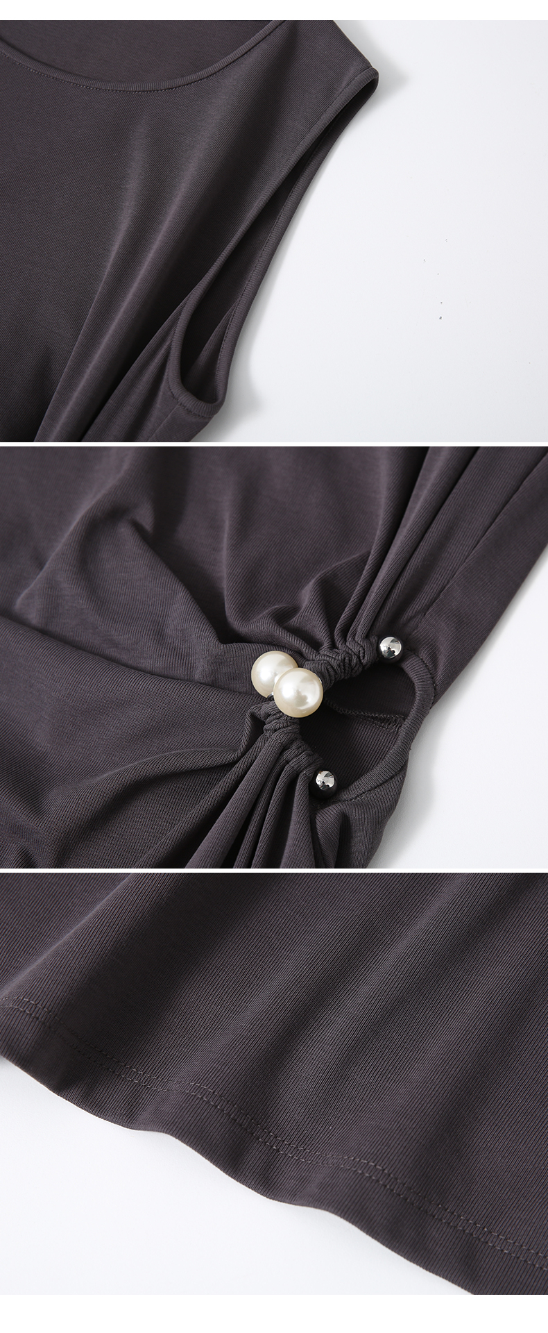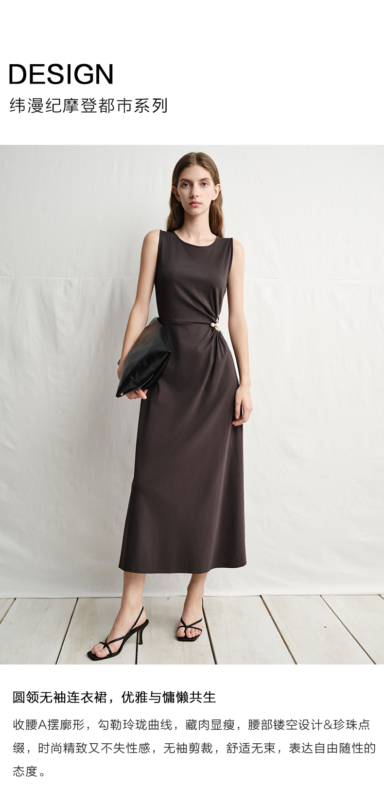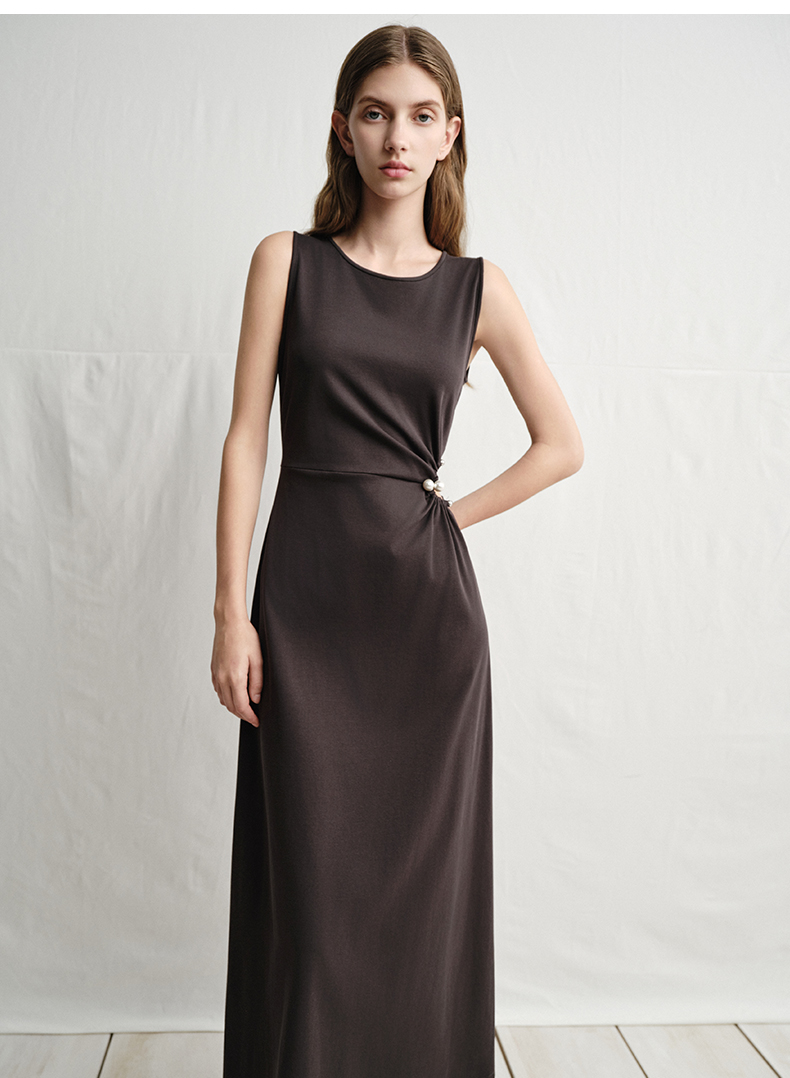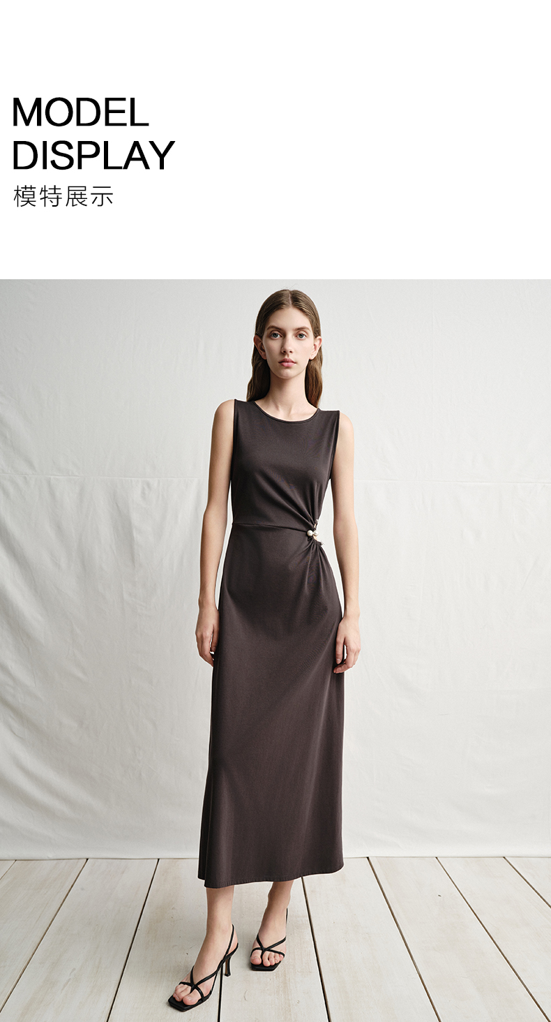 VIMAGE纬漫纪腰部镂空雾灰色无袖收腰显瘦A字连衣裙2025夏季新款V2307912