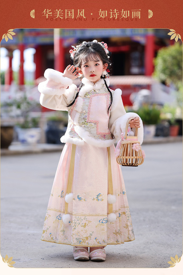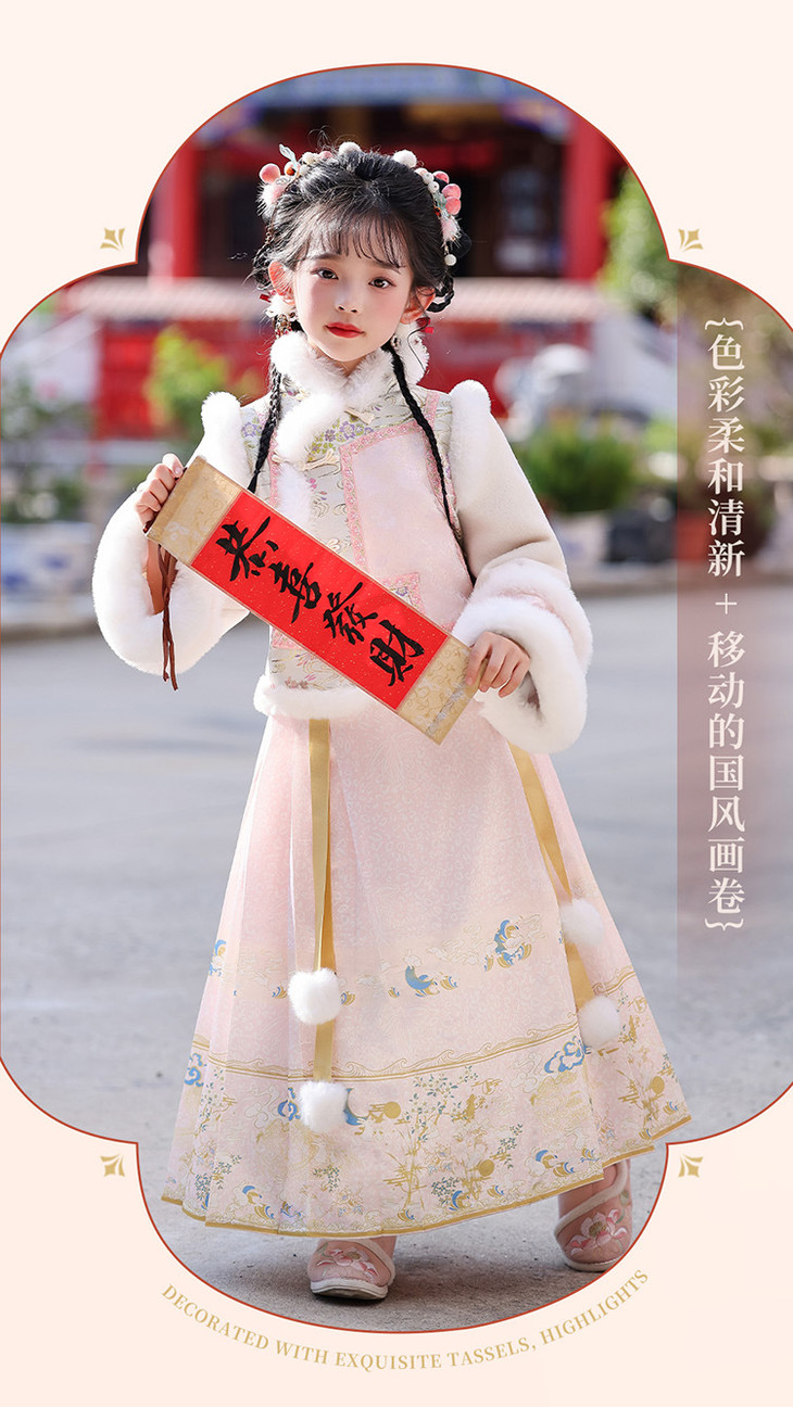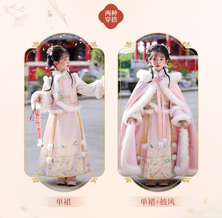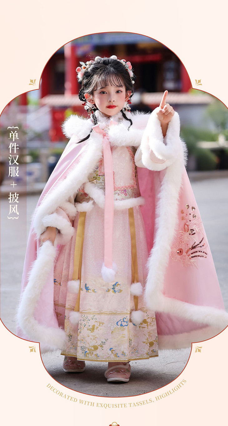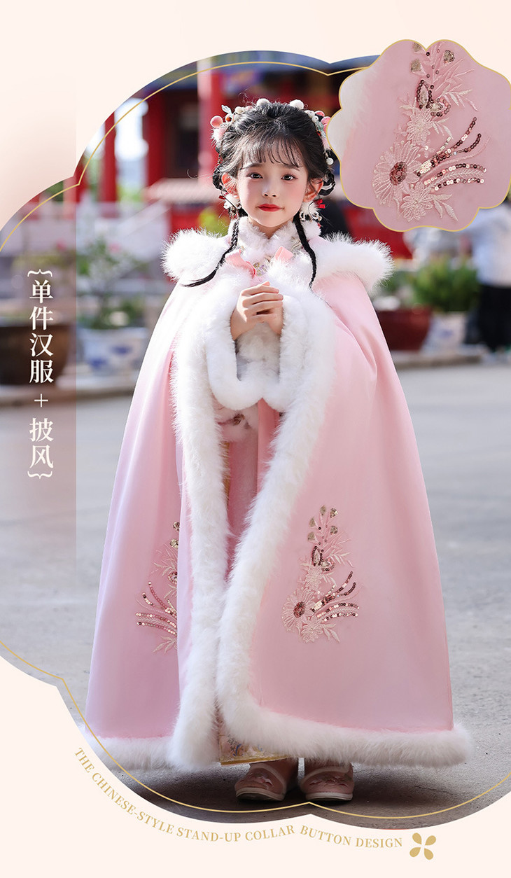 女童公主裙古装汉服拜年服,斗篷套装古风唐装(赠送发夹)XWN2890