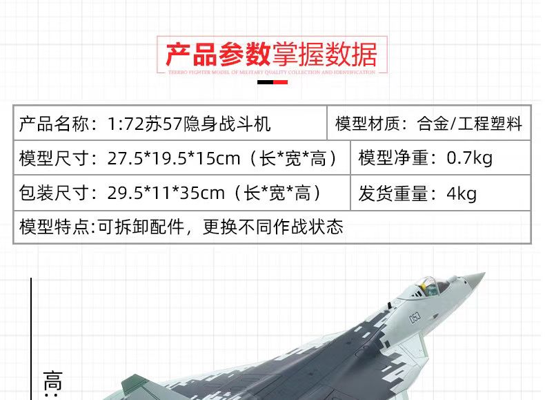 【特尔博-长春航展、九三阅兵纪念品】 1:72苏57模型su57合金飞机模型俄罗斯战斗机航模成品