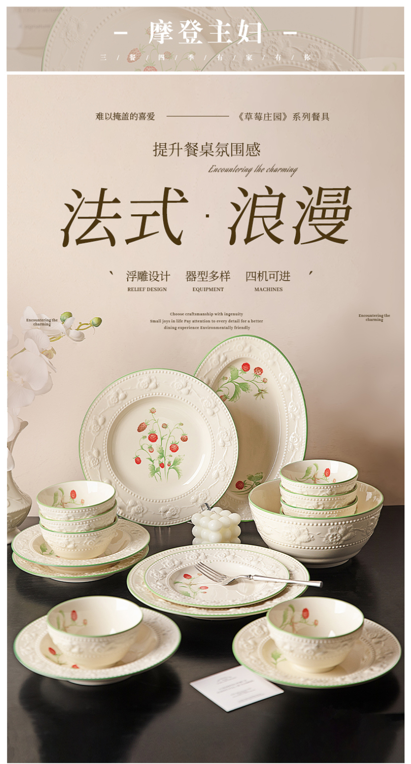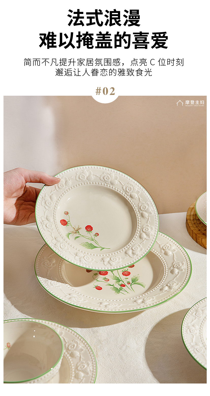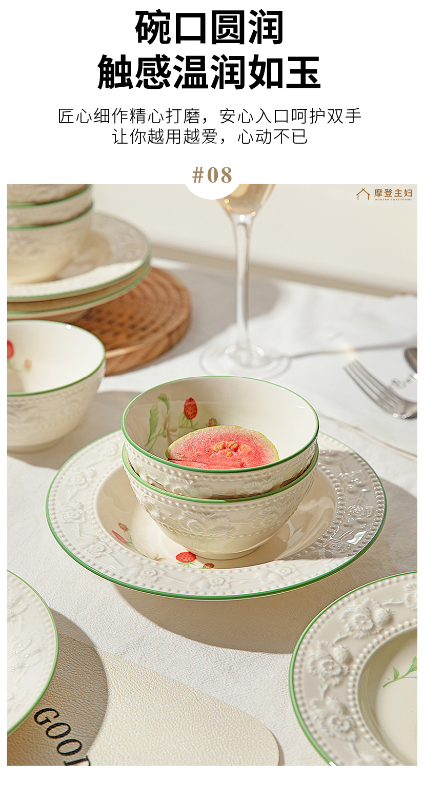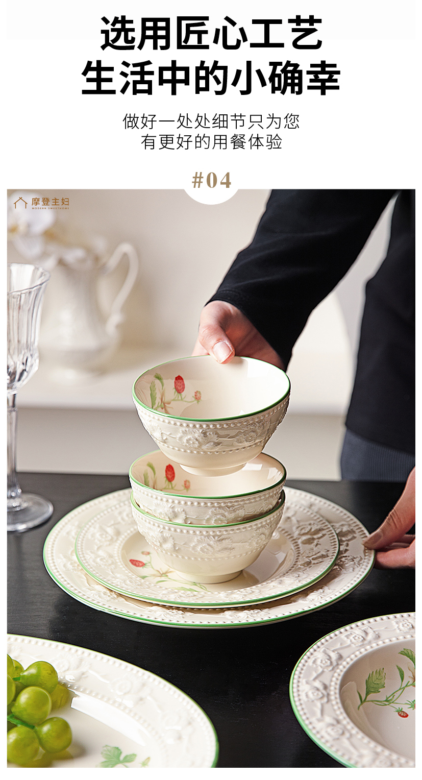 摩登主妇法式浮雕餐具碗碟家用陶瓷碗具漂亮盘子菜盘酸奶碗米饭碗