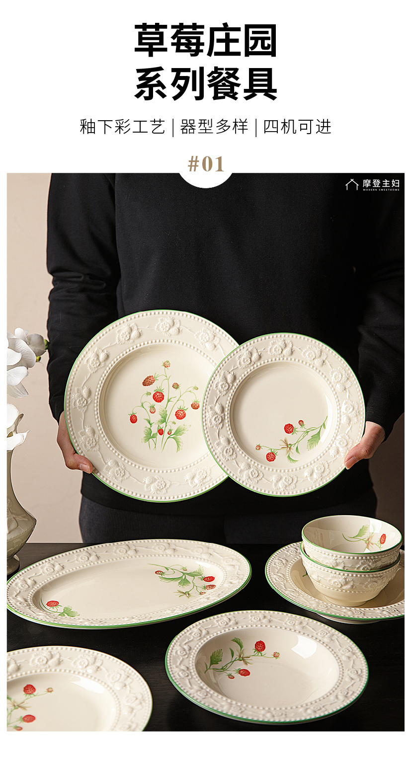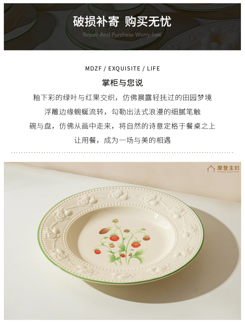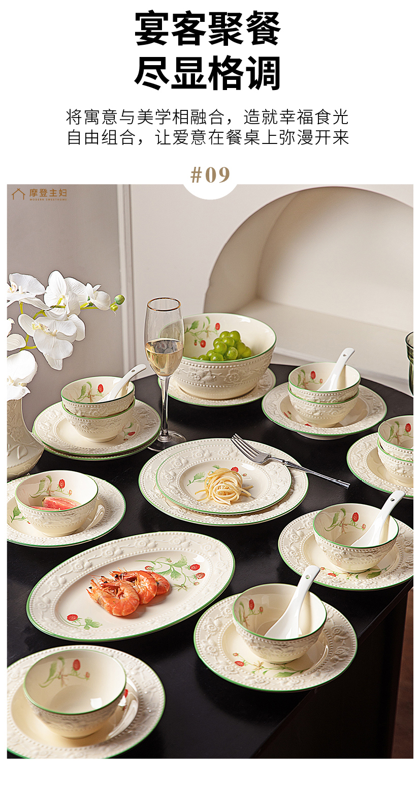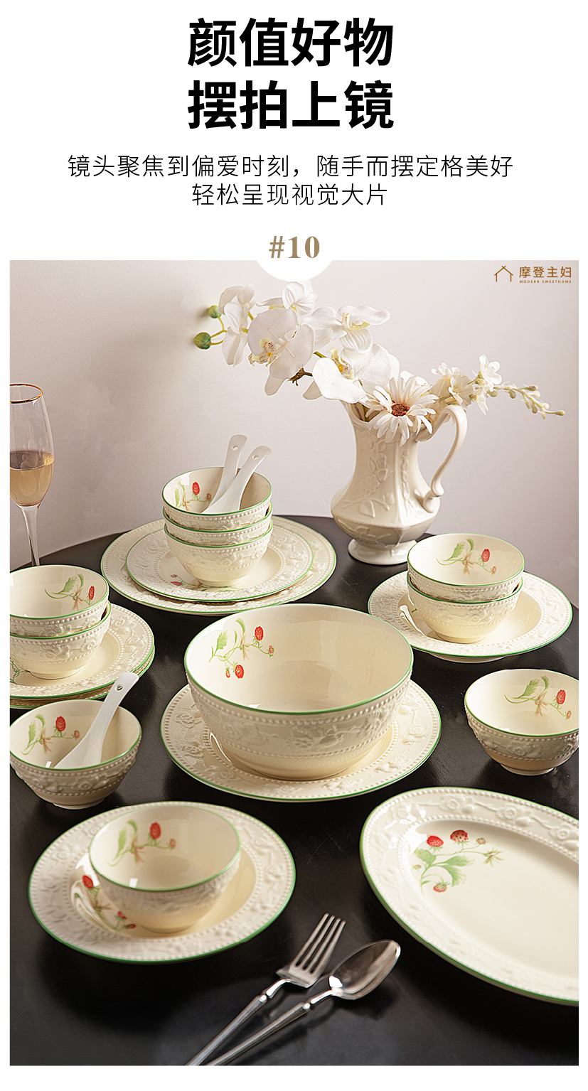 摩登主妇法式浮雕餐具碗碟家用陶瓷碗具漂亮盘子菜盘酸奶碗米饭碗