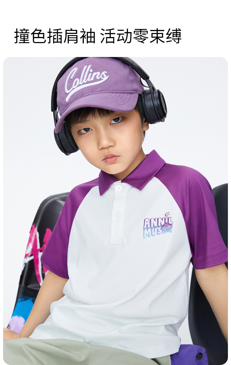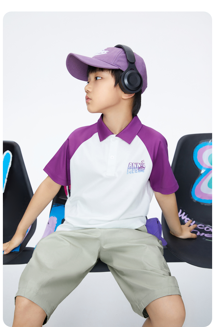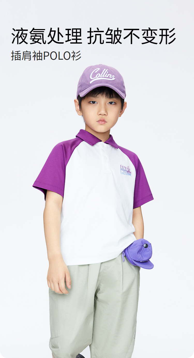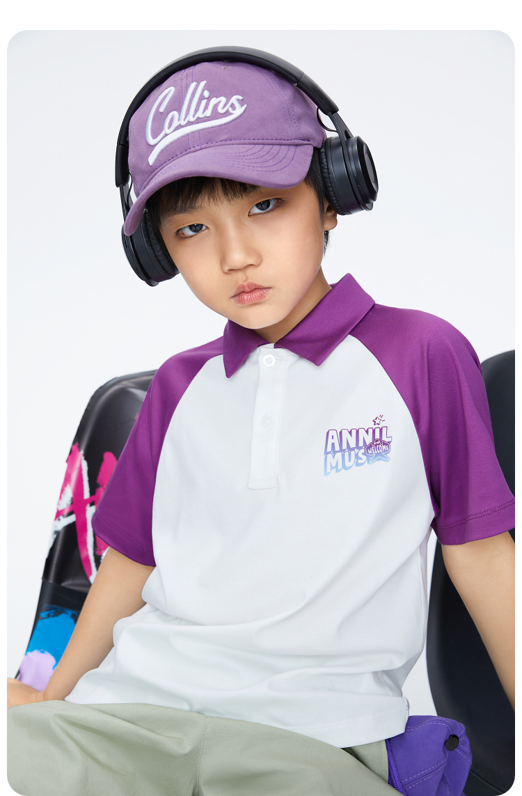 男童插肩袖POLO衫翻领短袖新款安奈儿童装实体店同款AB421741