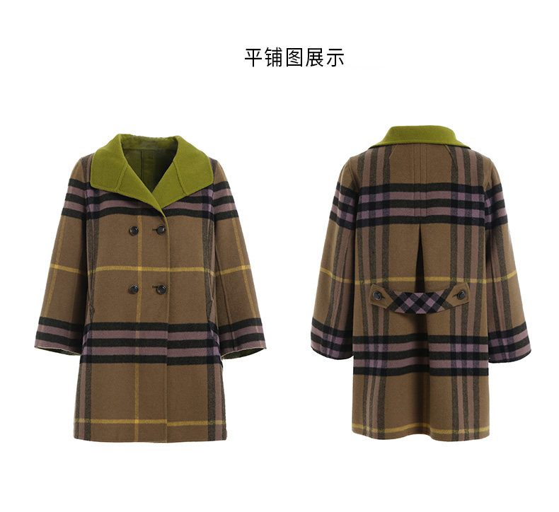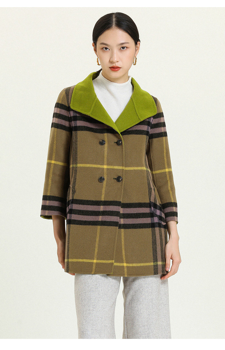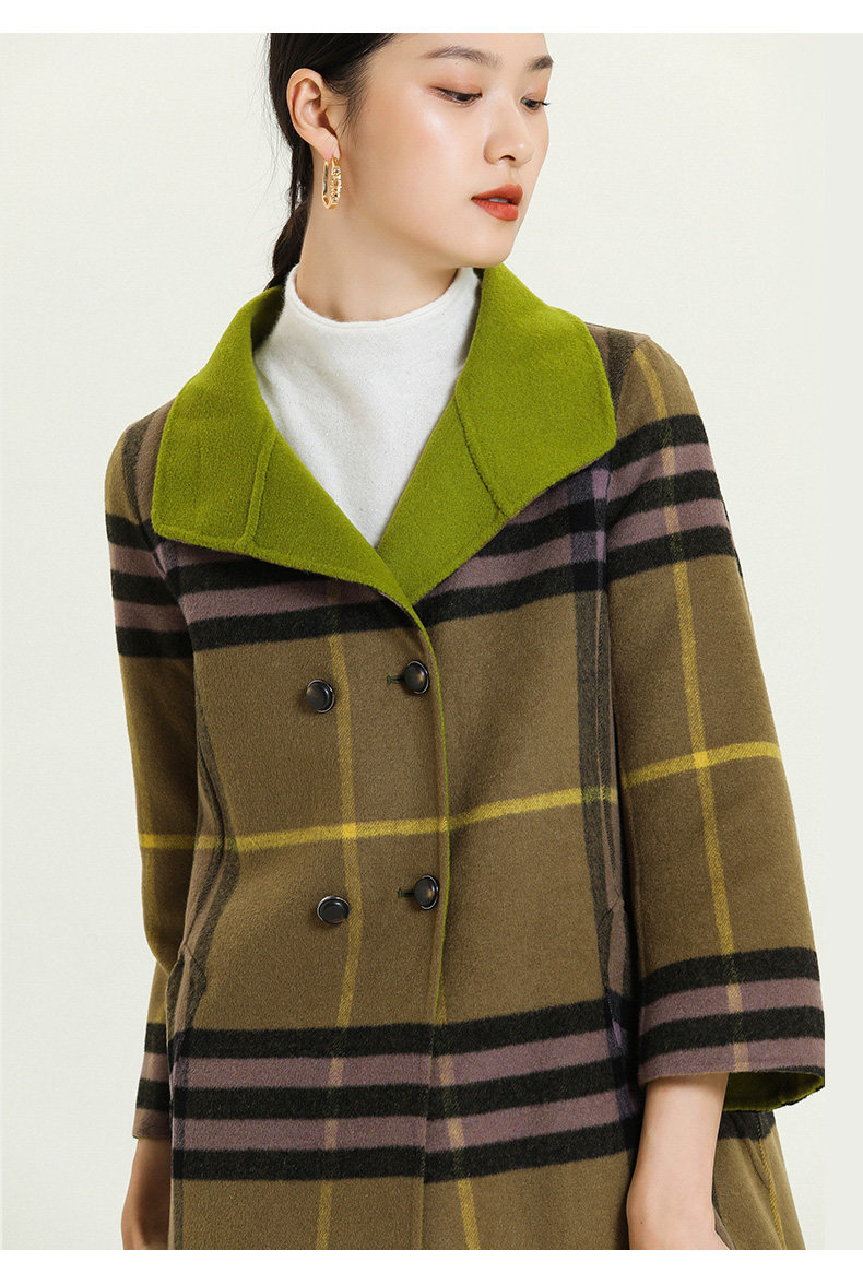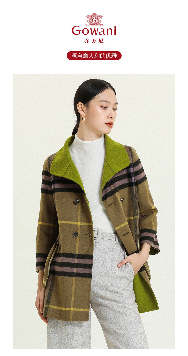 乔万尼冬季格子毛呢外套女简约宽松羊毛双面呢子大衣修身中长款E144A816