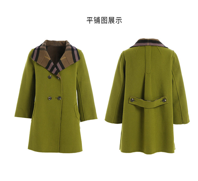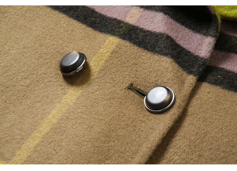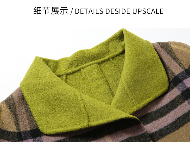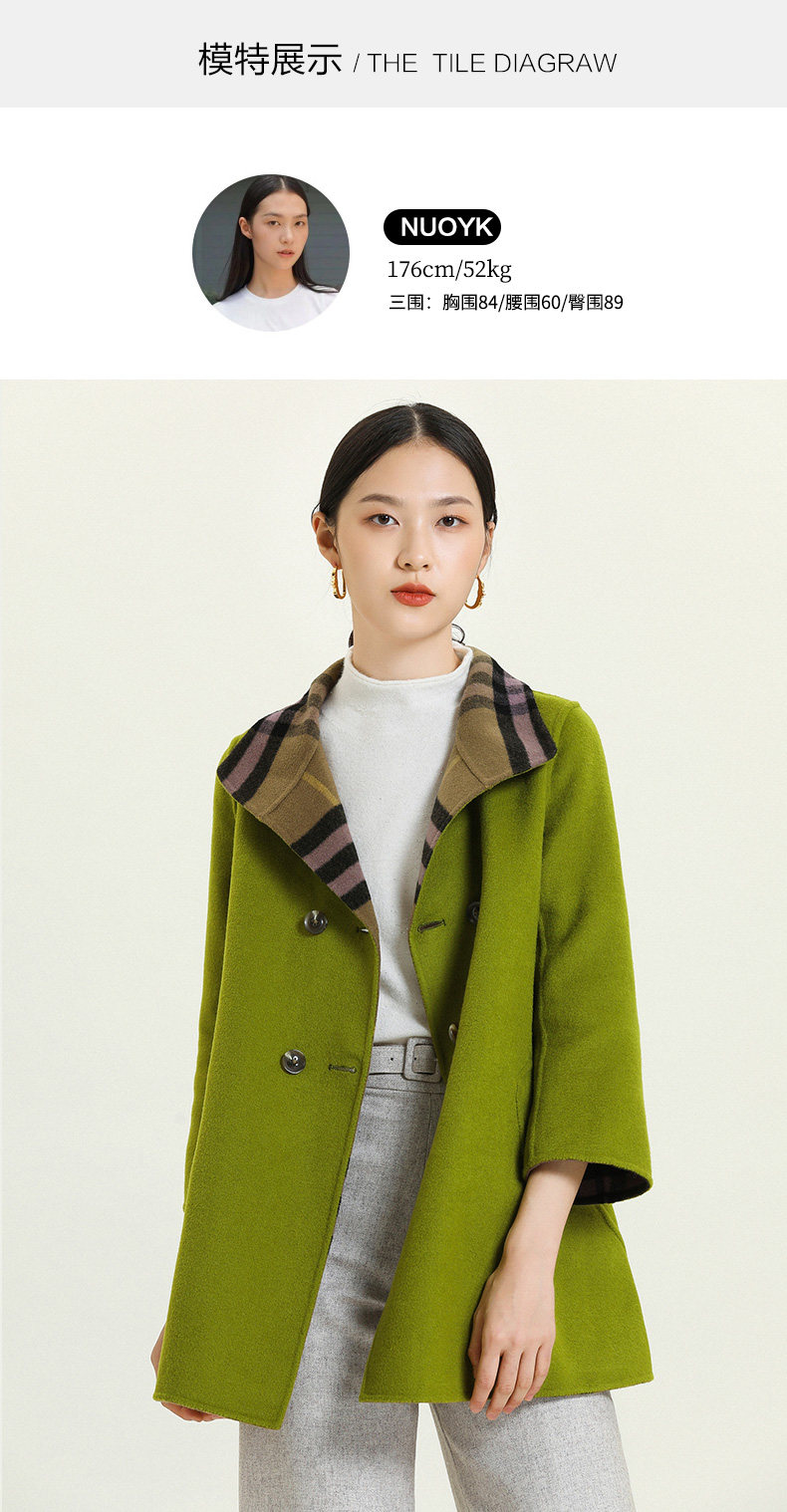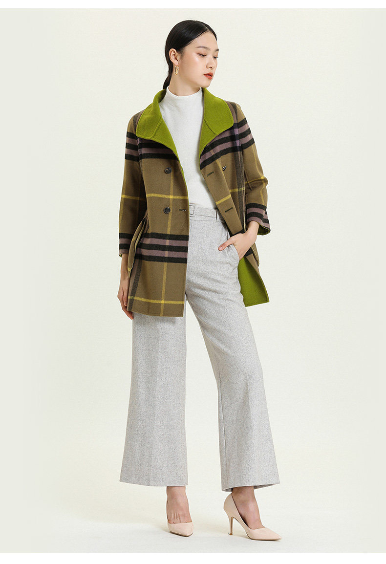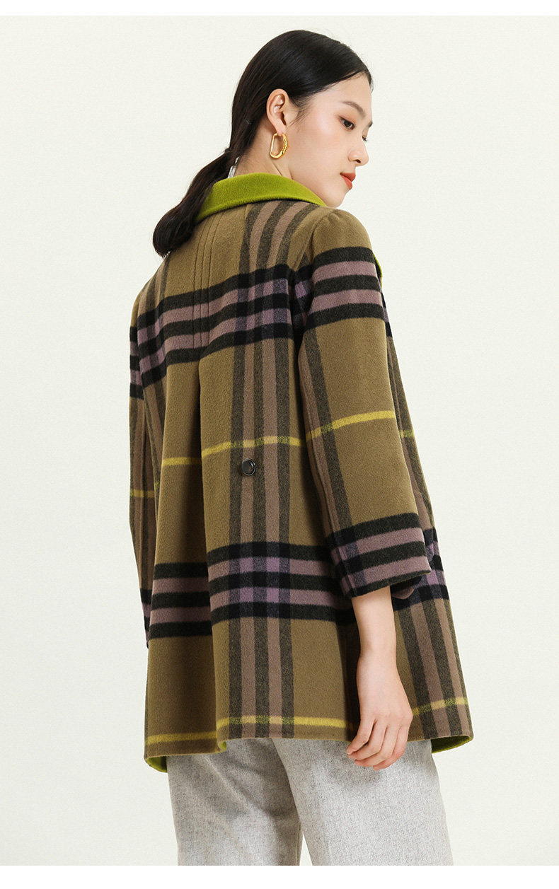 乔万尼冬季格子毛呢外套女简约宽松羊毛双面呢子大衣修身中长款E144A816