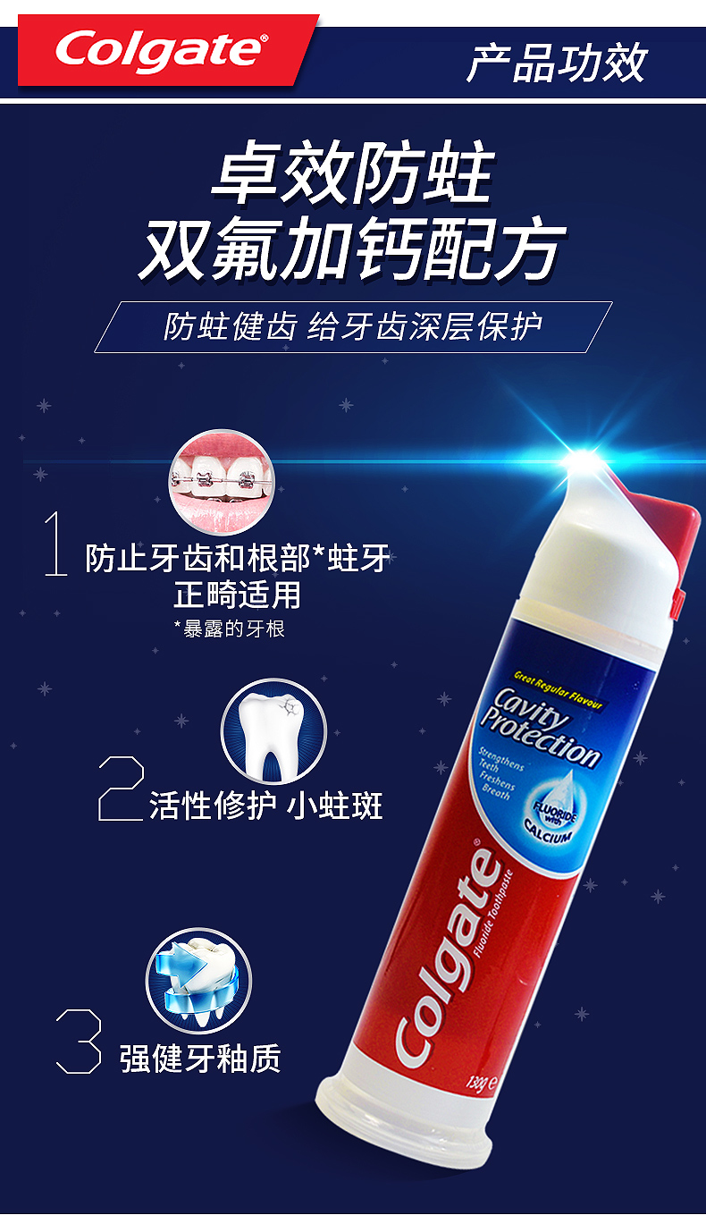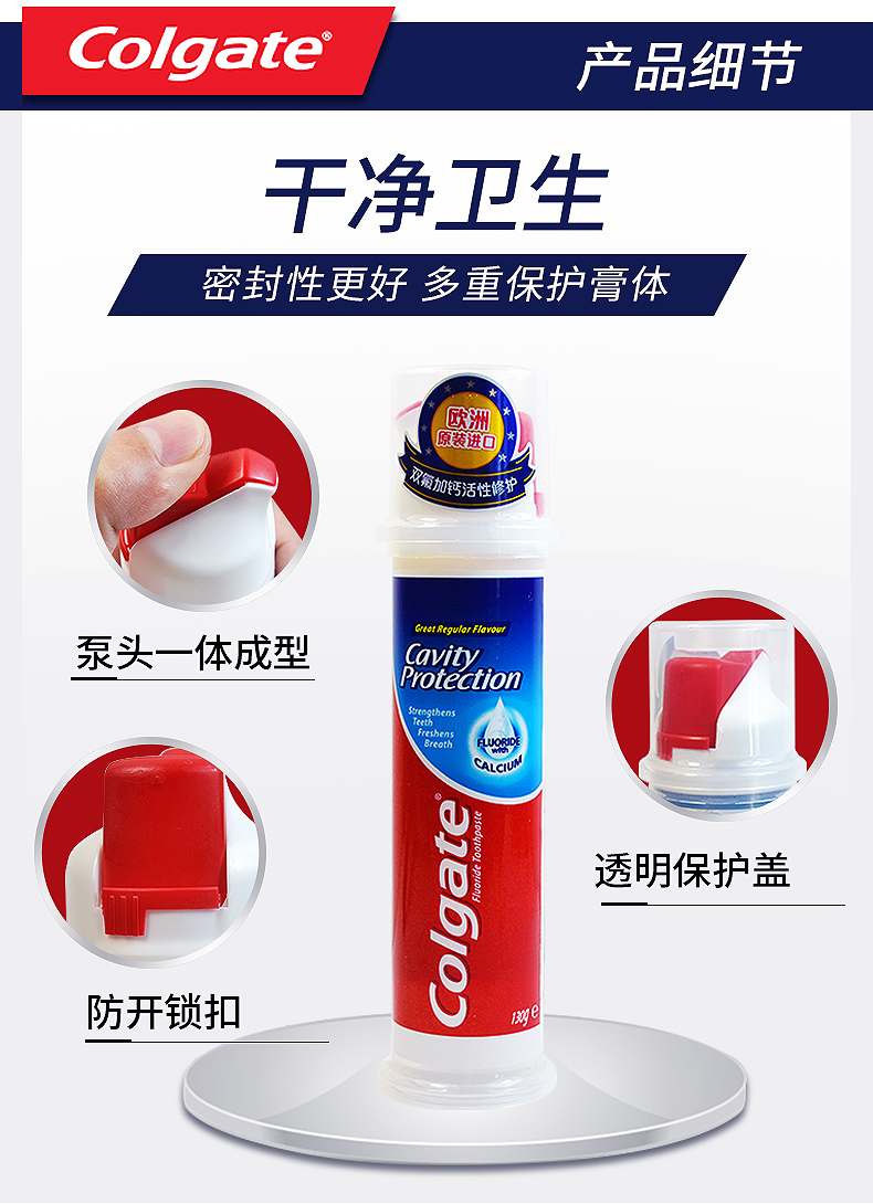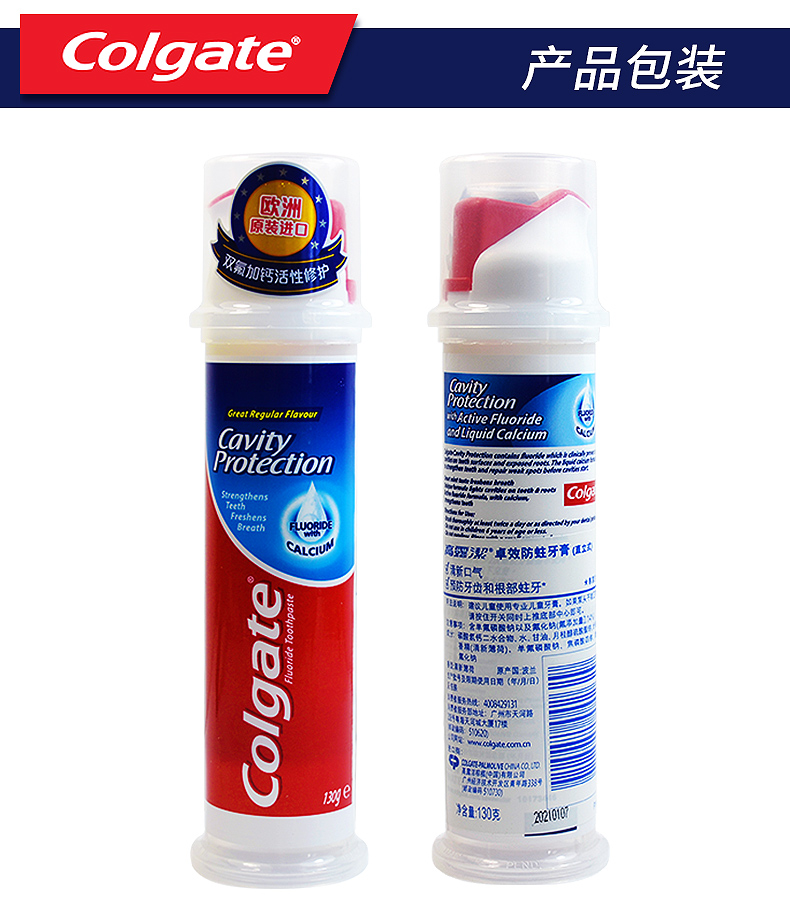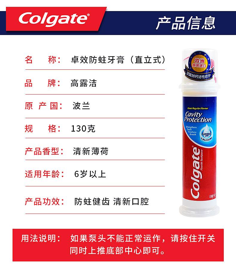 【品牌直发】欧洲进口高露洁卓效防蛀直立式按压式牙膏130g