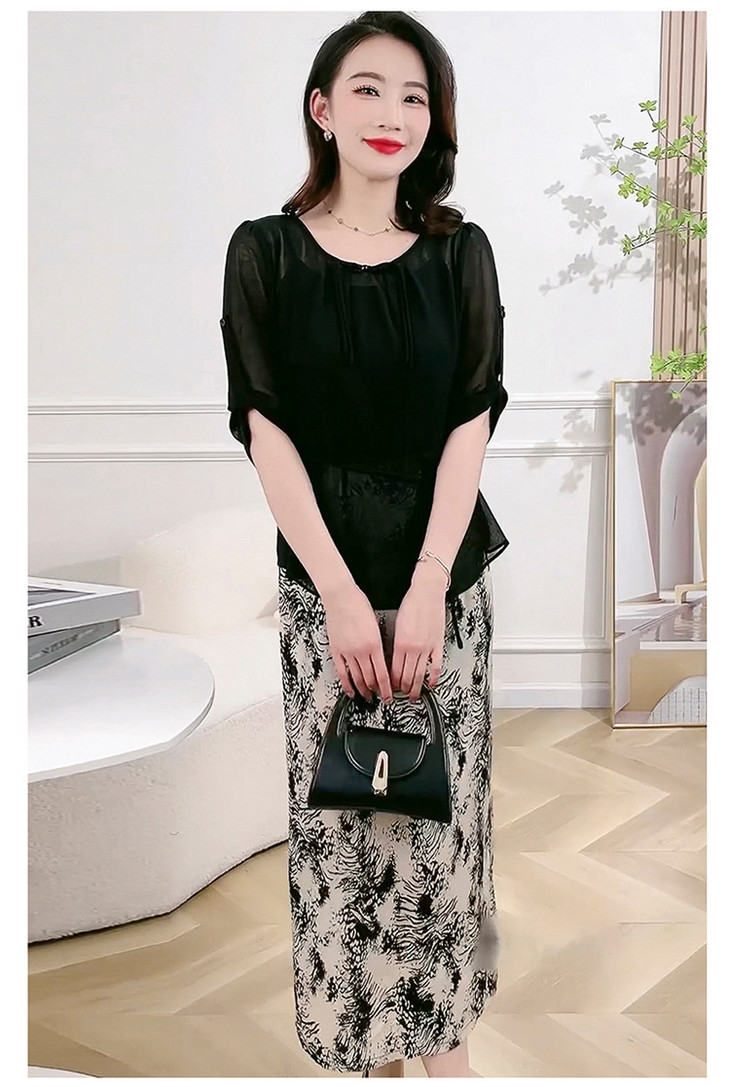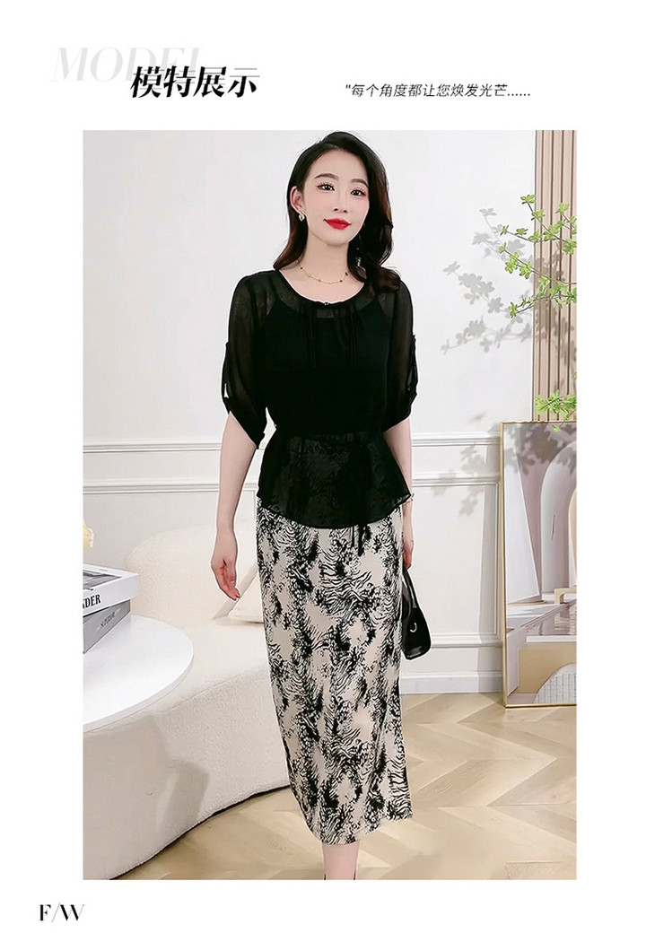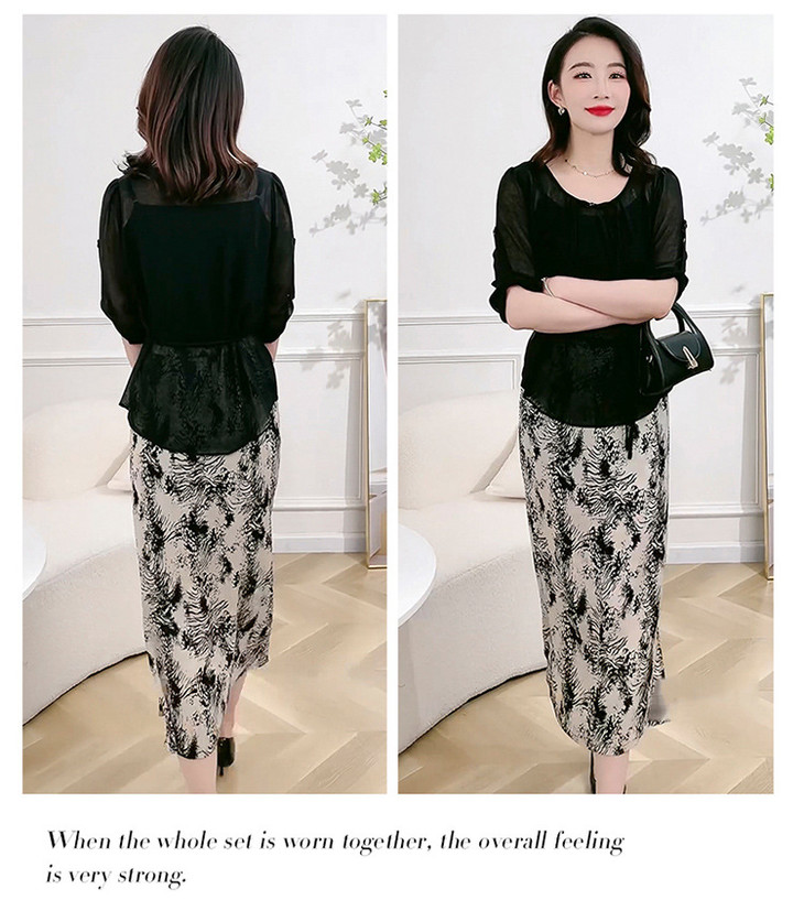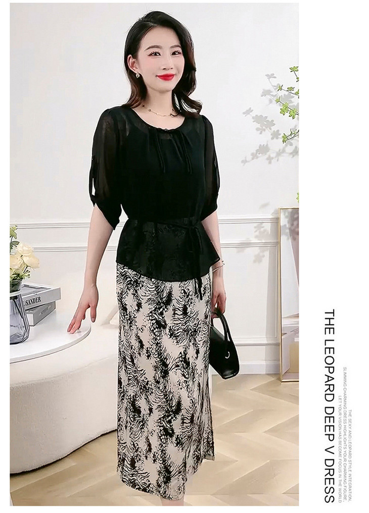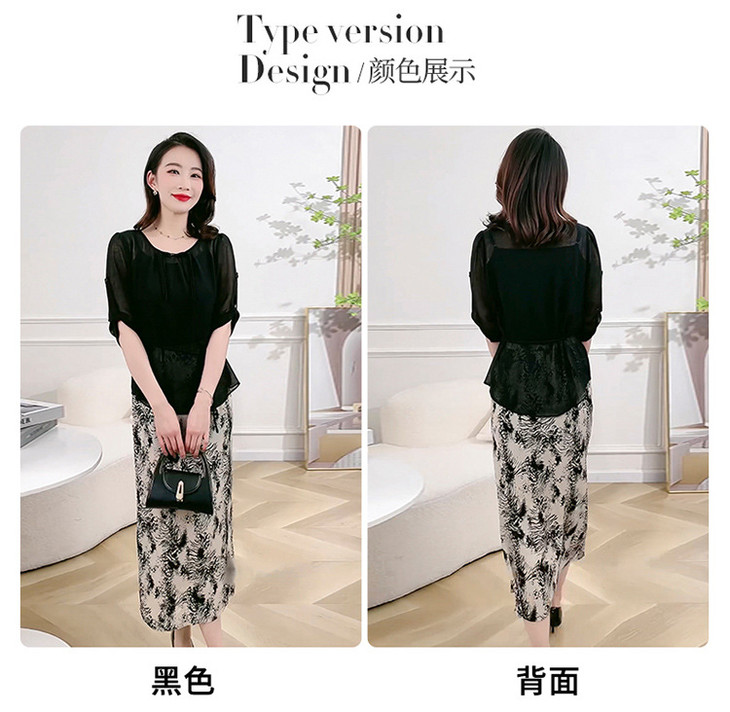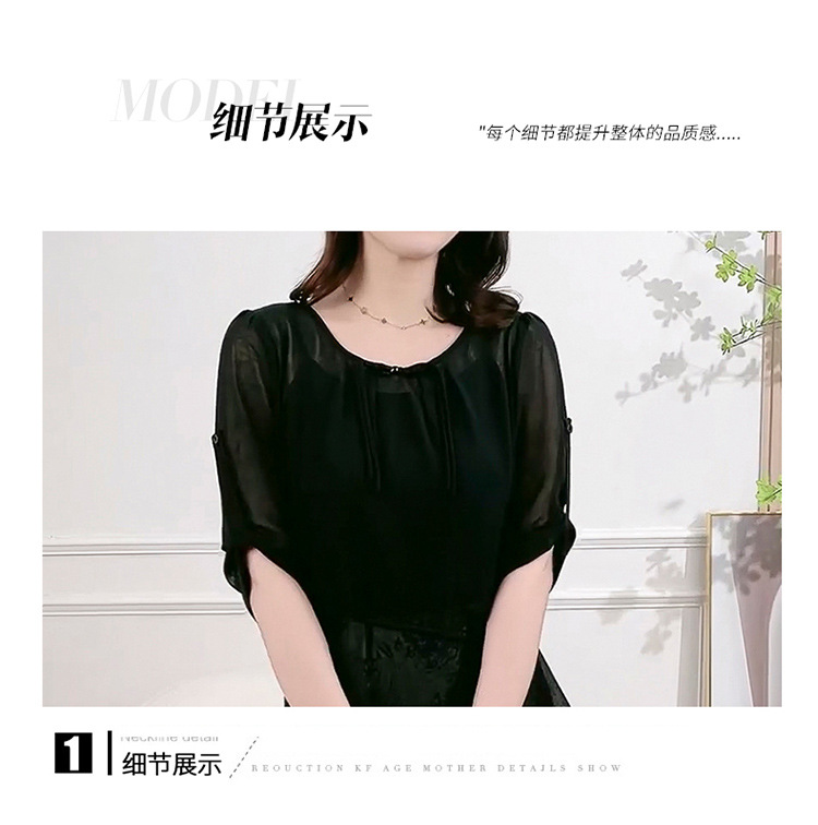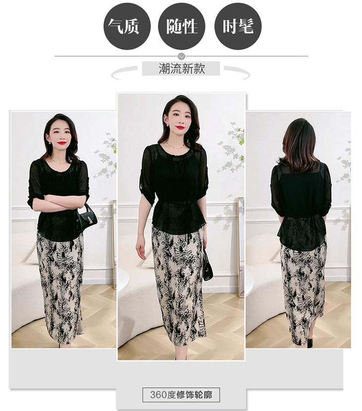 QYMXQD-70A2451-L24年夏款长款假两件时尚拼接连衣裙五分袖收腰显瘦通勤洋气A字裙