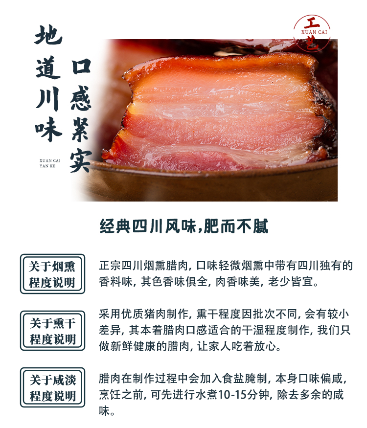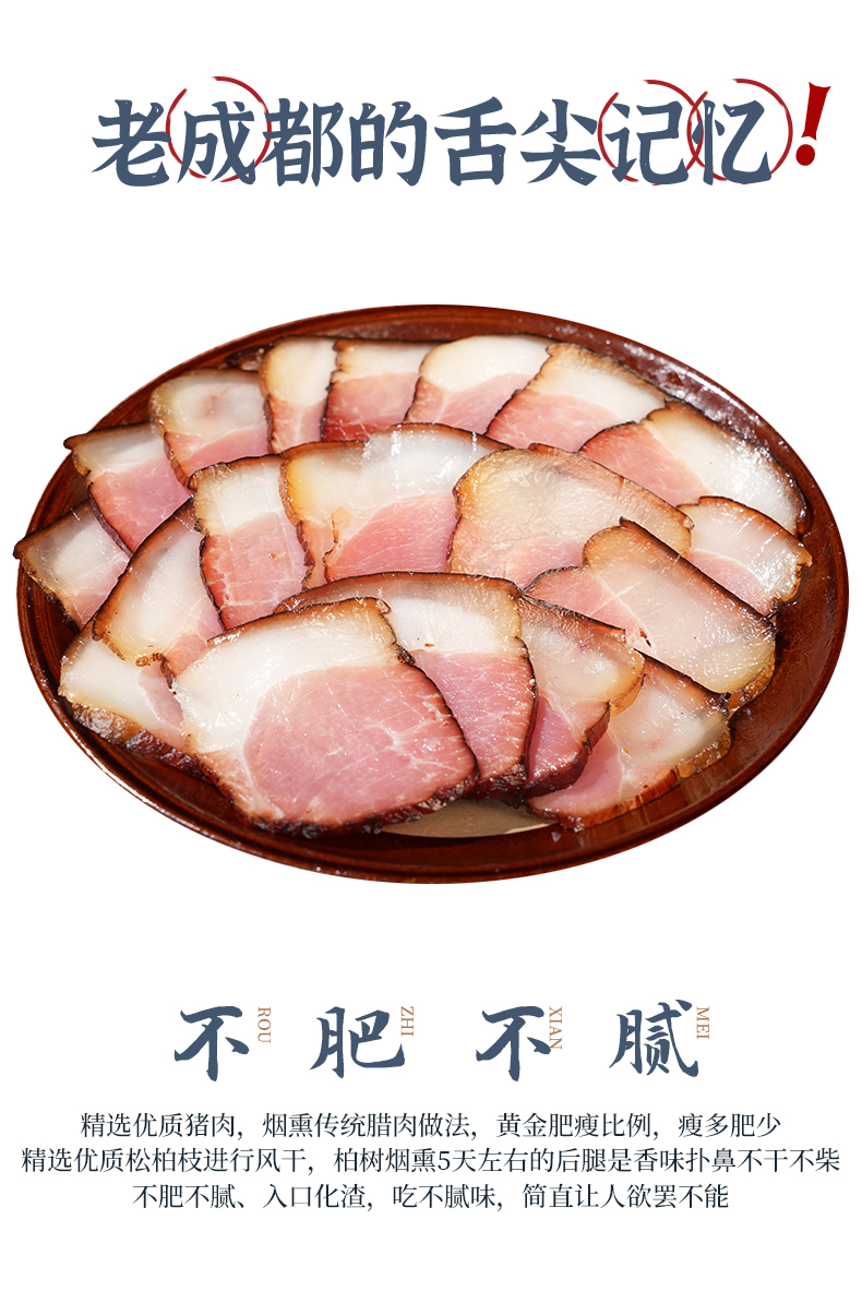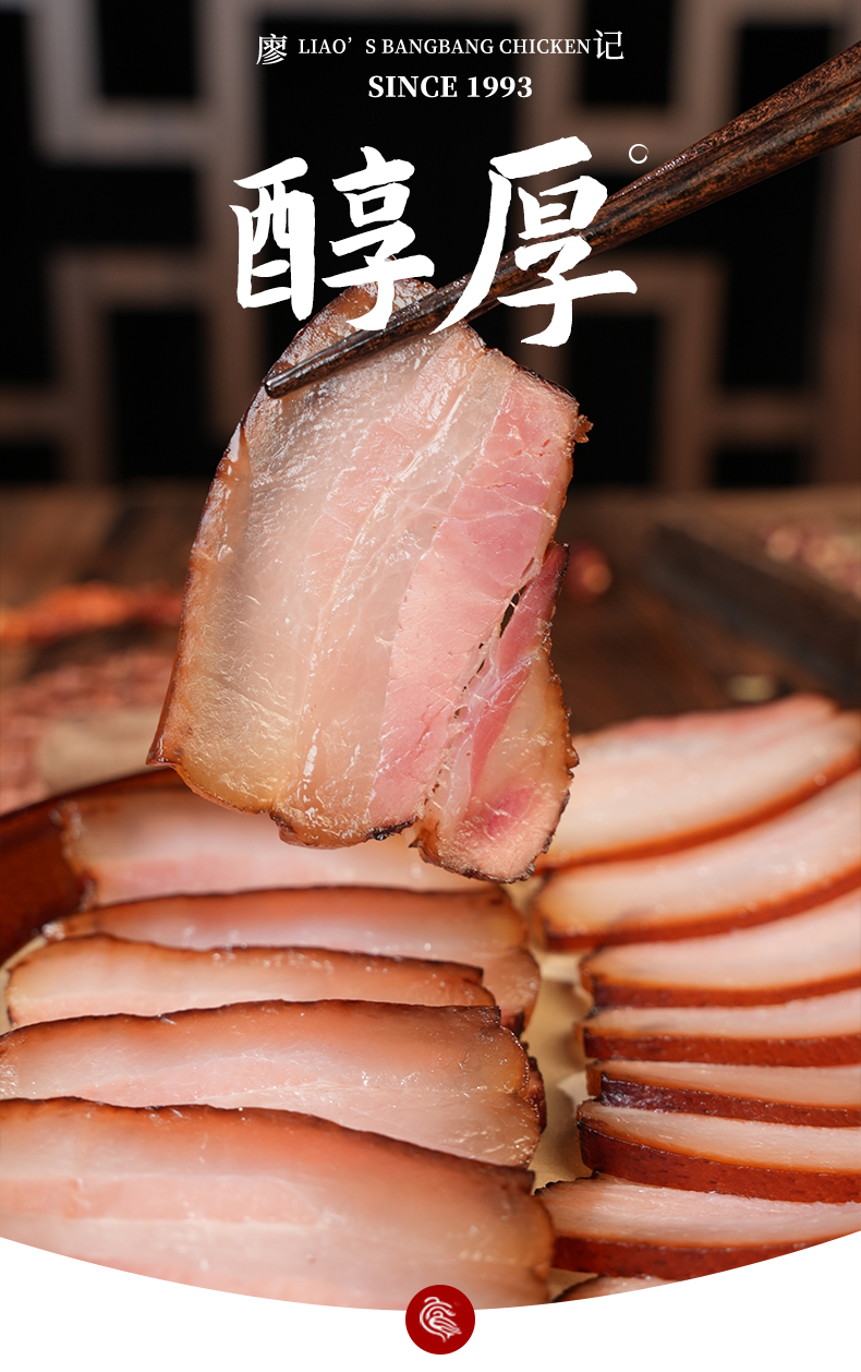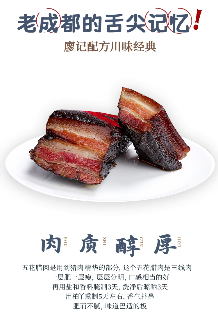 廖记棒棒鸡后腿/五花腊肉450g正宗川味特产烟熏腌腊肉风干年货送礼