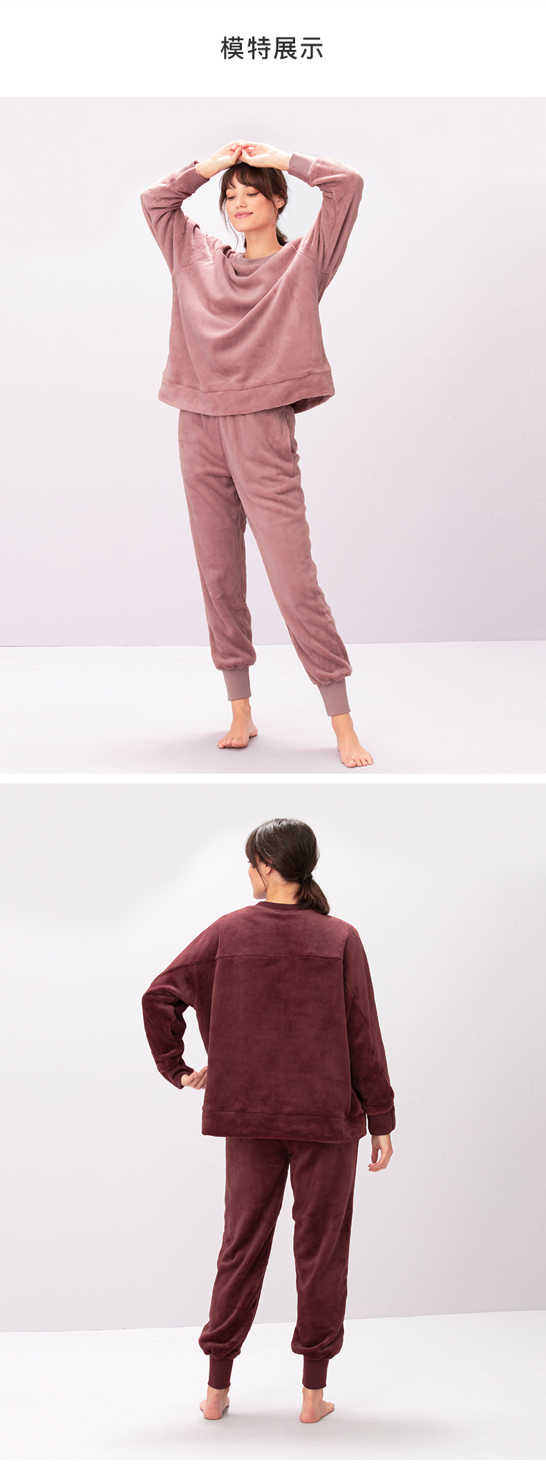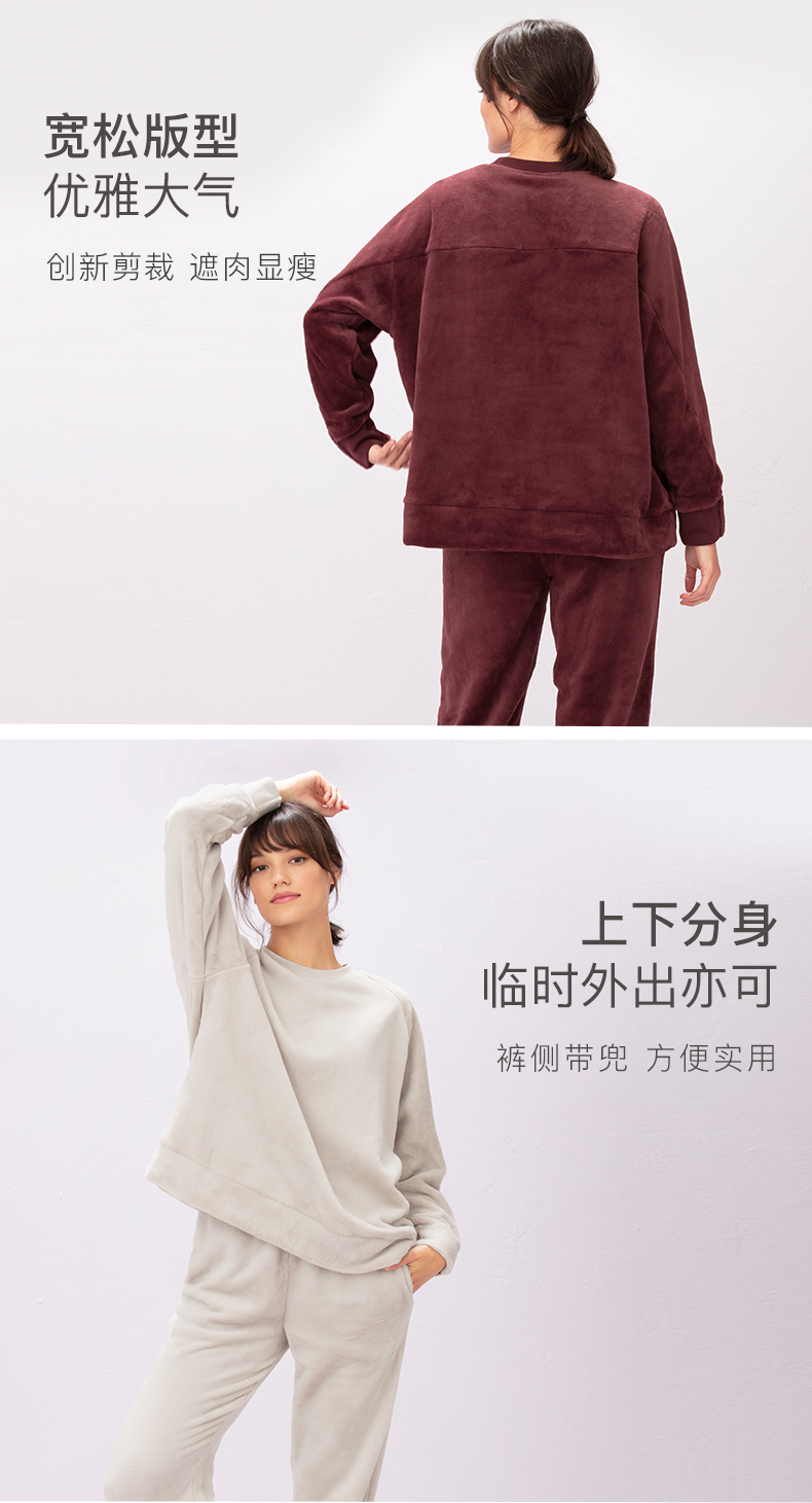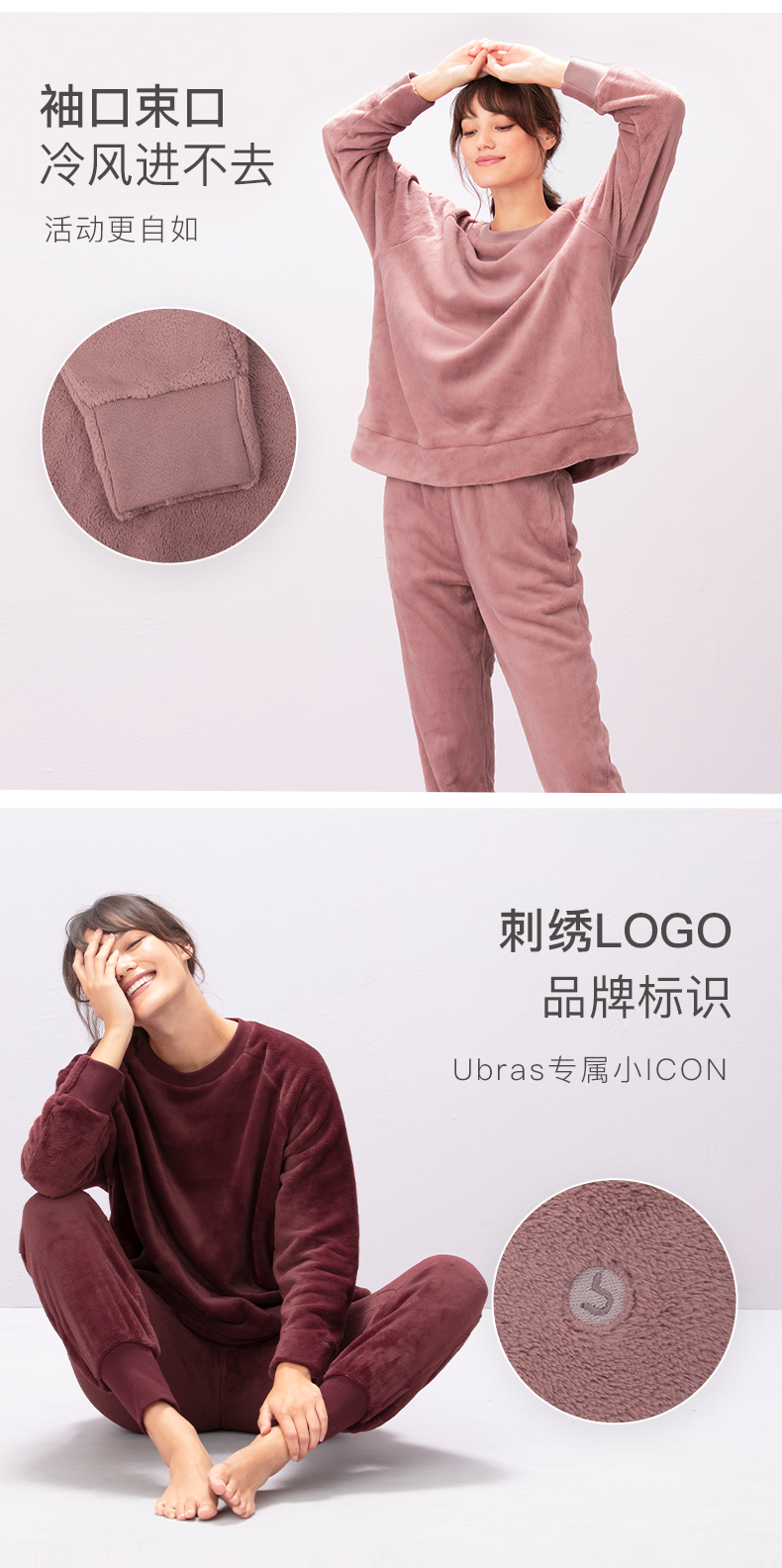 Ubras珊瑚绒圆领保暖家居服(套装)睡衣女秋冬可外穿加厚法兰绒
