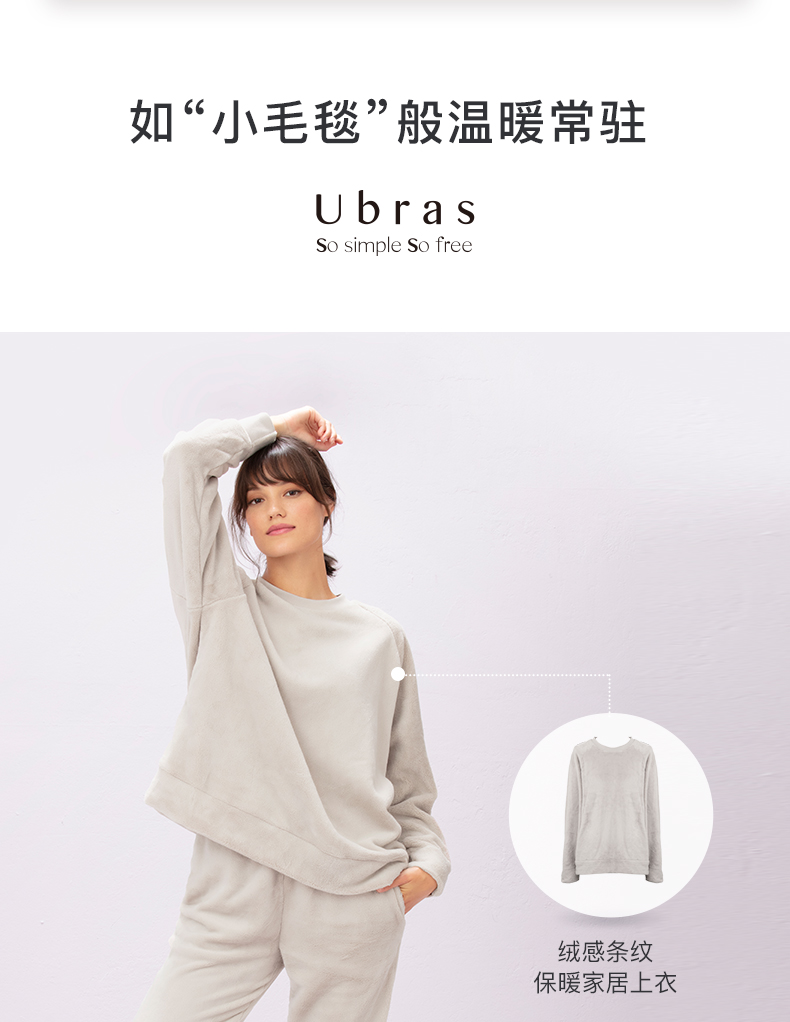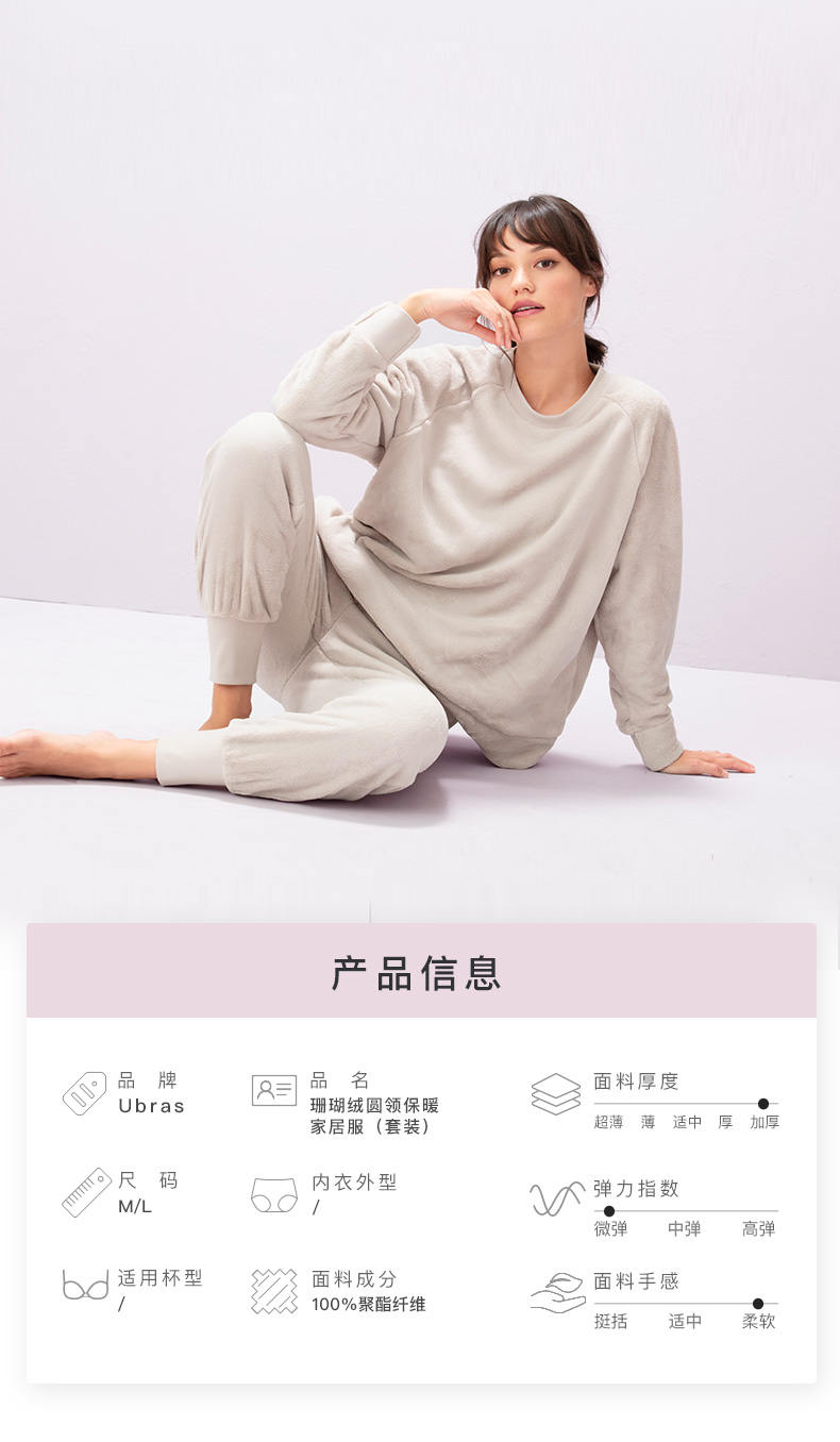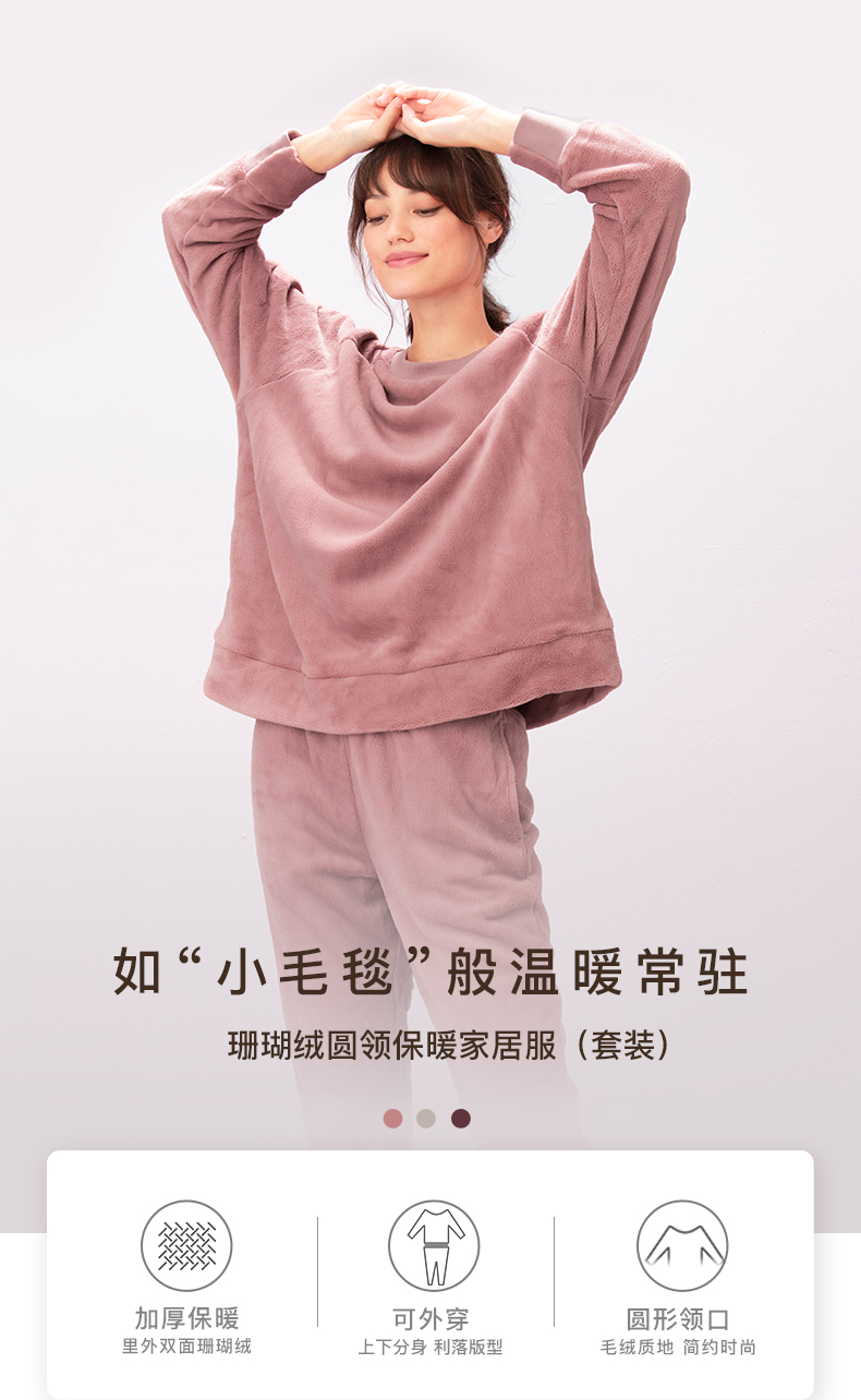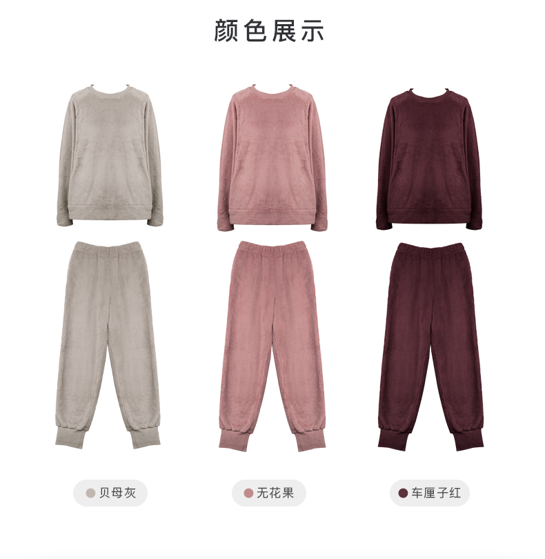 Ubras珊瑚绒圆领保暖家居服(套装)睡衣女秋冬可外穿加厚法兰绒