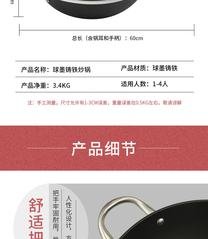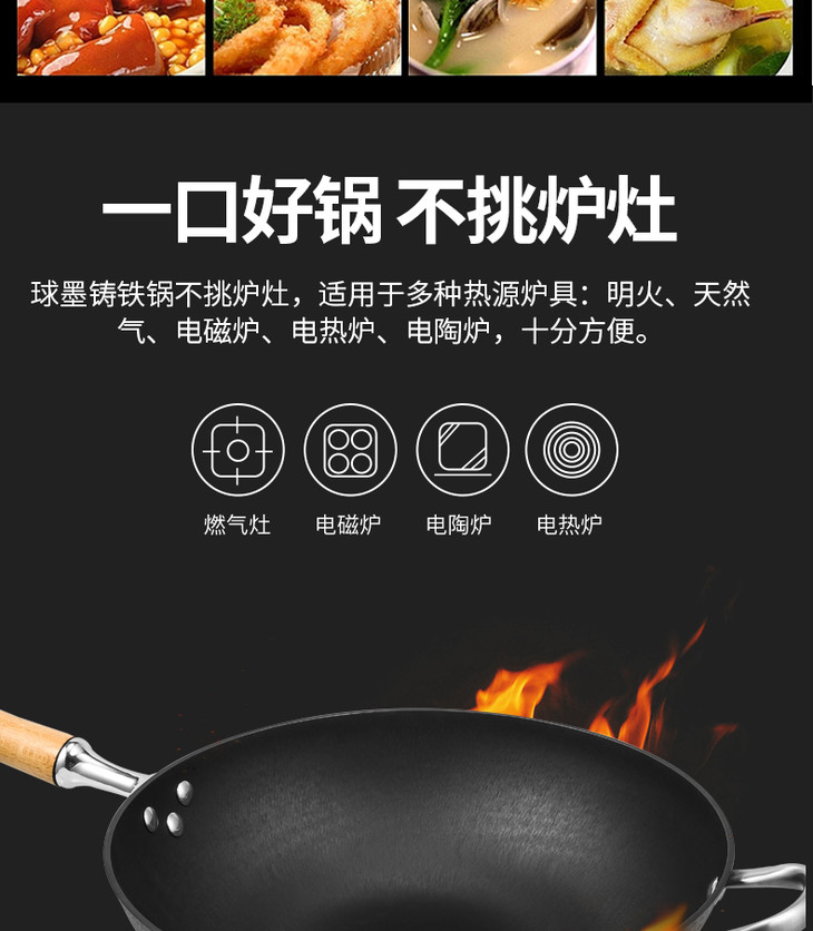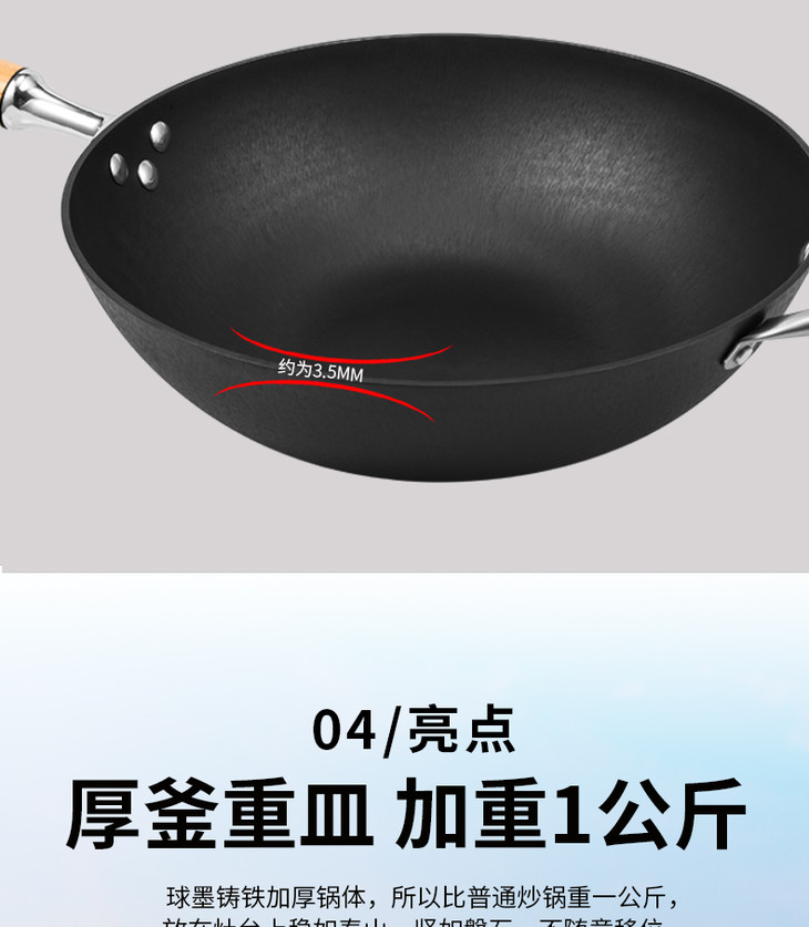 德国欧乐菲铁锅厚釜球墨铸铁炒锅不粘锅炒菜锅章铁匠系列