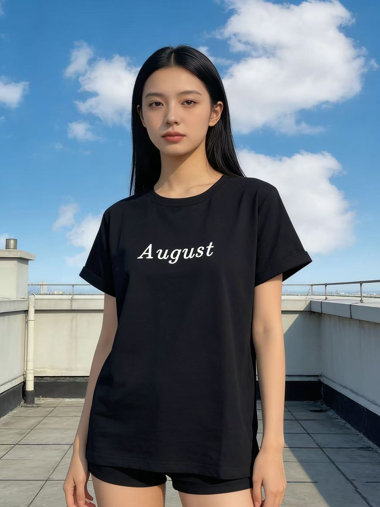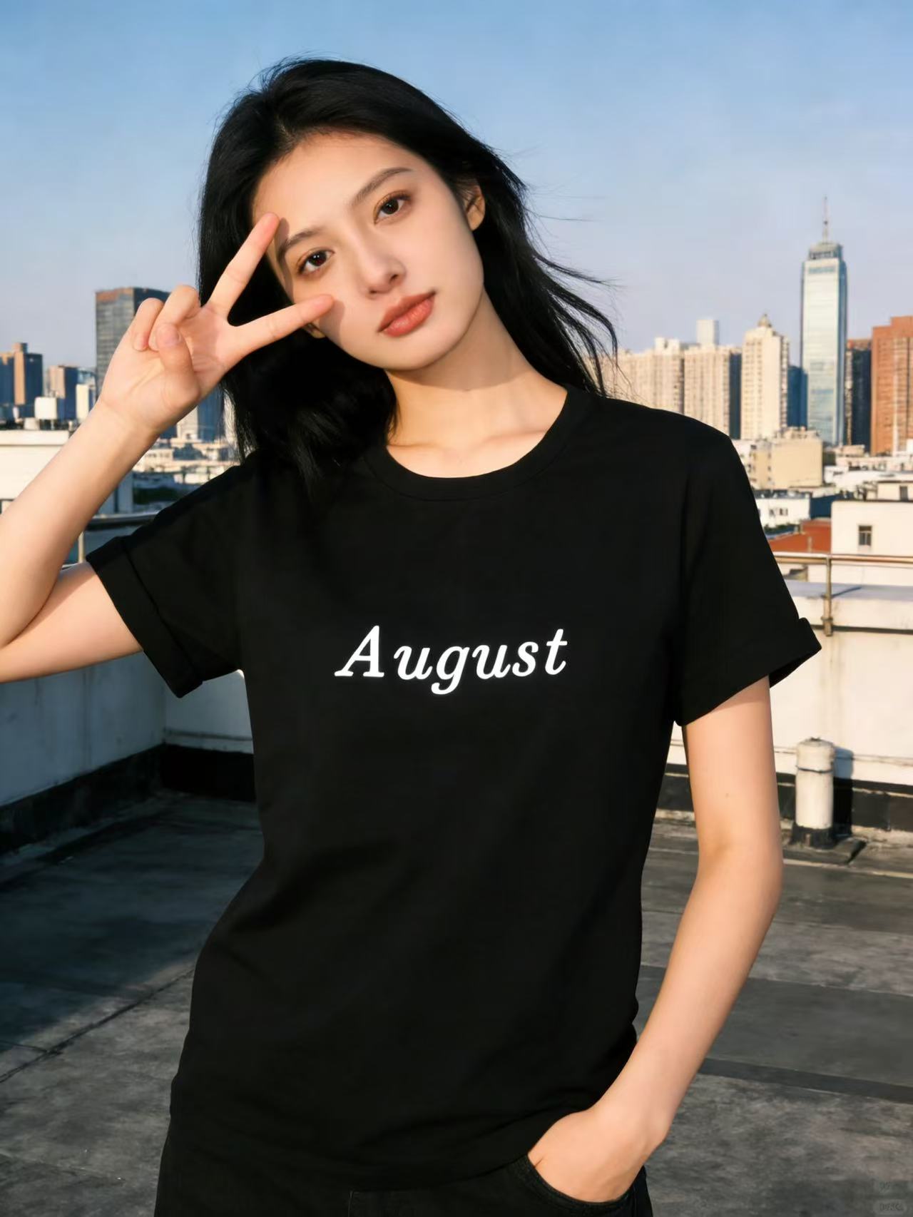 性价比天花板【自营】字母印花August!7337精梳棉95%圆领短袖T恤上衣-喜出
