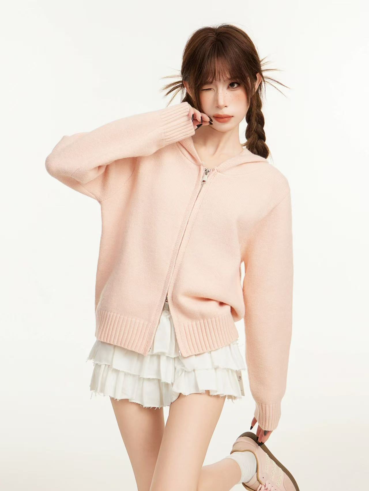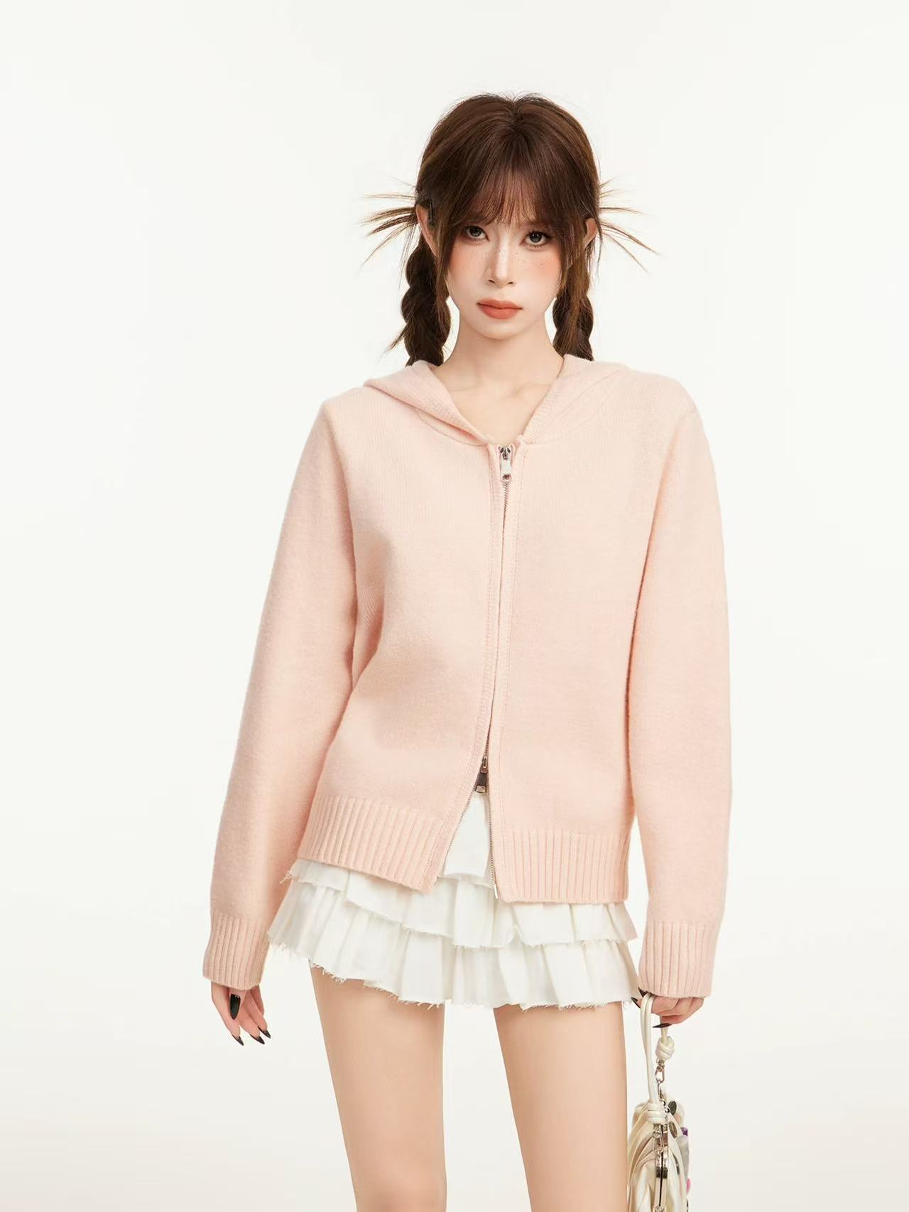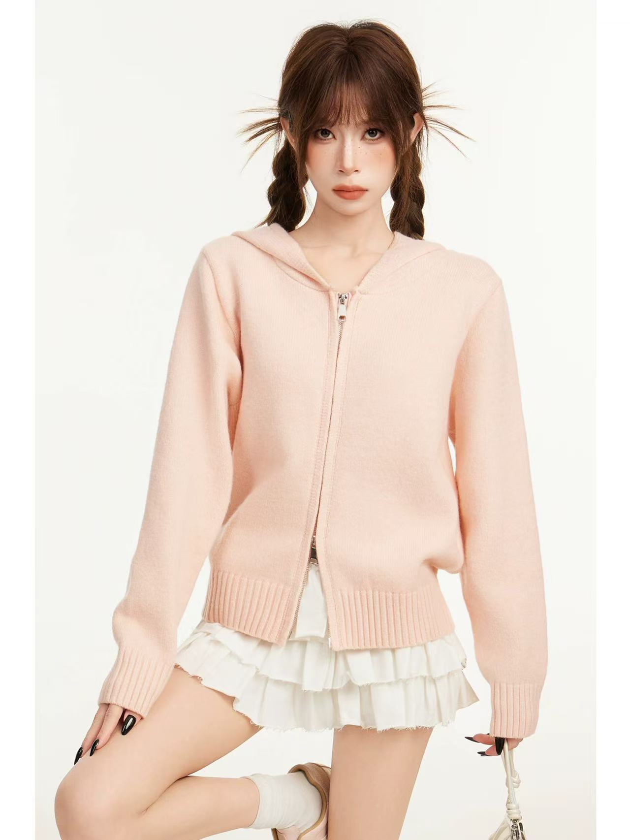 【孤品捡漏】(微脏样衣)G97桔粉连帽针织毛衣-喜出