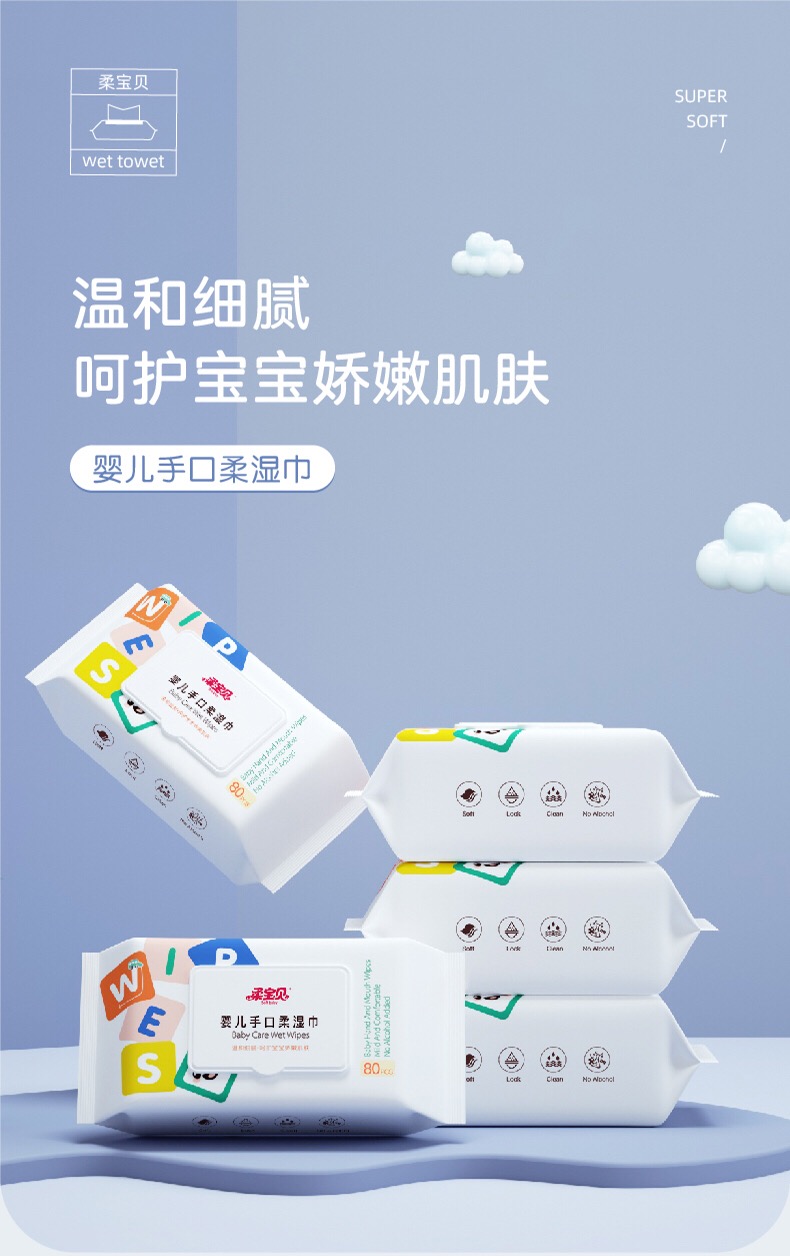 柔宝贝宝宝手口湿巾80抽 2包