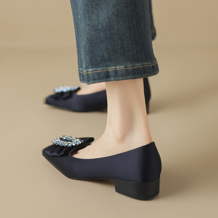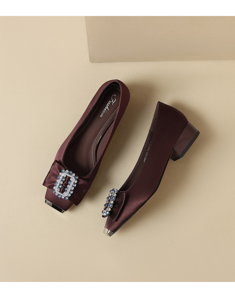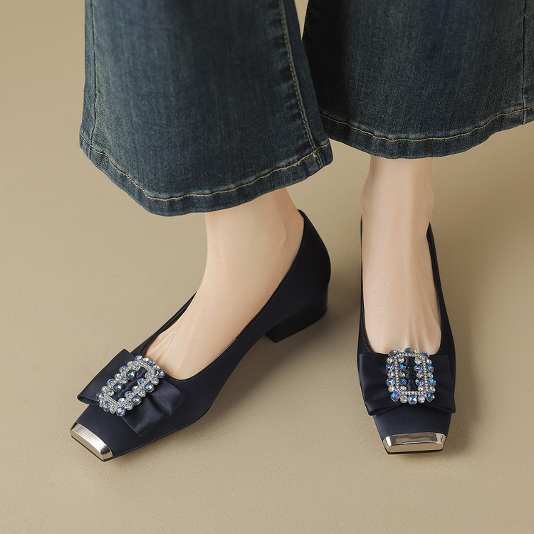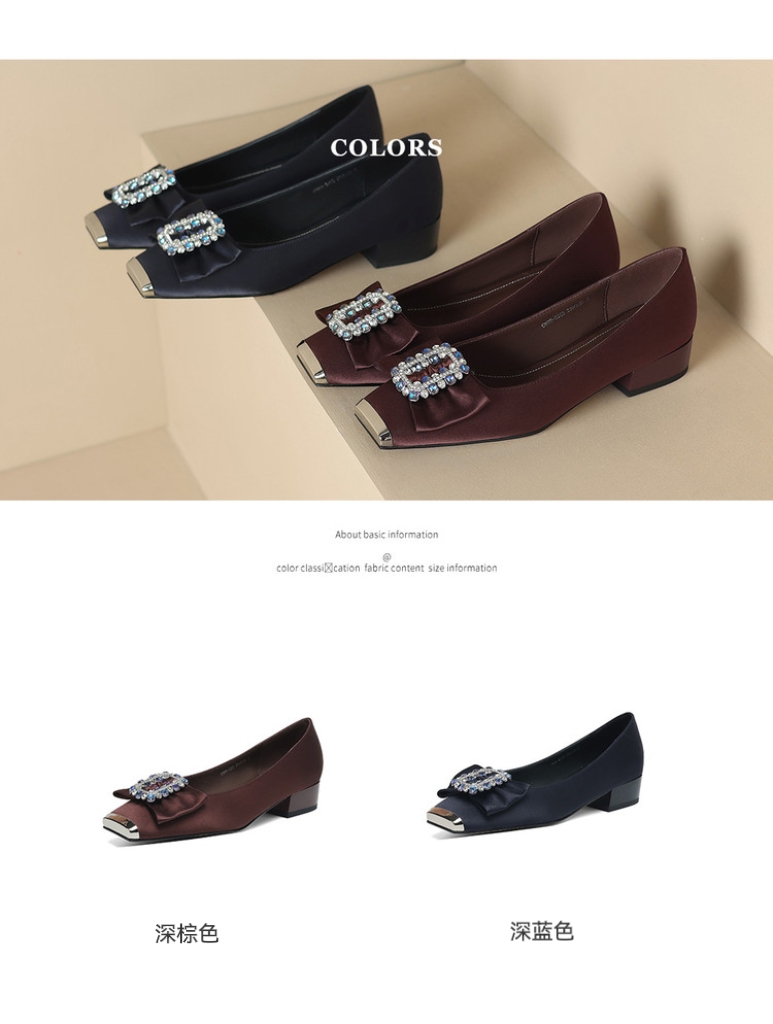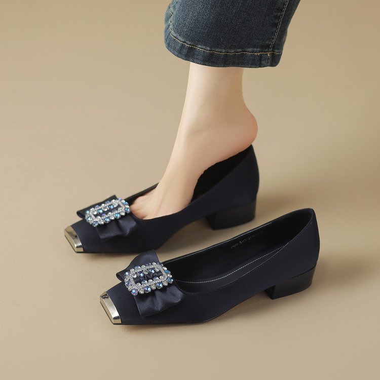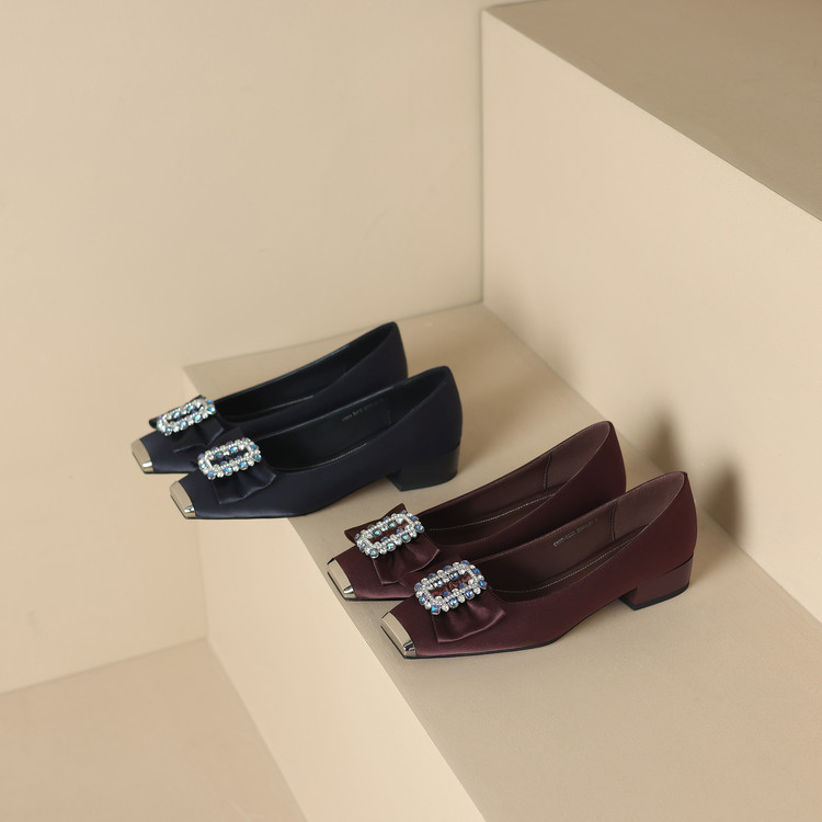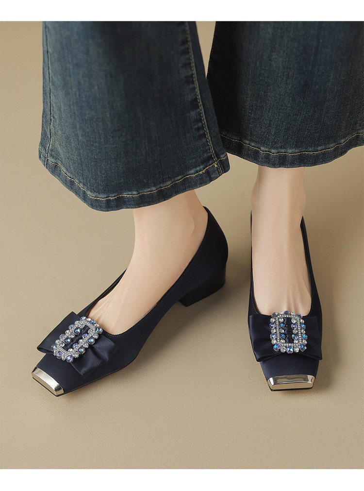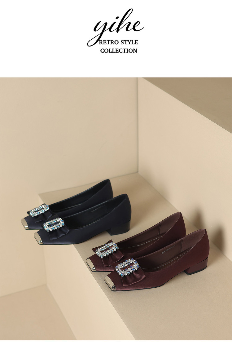 【预售5天】巨好穿法式单鞋女春秋新款蝴蝶结水钻方头中跟粗跟低跟时尚YS&0303