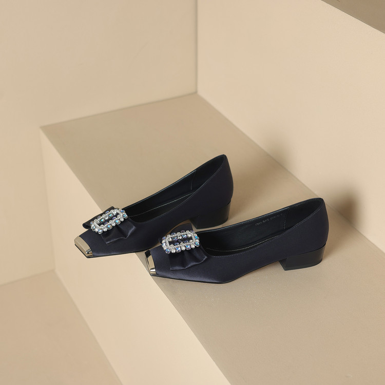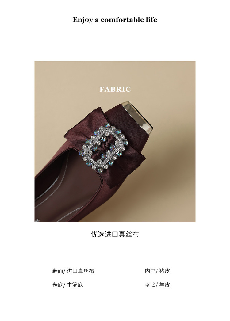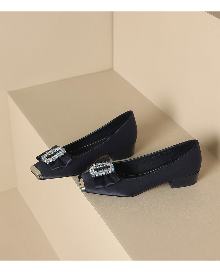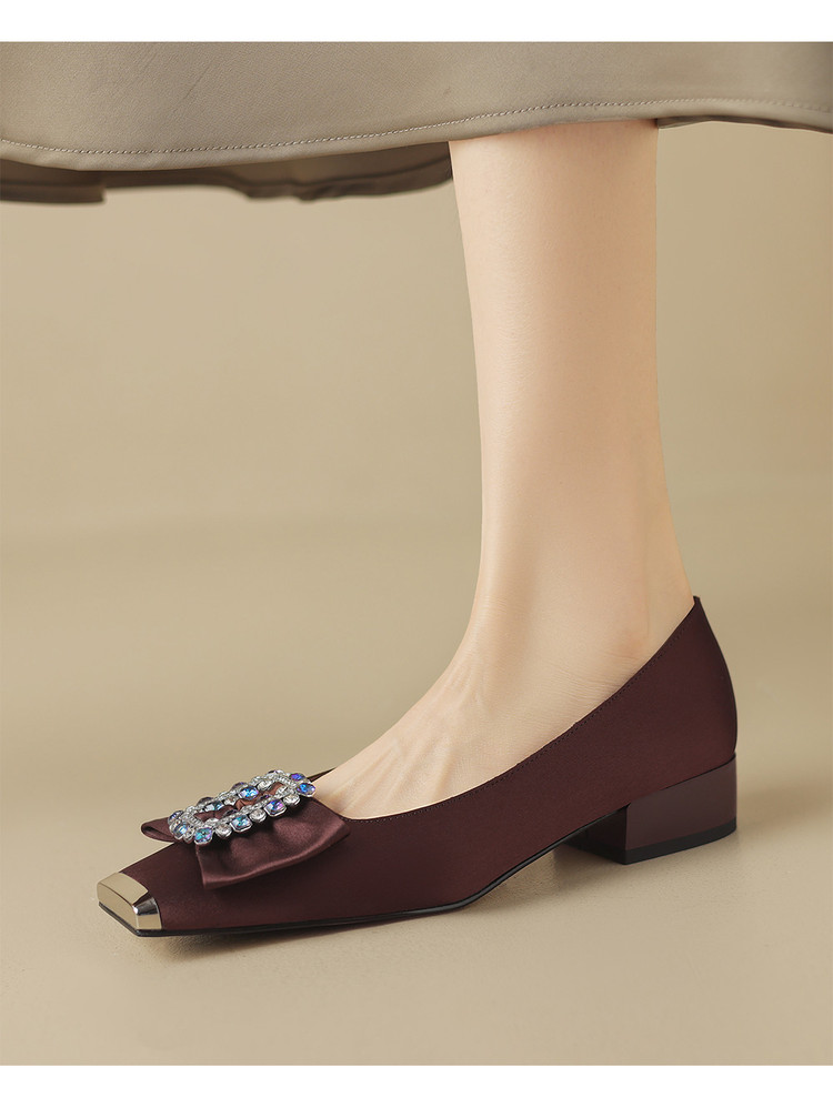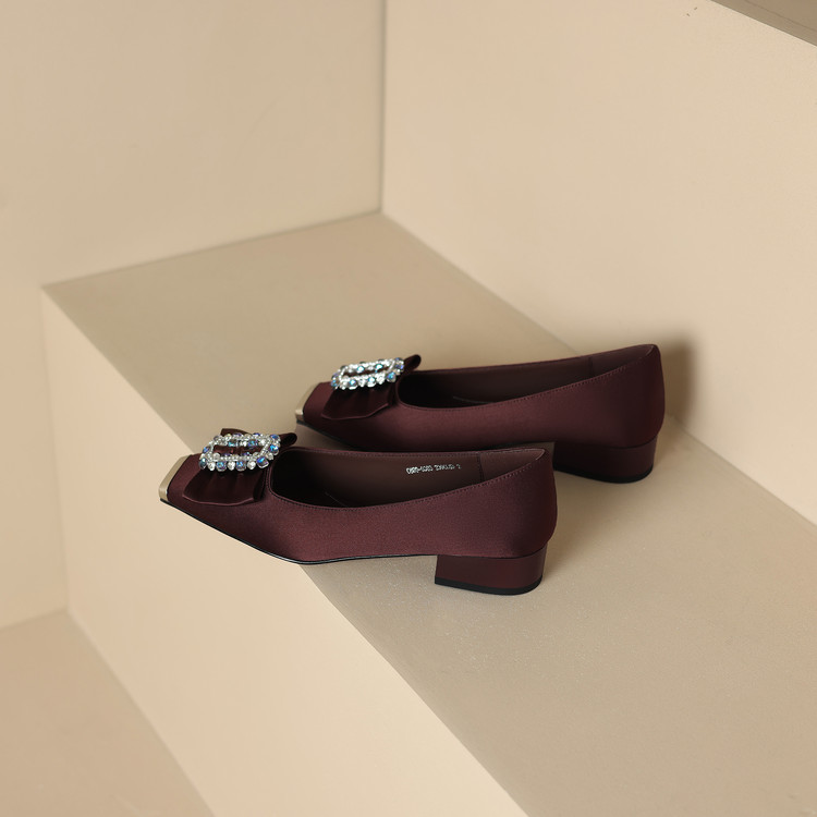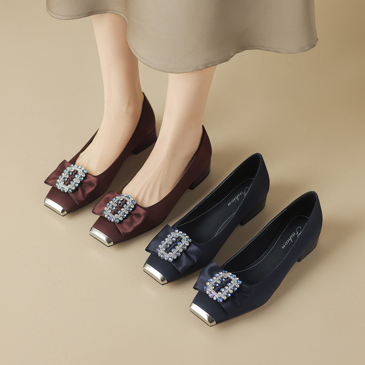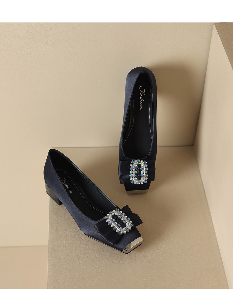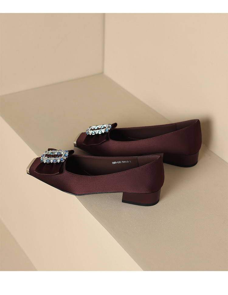 【预售5天】巨好穿法式单鞋女春秋新款蝴蝶结水钻方头中跟粗跟低跟时尚YS&0303