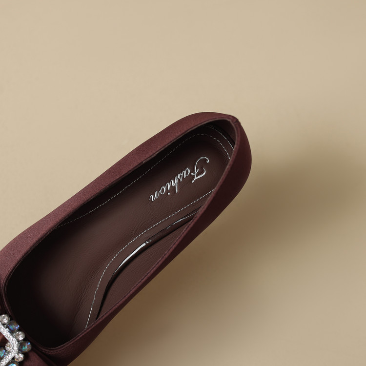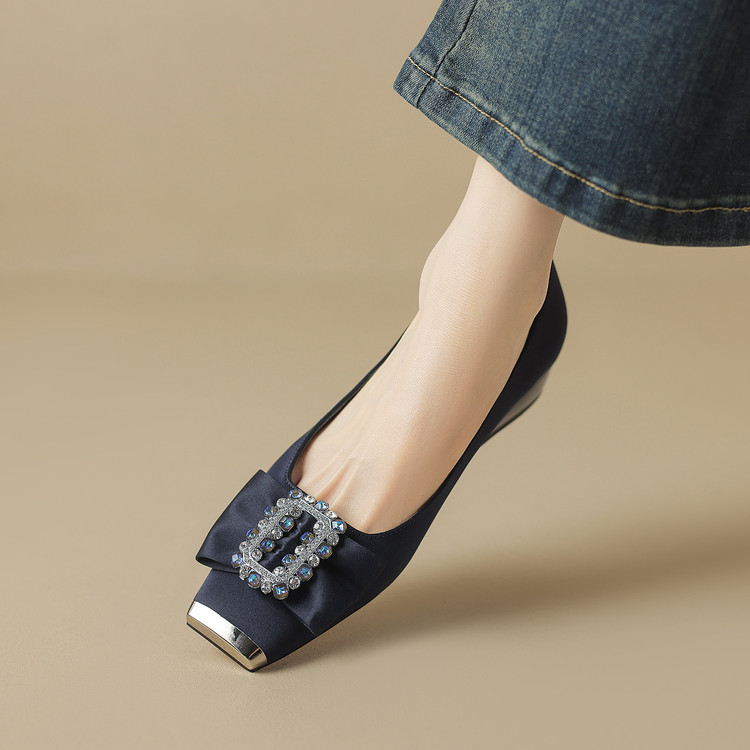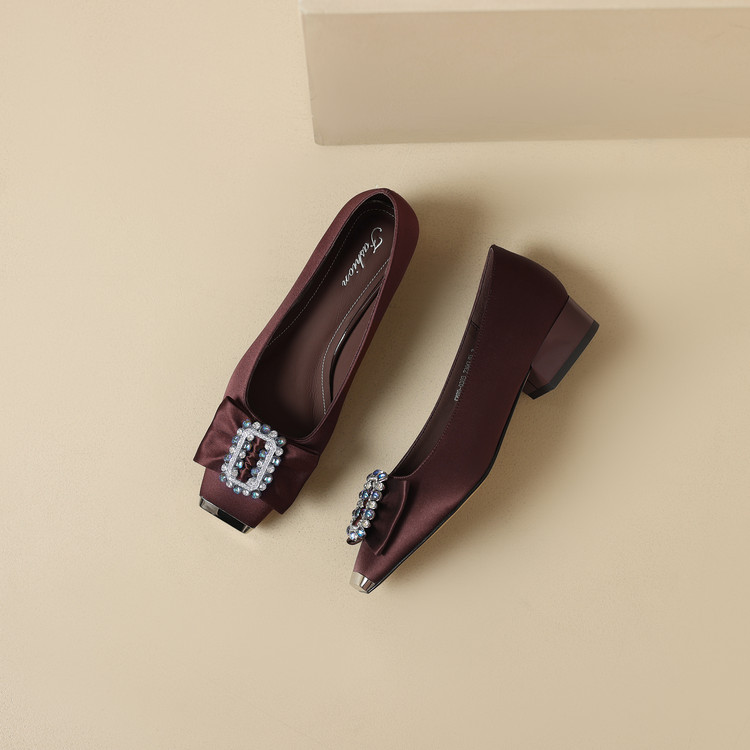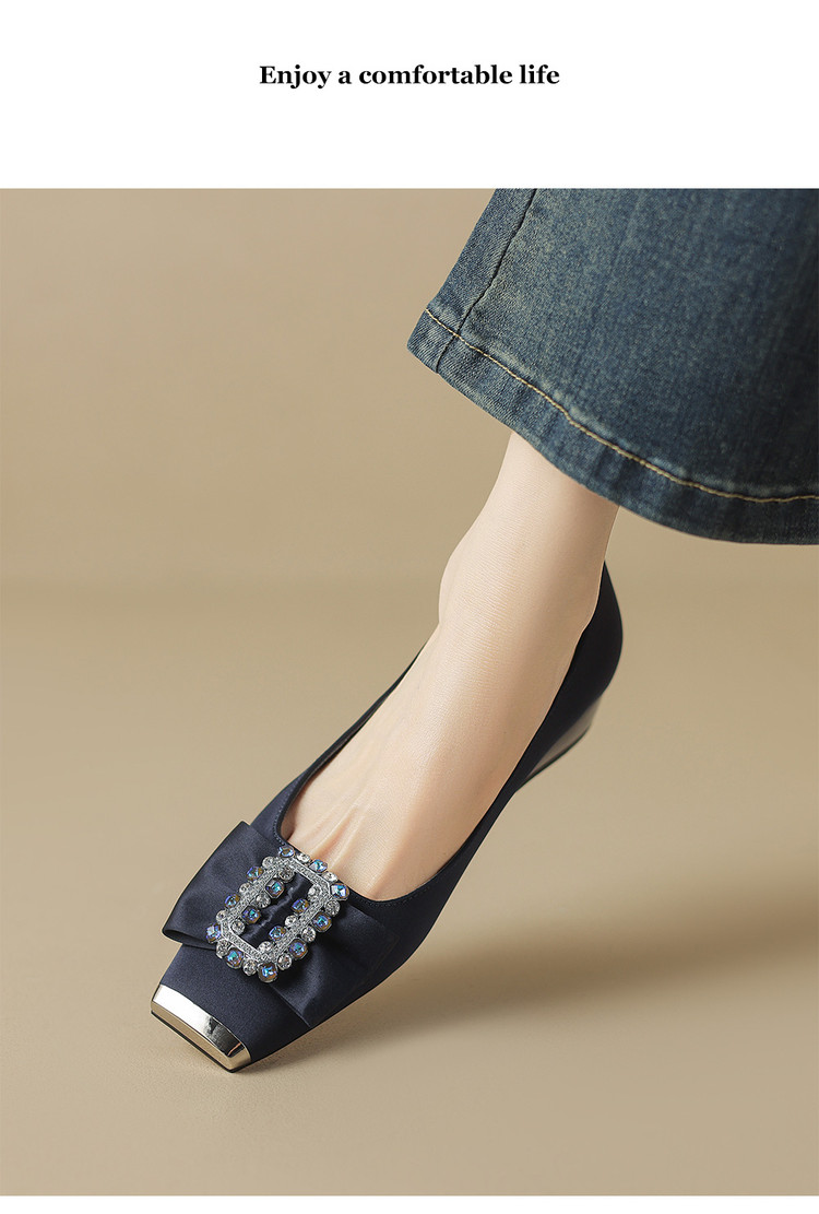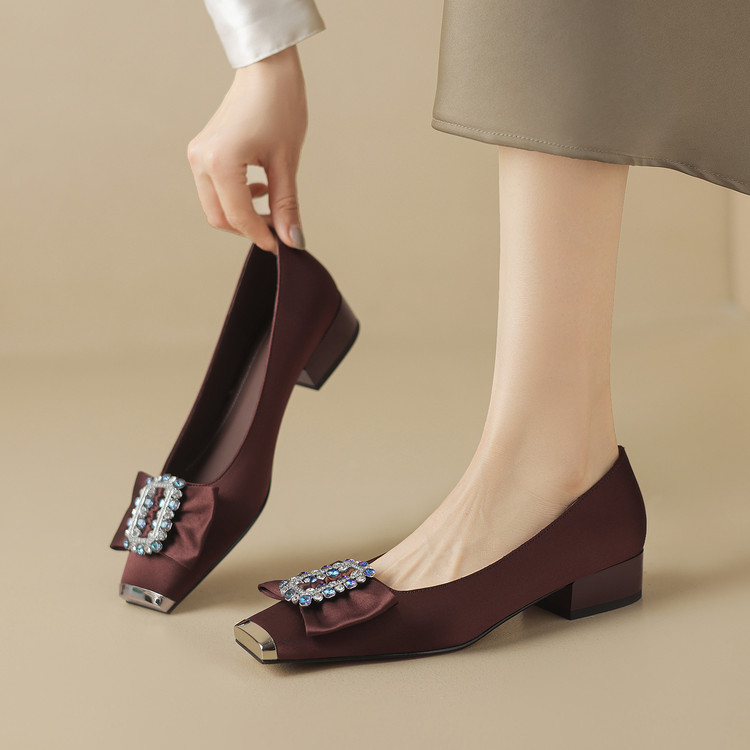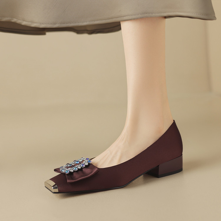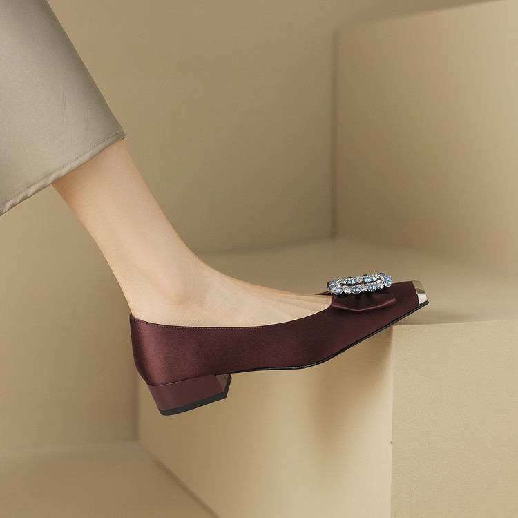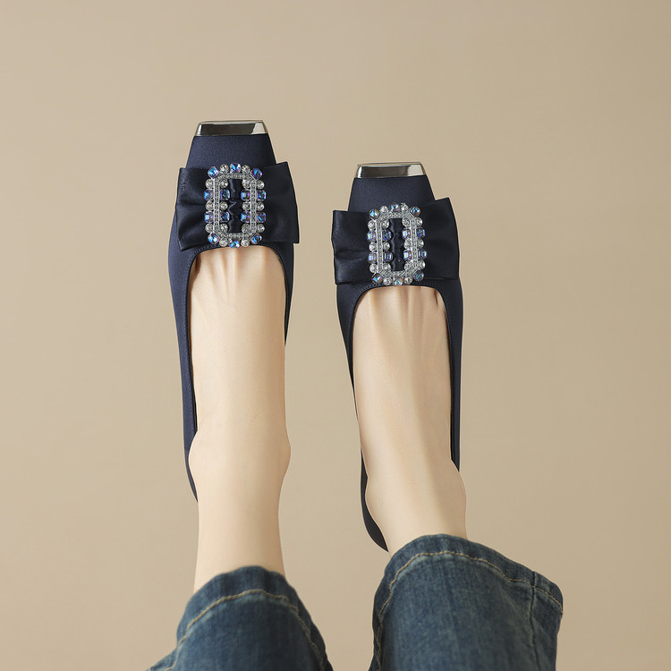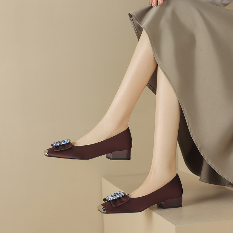 【预售5天】巨好穿法式单鞋女春秋新款蝴蝶结水钻方头中跟粗跟低跟时尚YS&0303