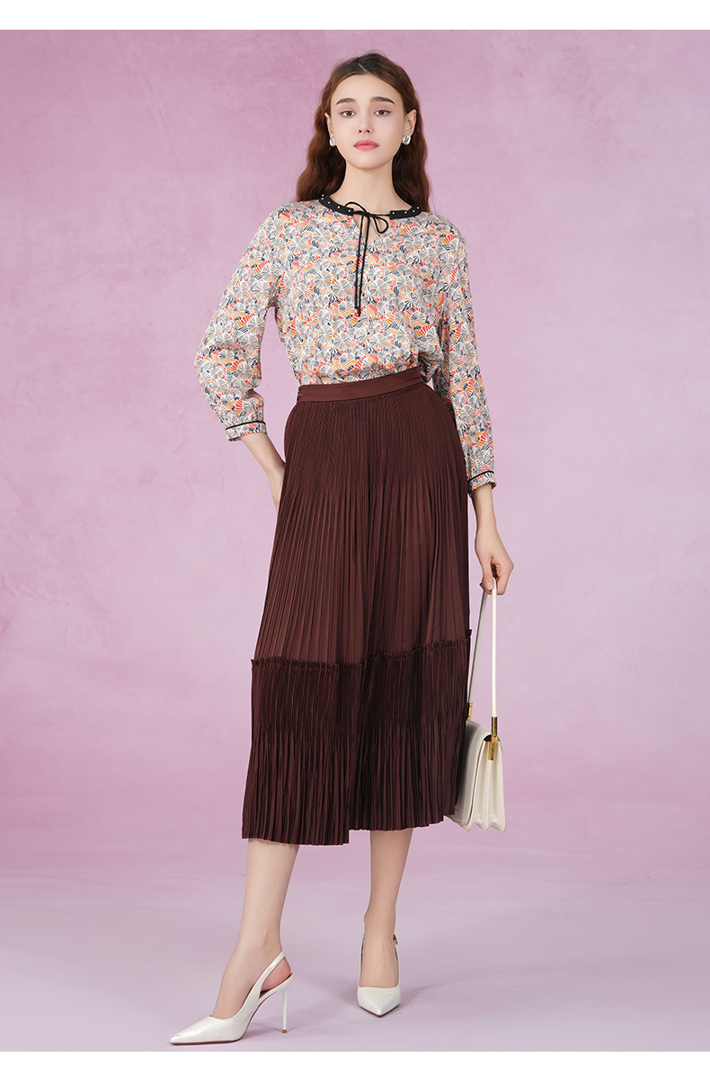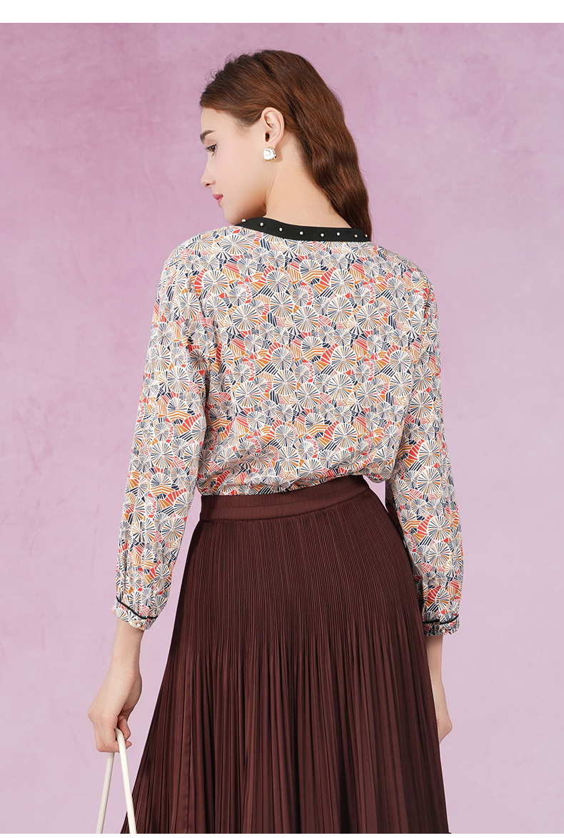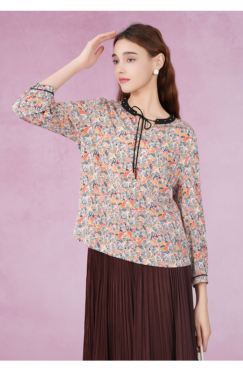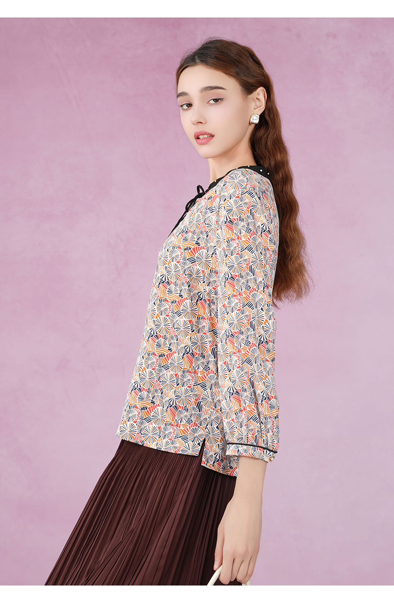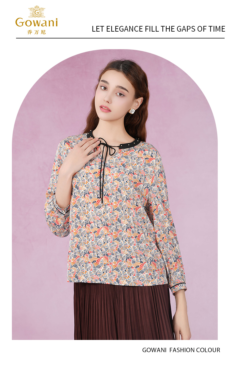 乔万尼夏季新款真丝衬衫清新减龄系带衬衣EI2C733