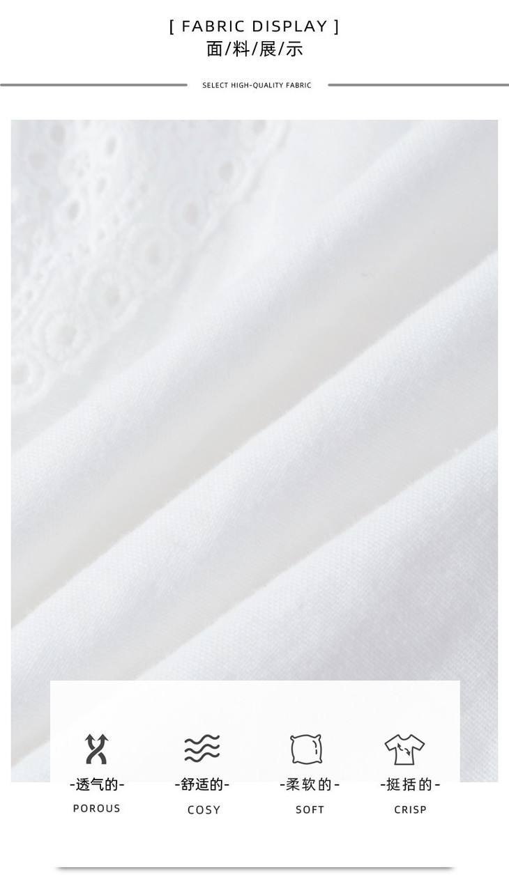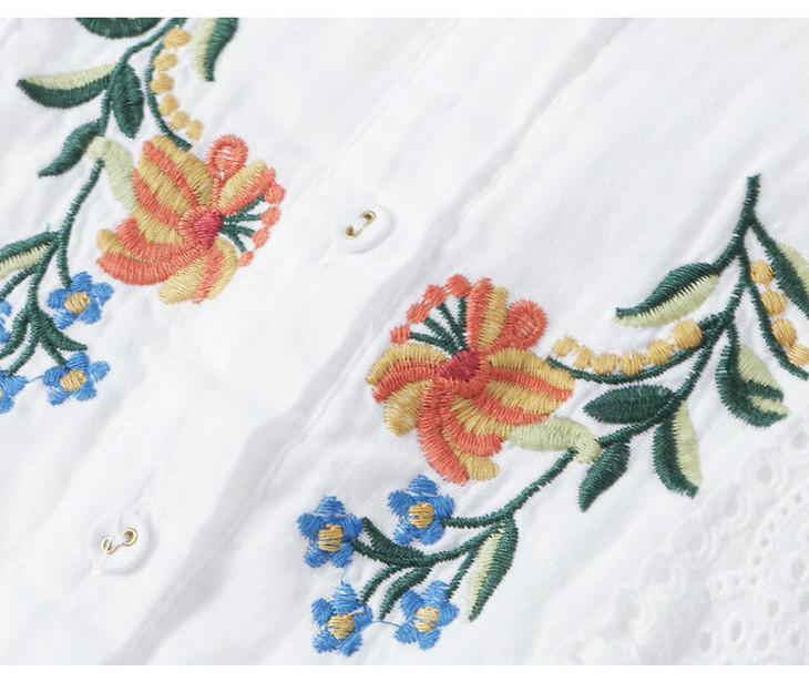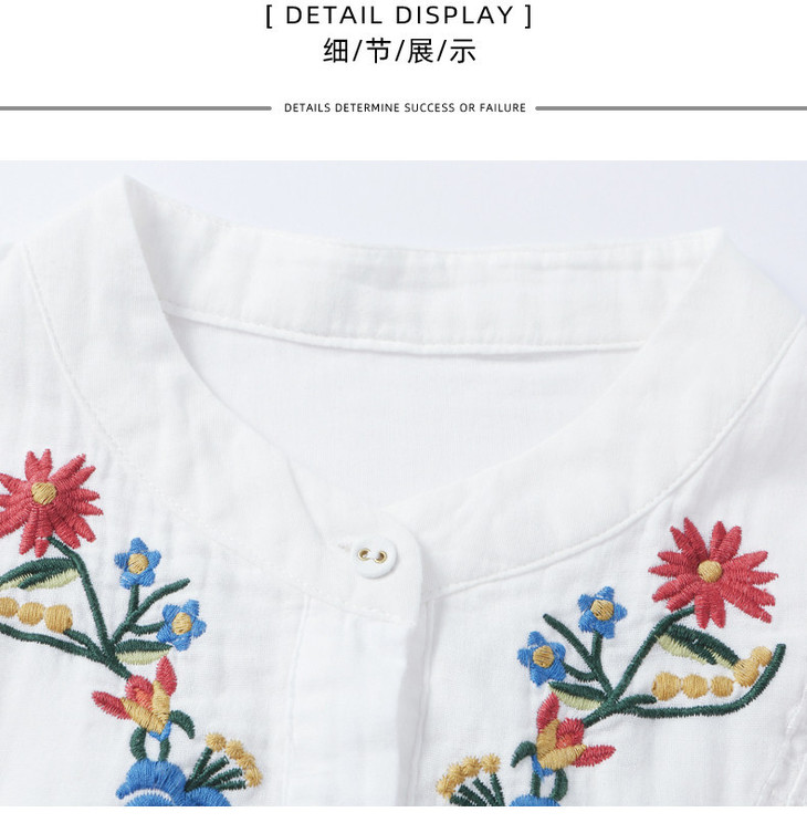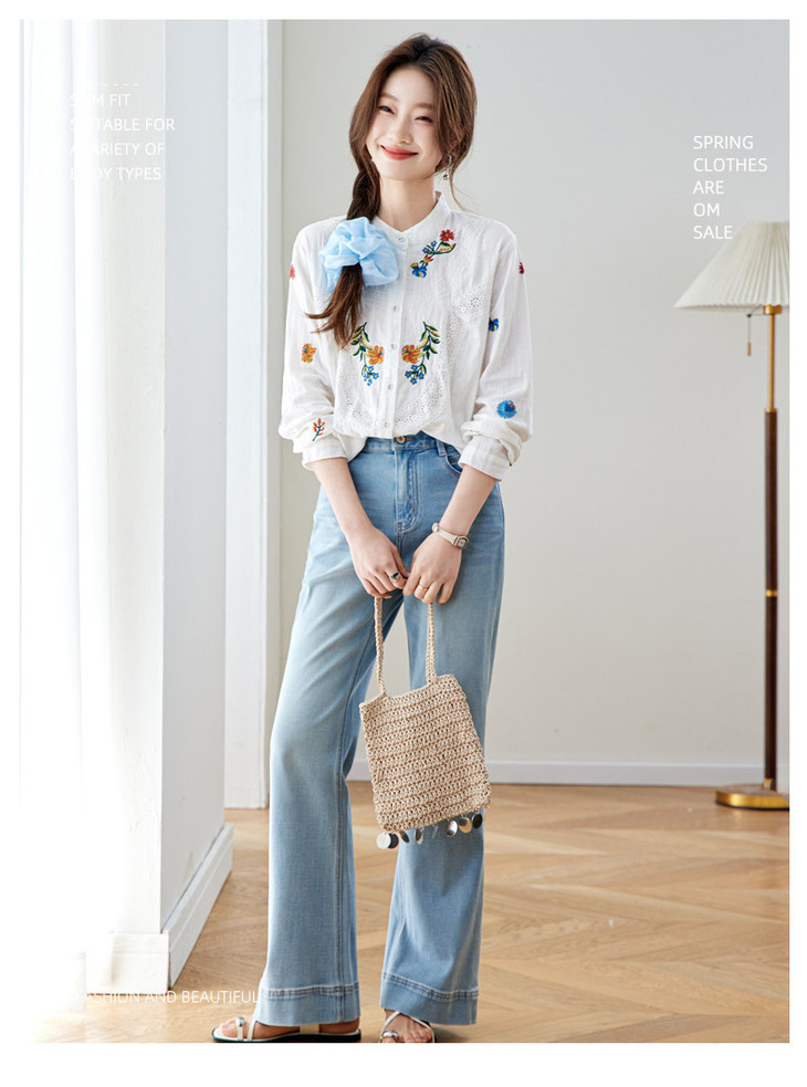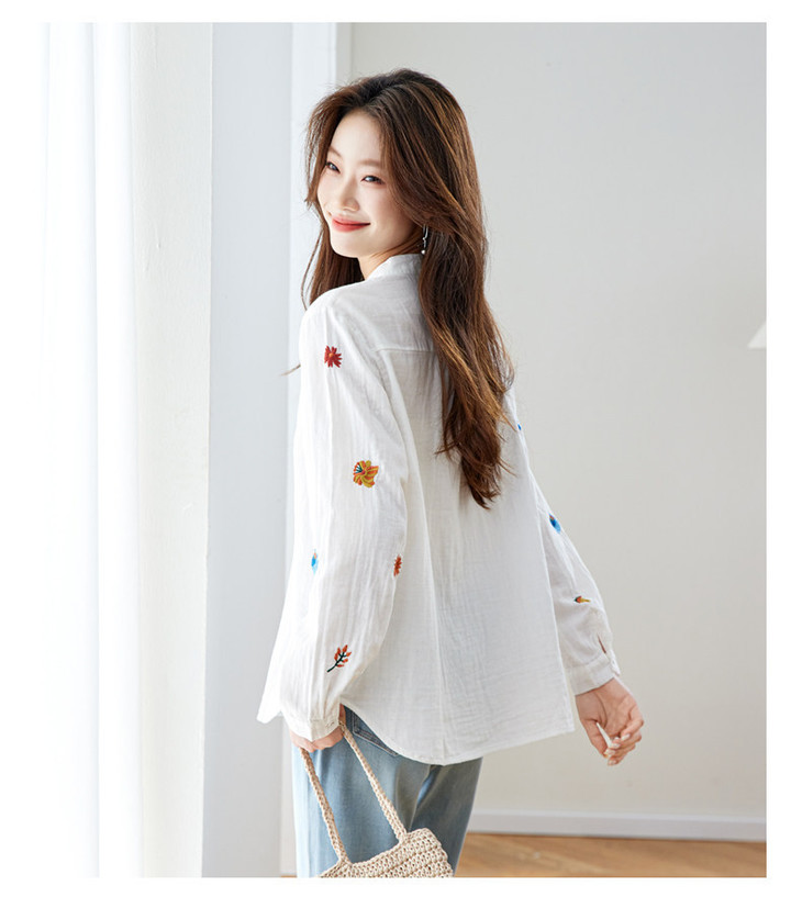 刺绣长袖全棉衬衫,轻奢减龄好看镂空立领上衣CC6223