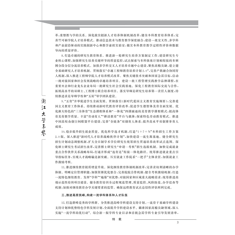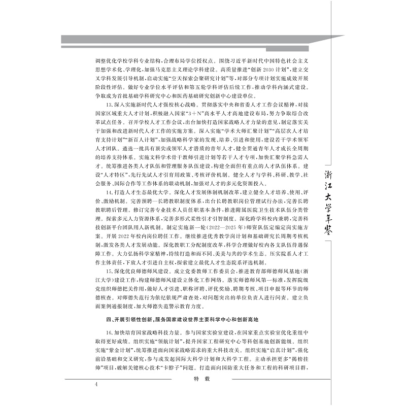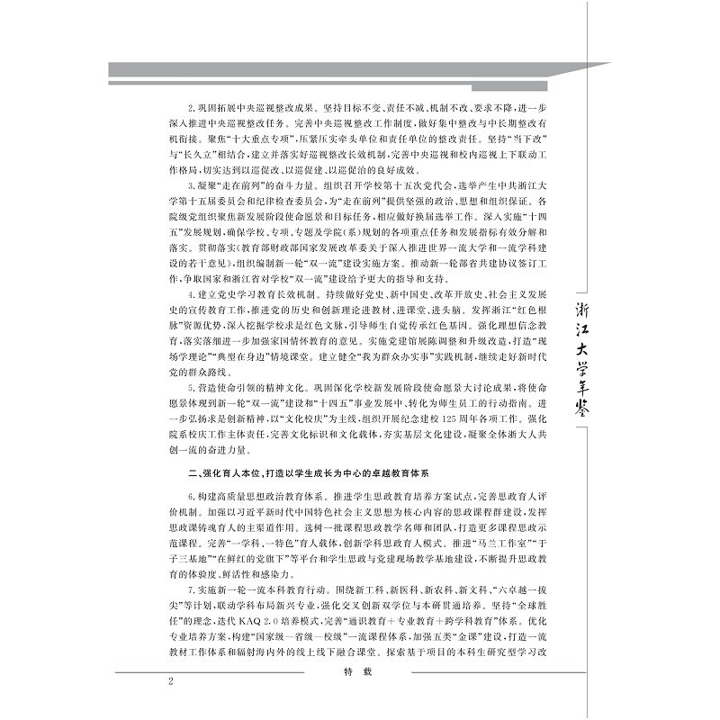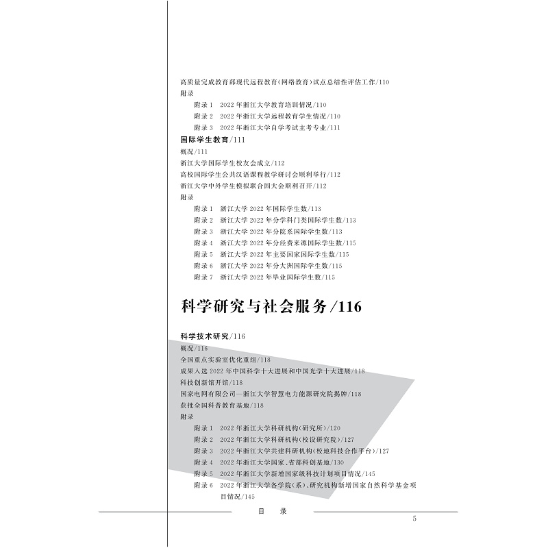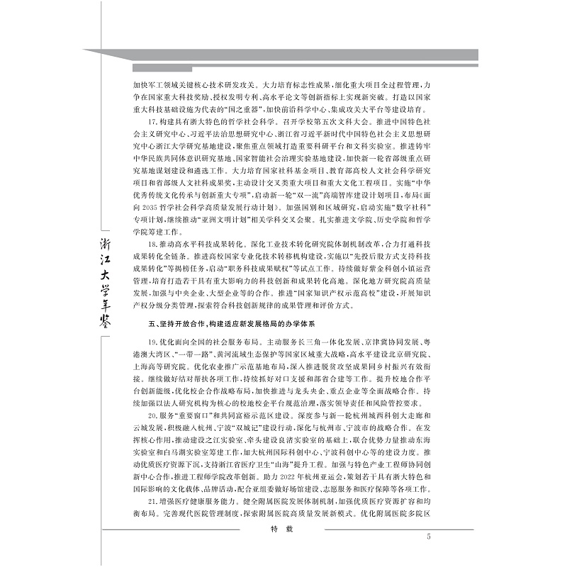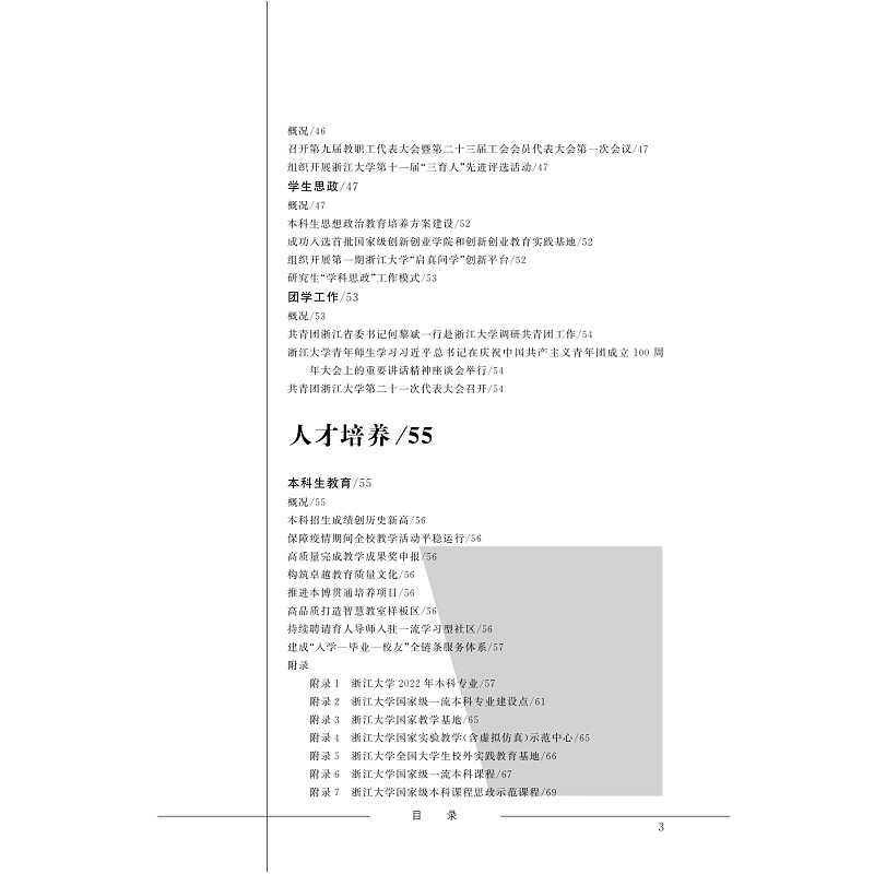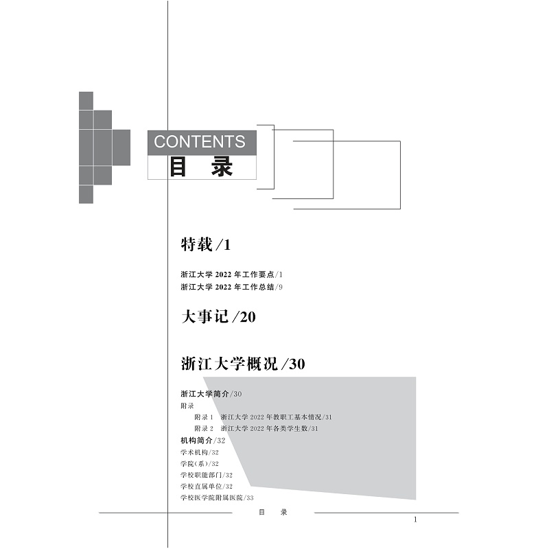 书稿全面系统地反映2023年浙江大学事业发展及重大活动的基本情况,包括了学校教学、科研、社会服务、学院基本情况、人才培养、党的建设、表彰和奖励等方面的内容,为浙江大学的教职员工提供学校的基本文献、基本数据、科研成果和最新工作经验,是兄弟院校和社会各界了解浙江大学的窗口。浙江大学年鉴每年一期。全书基本内容为2021年的重大事件、重要活动及各个领域的新进展、新成果、新信息。依实际情况,部分内容时间上可有前后延伸。