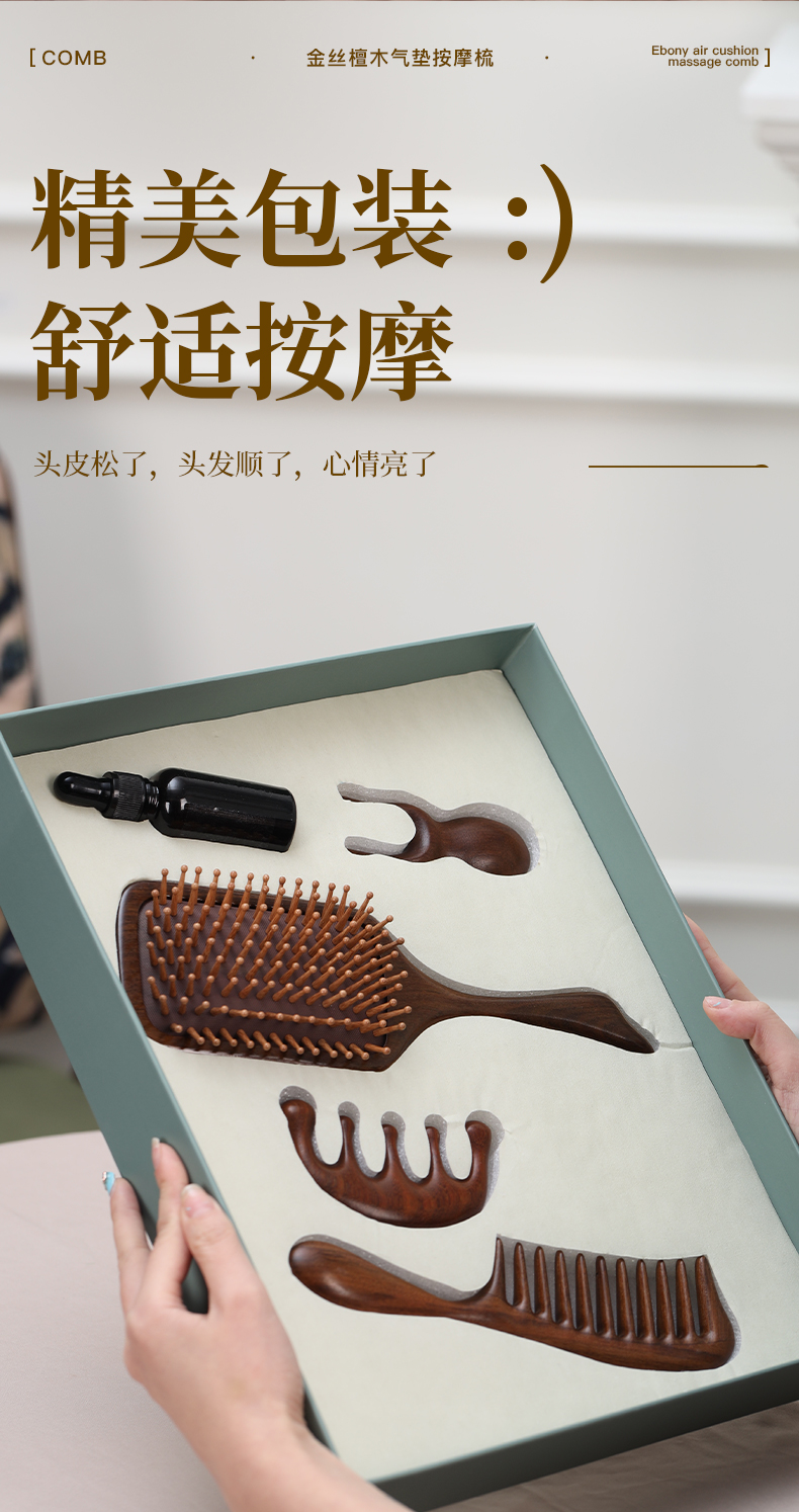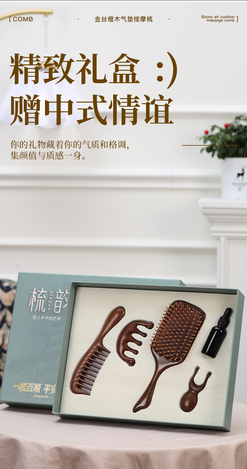 母亲节专属!【辅元堂金丝檀木梳礼盒套装】巴西进口金丝檀木 一梳多用 梳发顺发 头部按摩 经络疏通 小巧便捷 多场景使用 把日常疲惫轻轻揉散