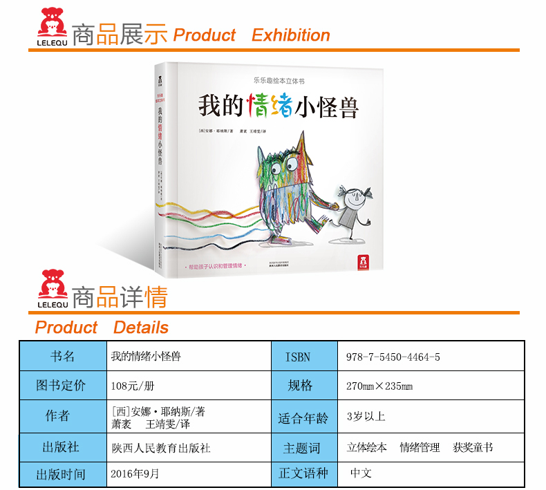 我的情绪小怪兽-3D立体精装绘本 立体书-0-3-3-6岁童书-让孩子轻松认识和管理情绪 亲子互动早教启蒙 儿童读物正版书籍