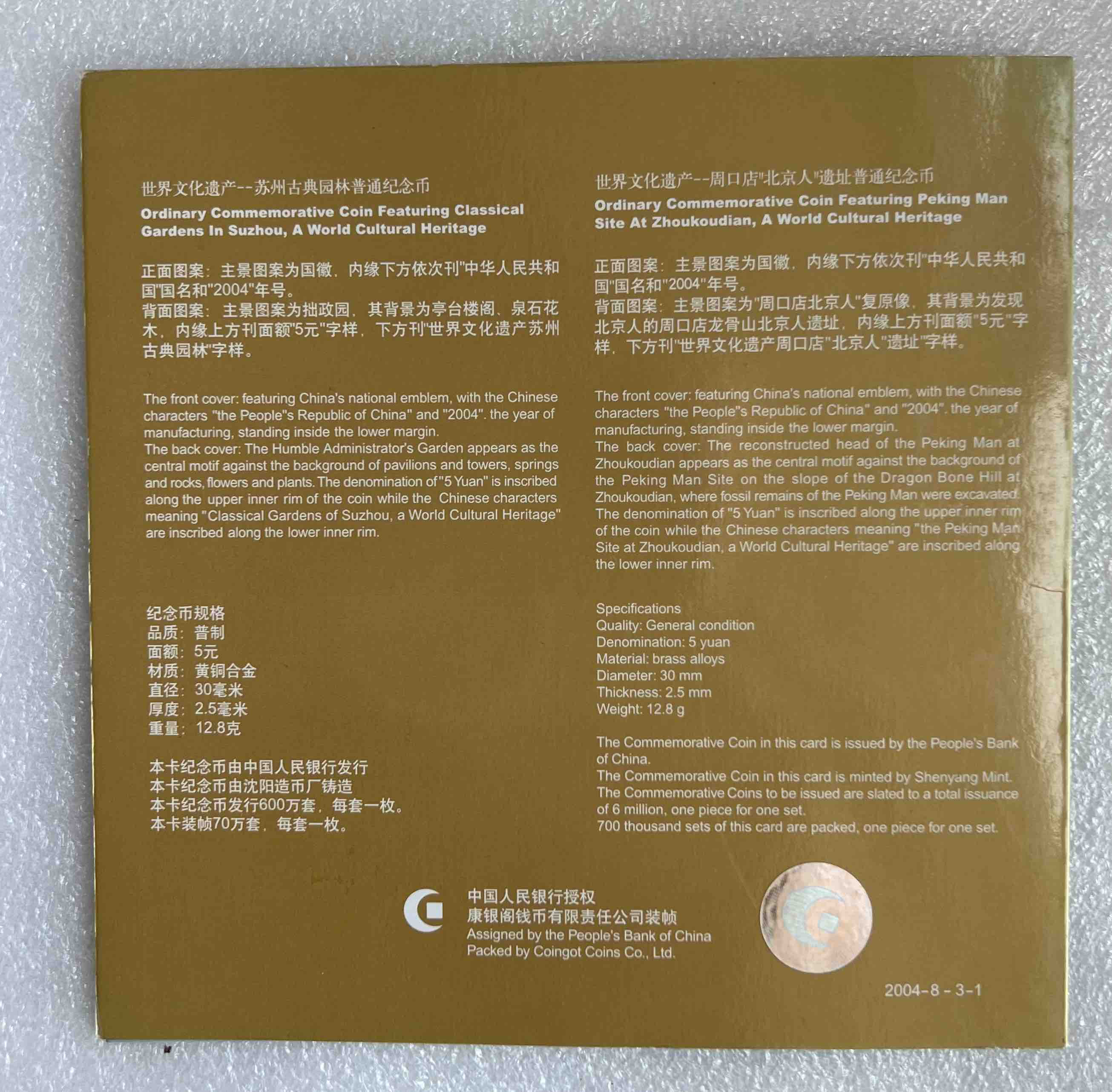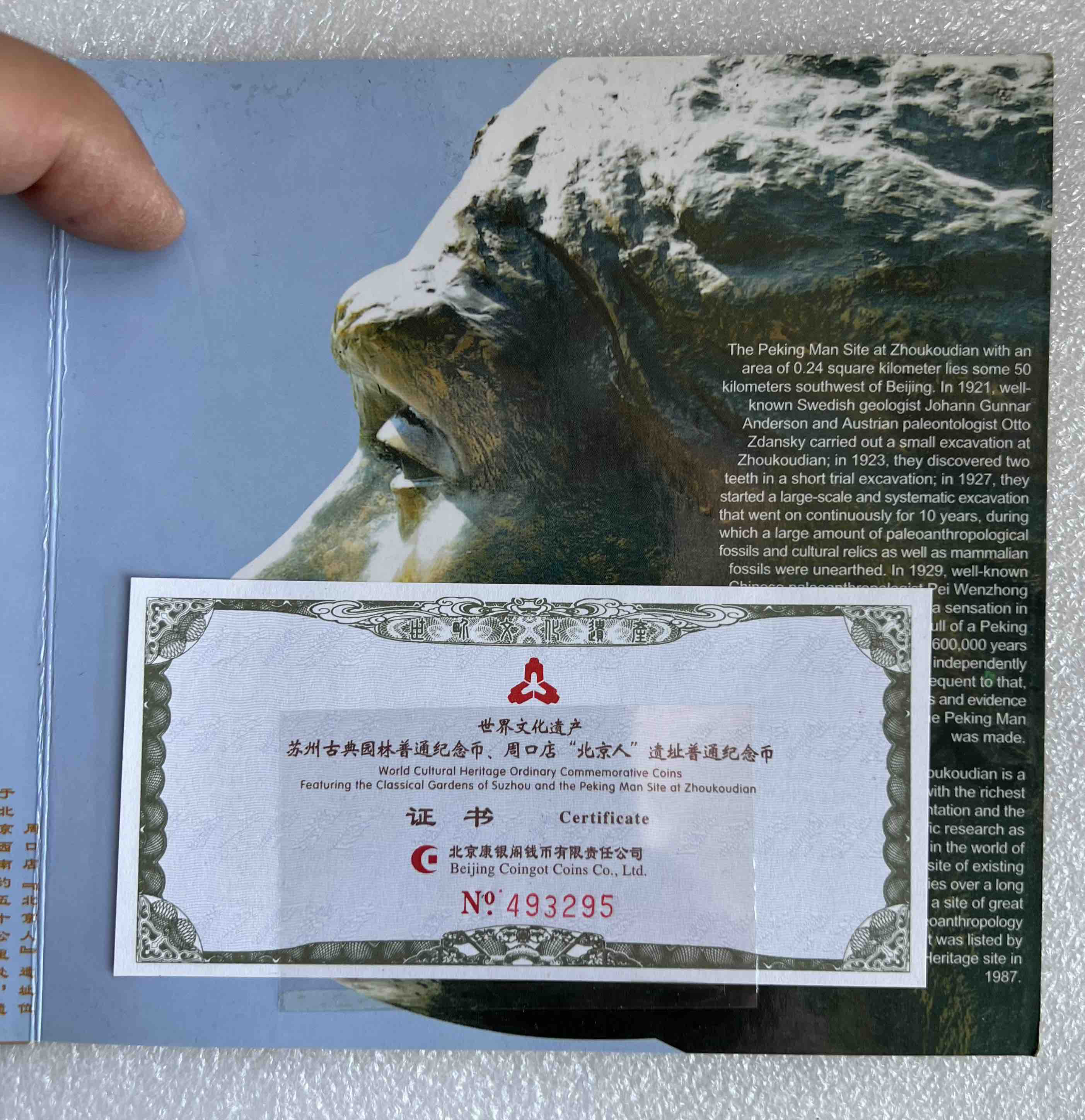 康银阁装帧:苏州园林、北京周口店猿人纪念币(一套二枚)
