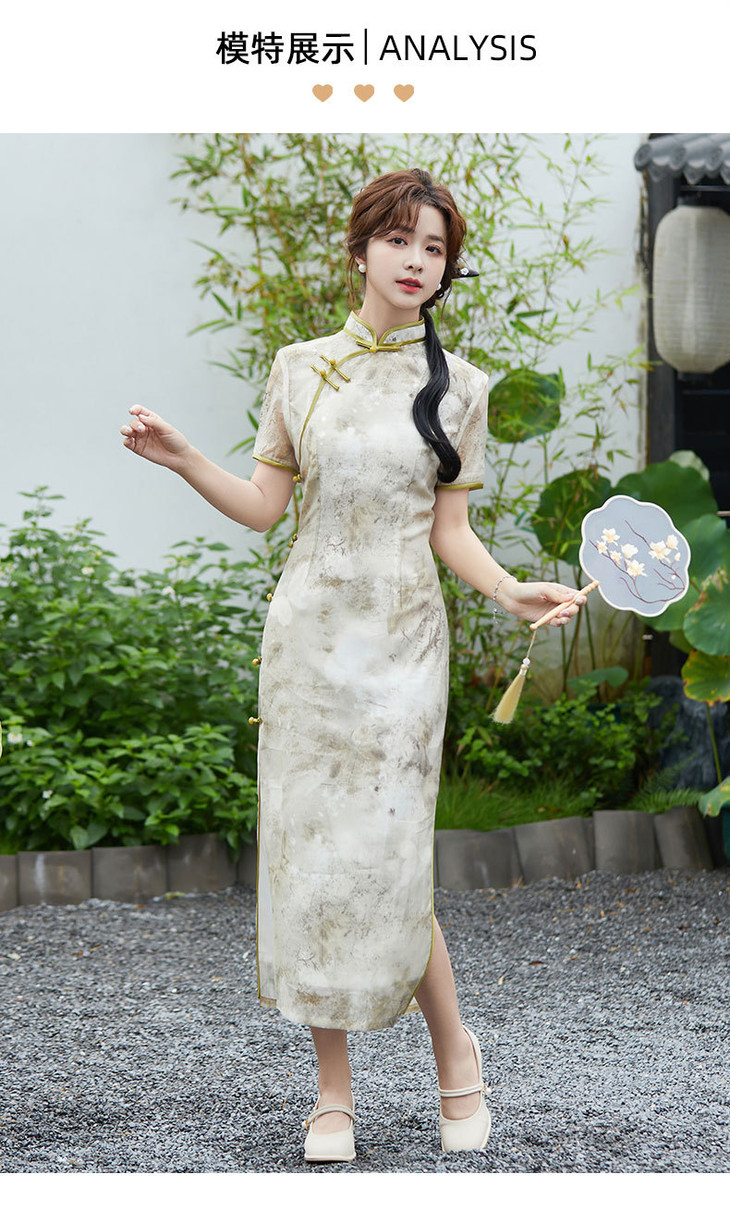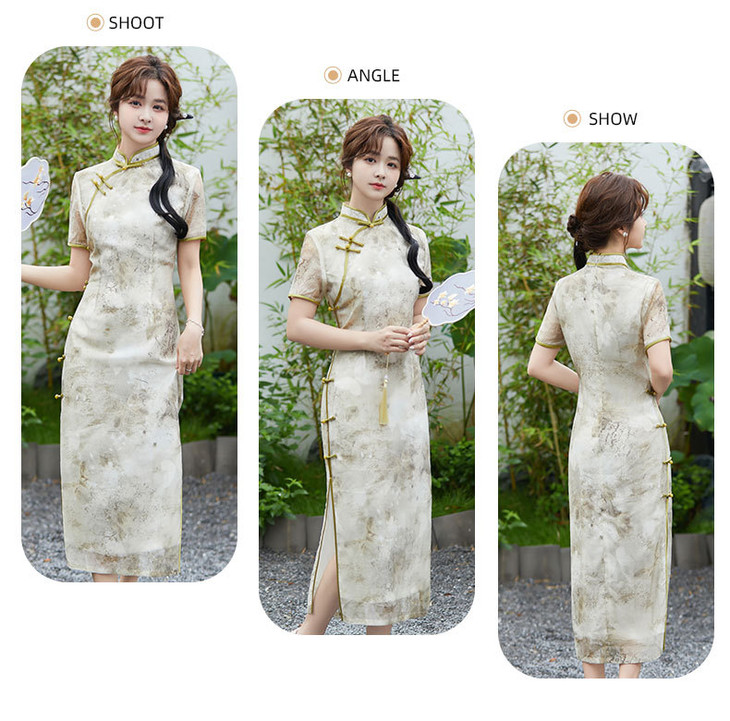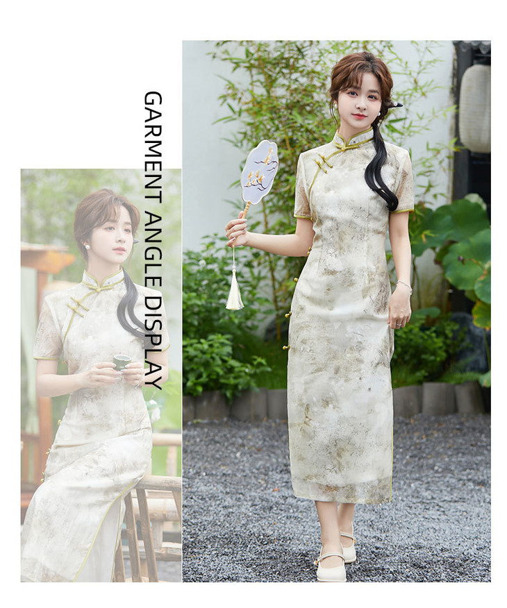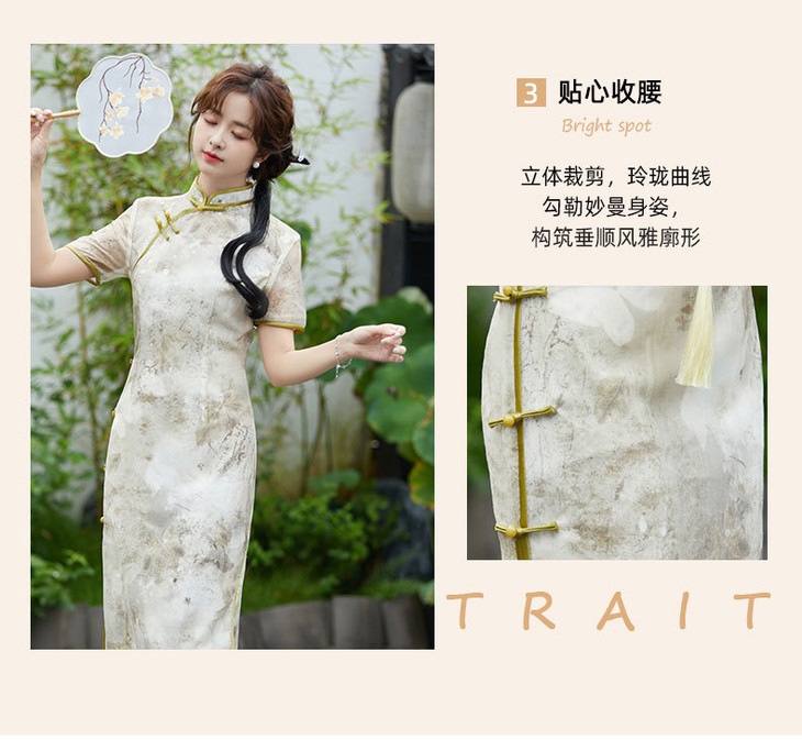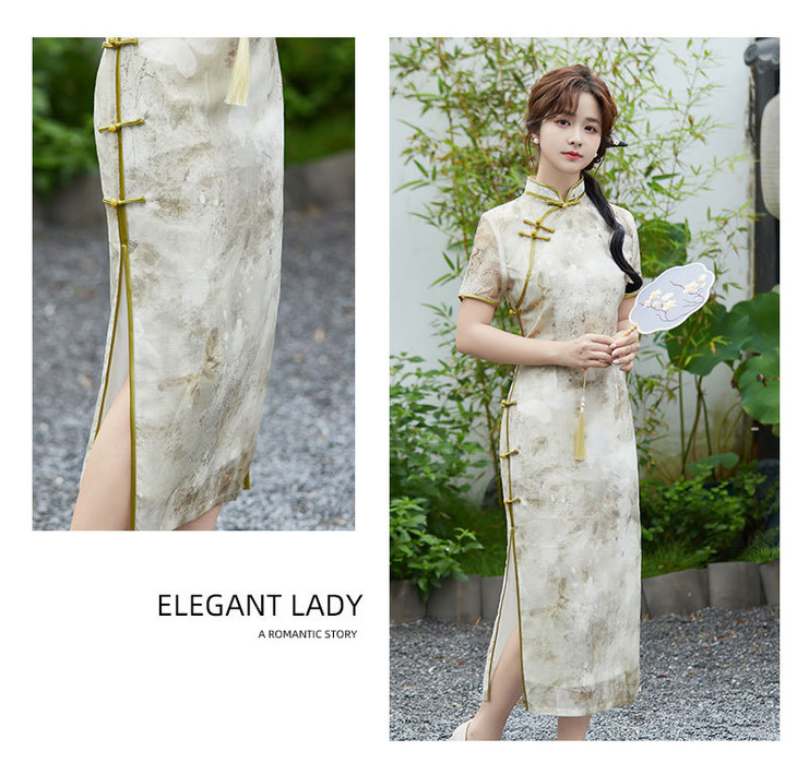 SYG2024年新款旗袍春秋款中式妈妈旗袍年轻款三分袖女复古修身礼服