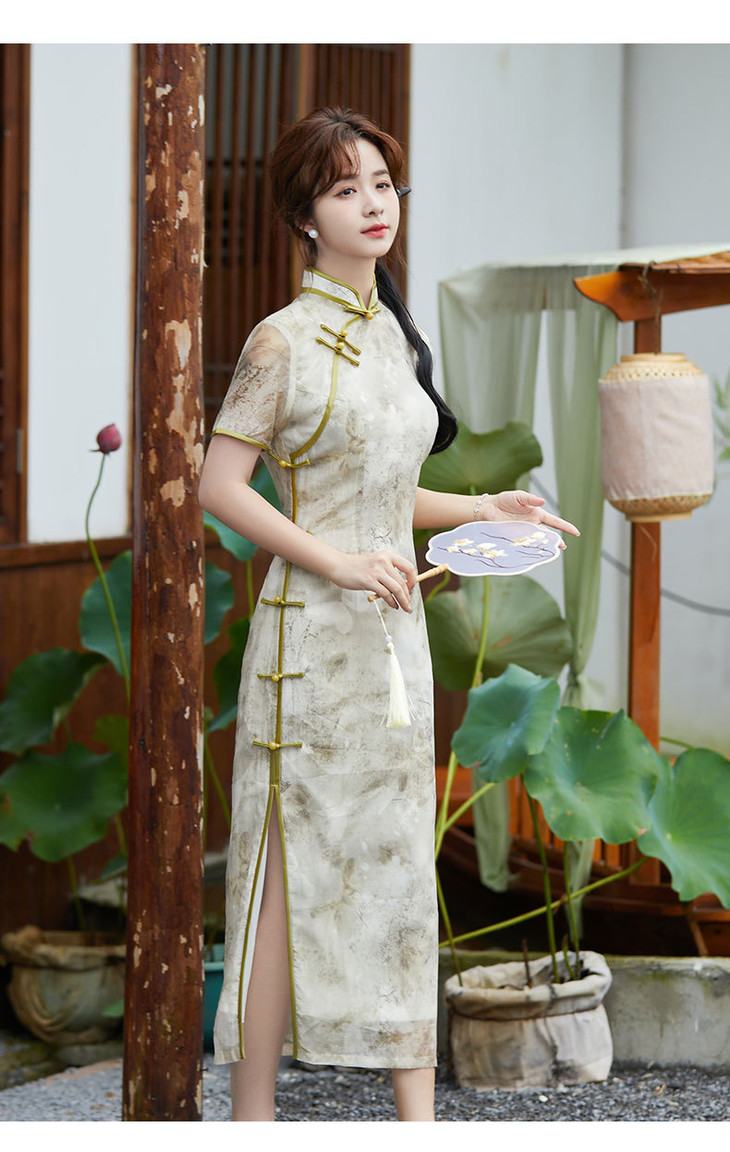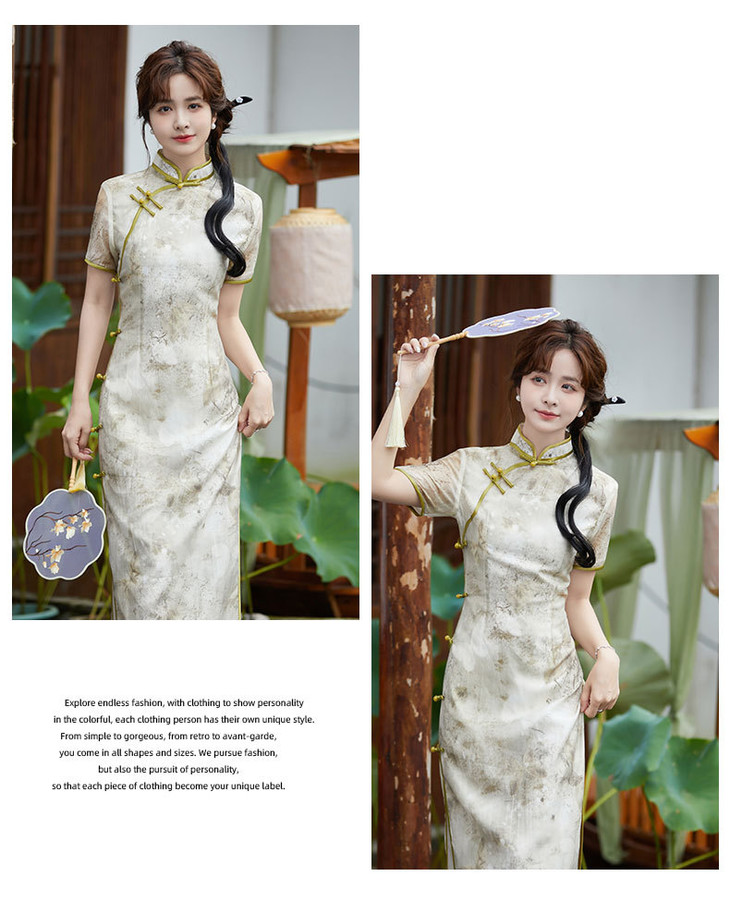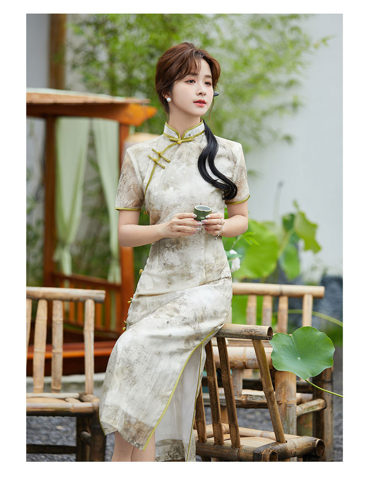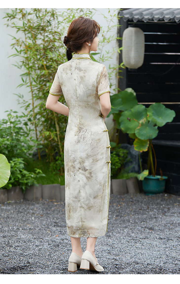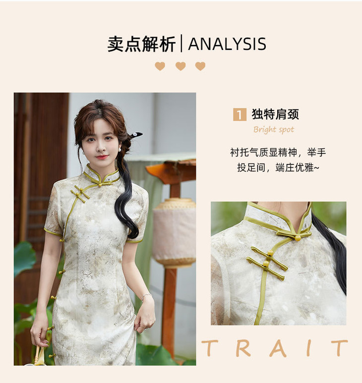 SYG2024年新款旗袍春秋款中式妈妈旗袍年轻款三分袖女复古修身礼服