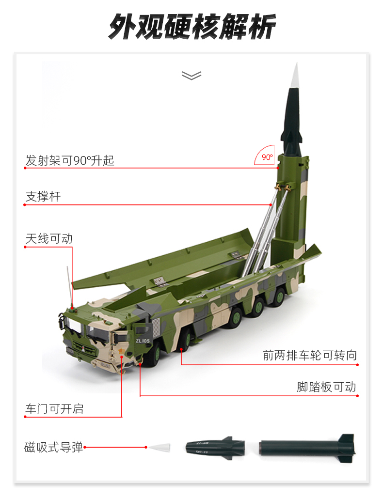 特尔博-长春航展、九三阅兵纪念品 1:35东风17模型DF-17导弹发射车模型仿真合金成品弹道导弹