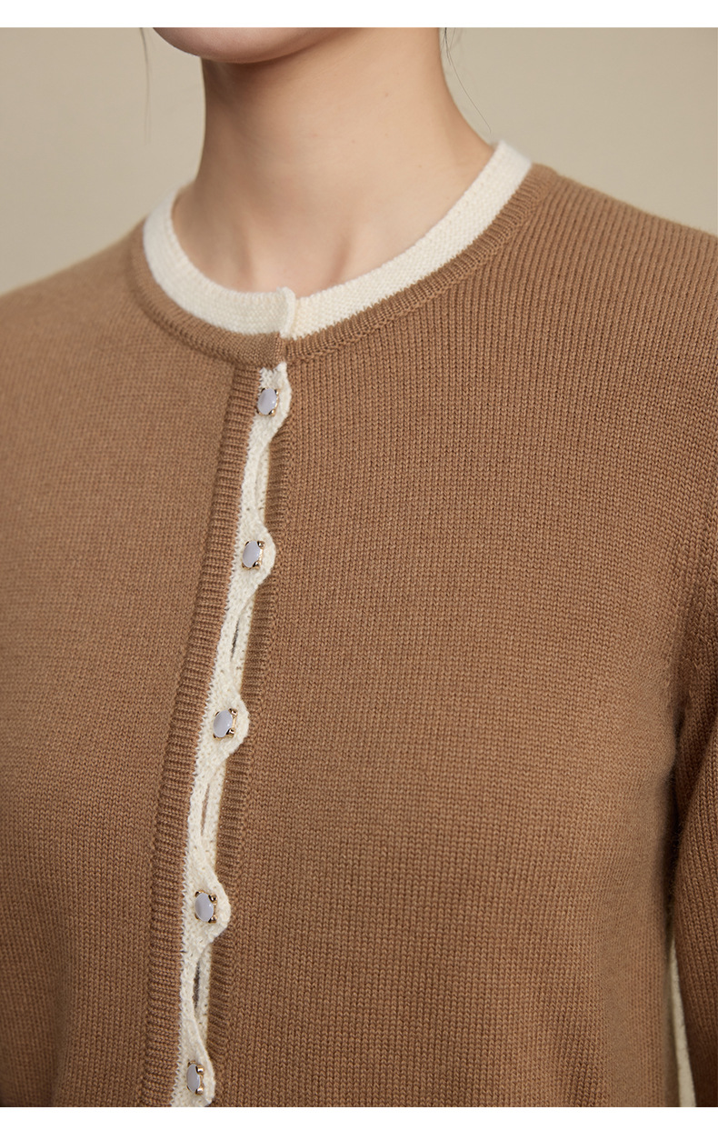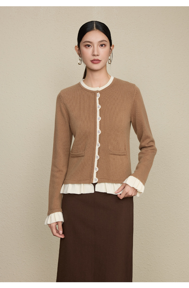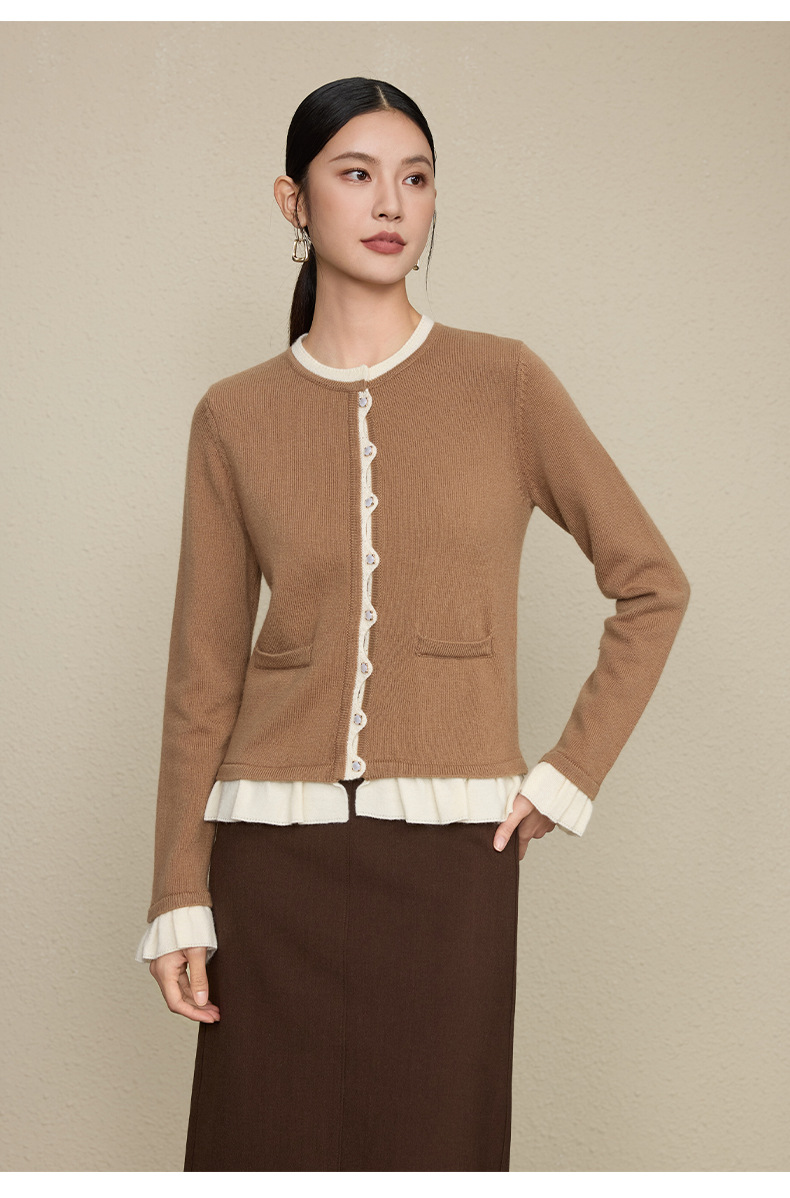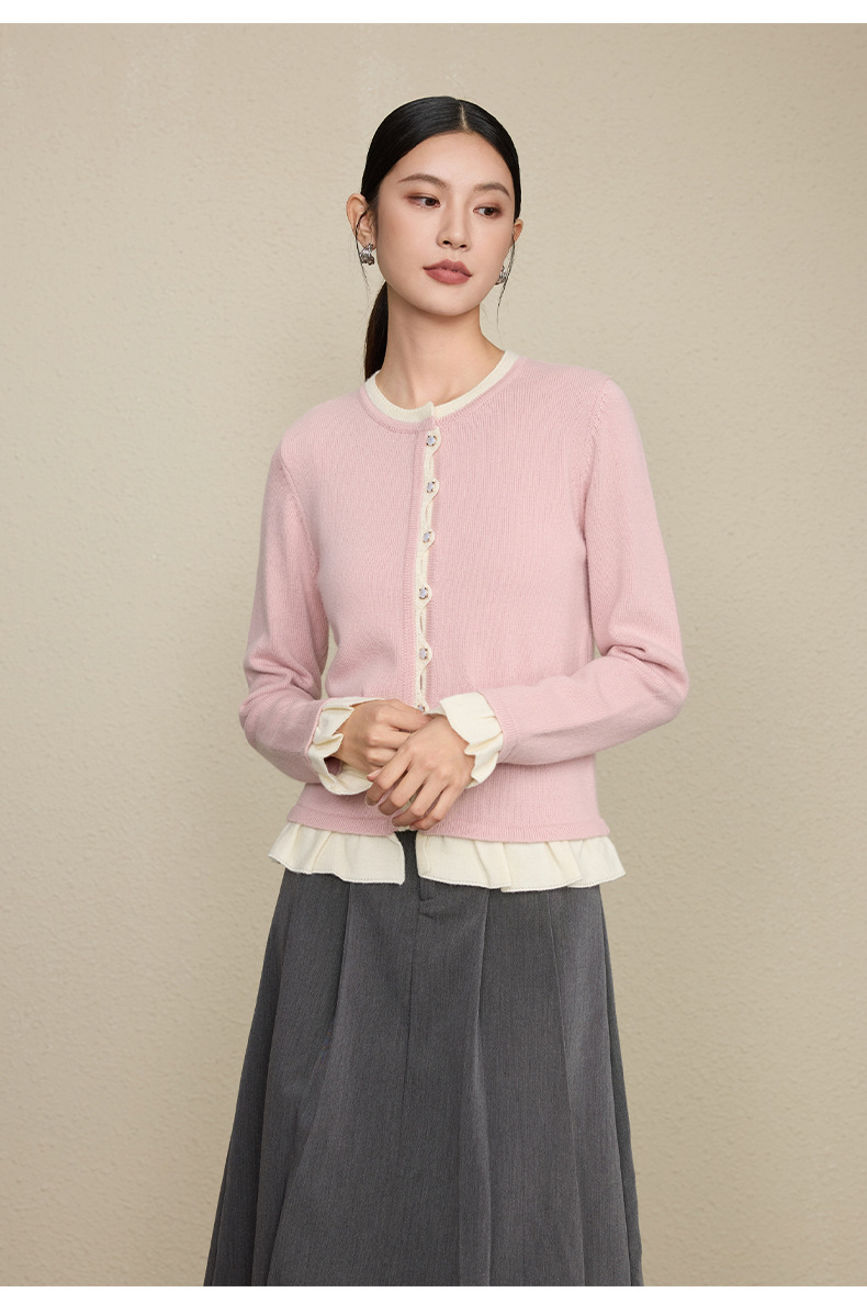 「自」全新升级【铂金会员349/天猫469/差价120】(05533)洛诗琳假两件小香风羊毛衫2025秋季荷叶边拼接圆领针织外套