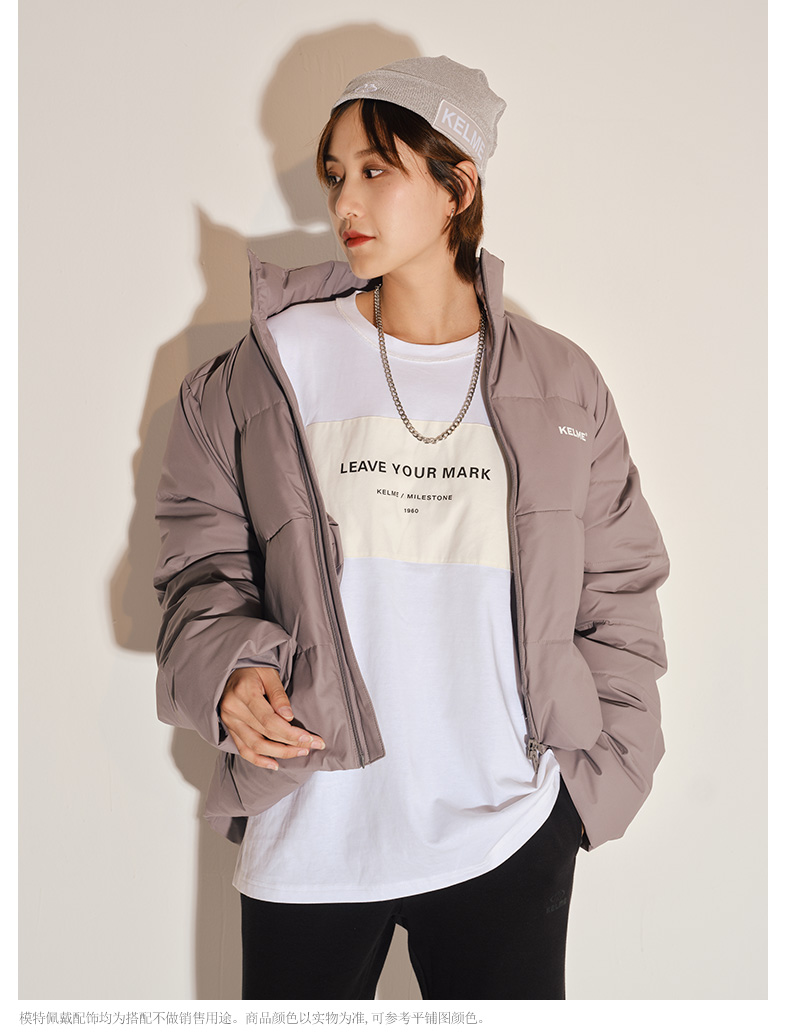 卡尔美女士秋冬短款羽绒服保暖外套面包服YR60405004