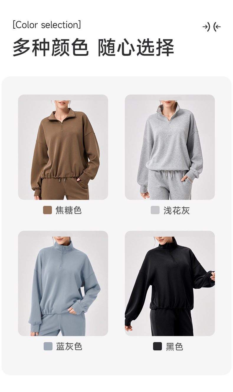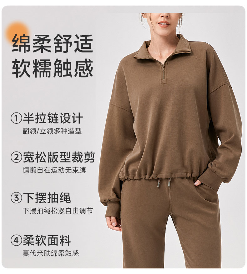 跃牌【欲动春风】系列 秋冬瑜伽服运动卫衣莫代尔宽松休闲立领上衣42553
