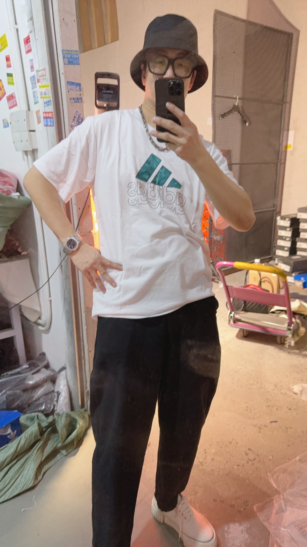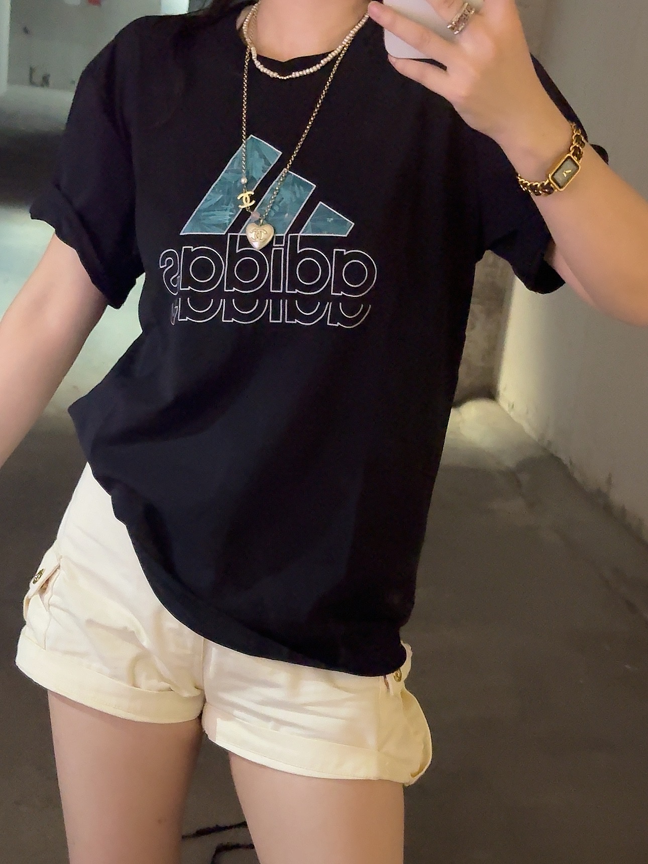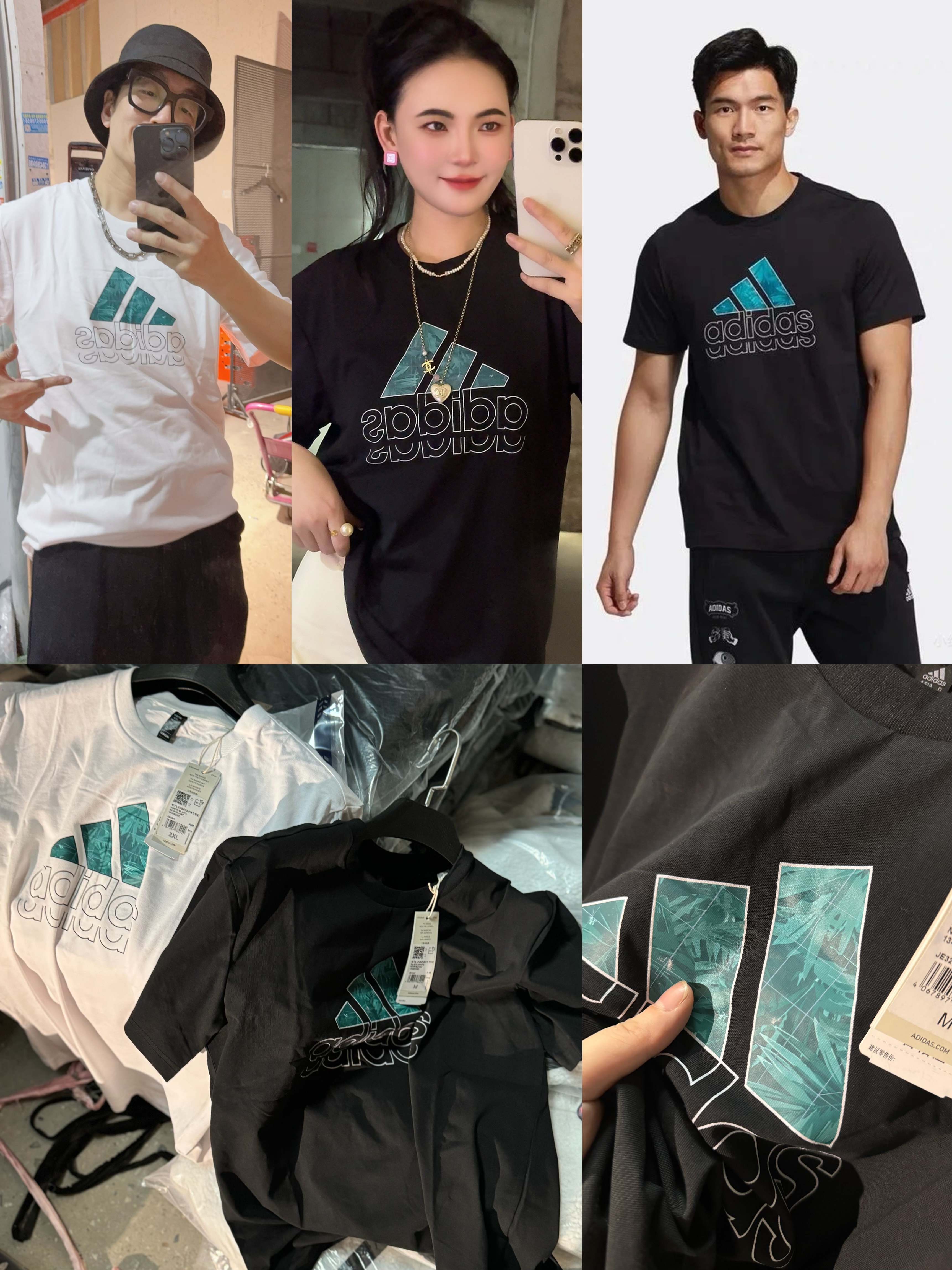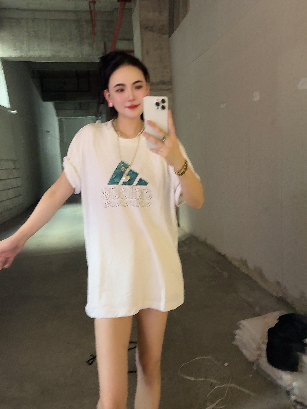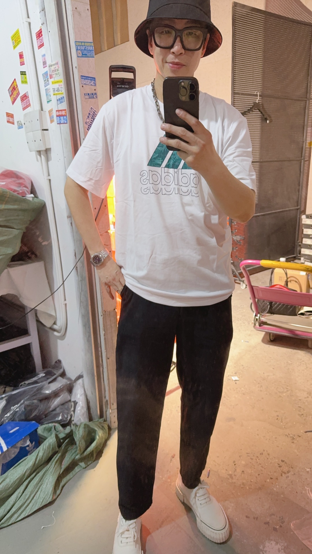 阿&迪男女同款字母logo t经典 两个颜色,纯棉材质。波哥黑色穿的L码。白色穿的XL码。蕾姐白色2XL效果 黑色M效果。图片对应上身效果。最大2XL。这款版型正常卡码往大拍。 M-140以内⚠️ L155以内 XL 170以内 2XL185以内⚠️