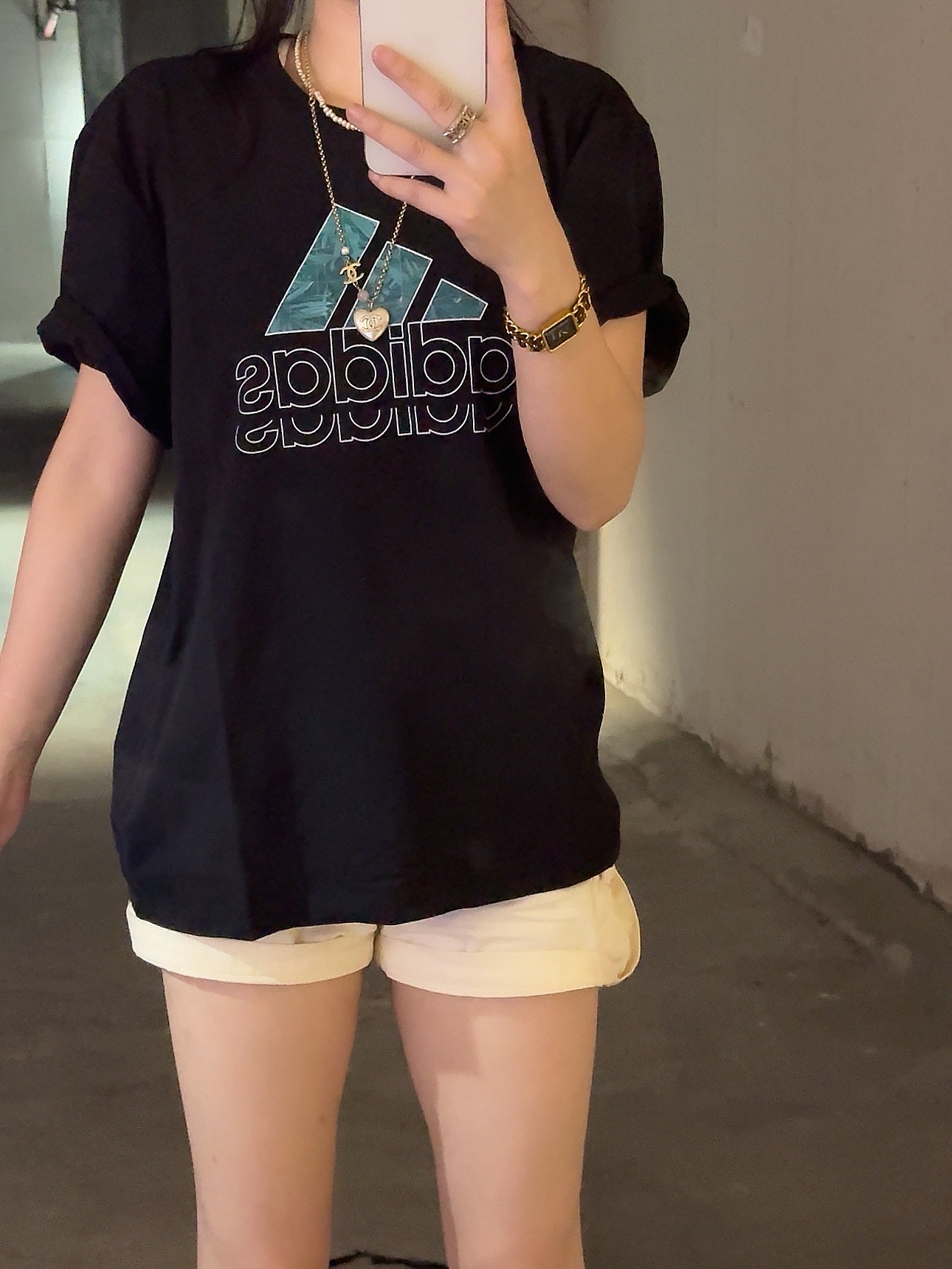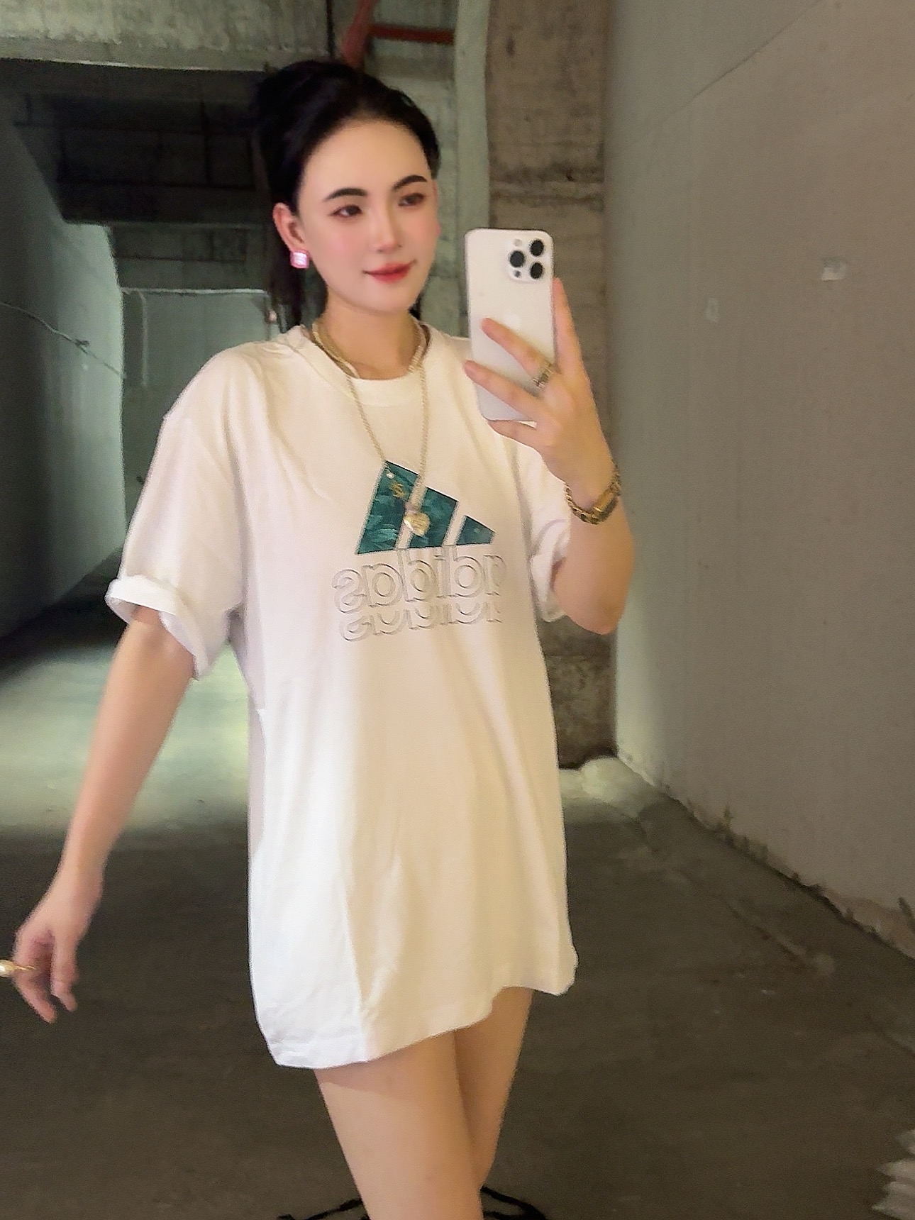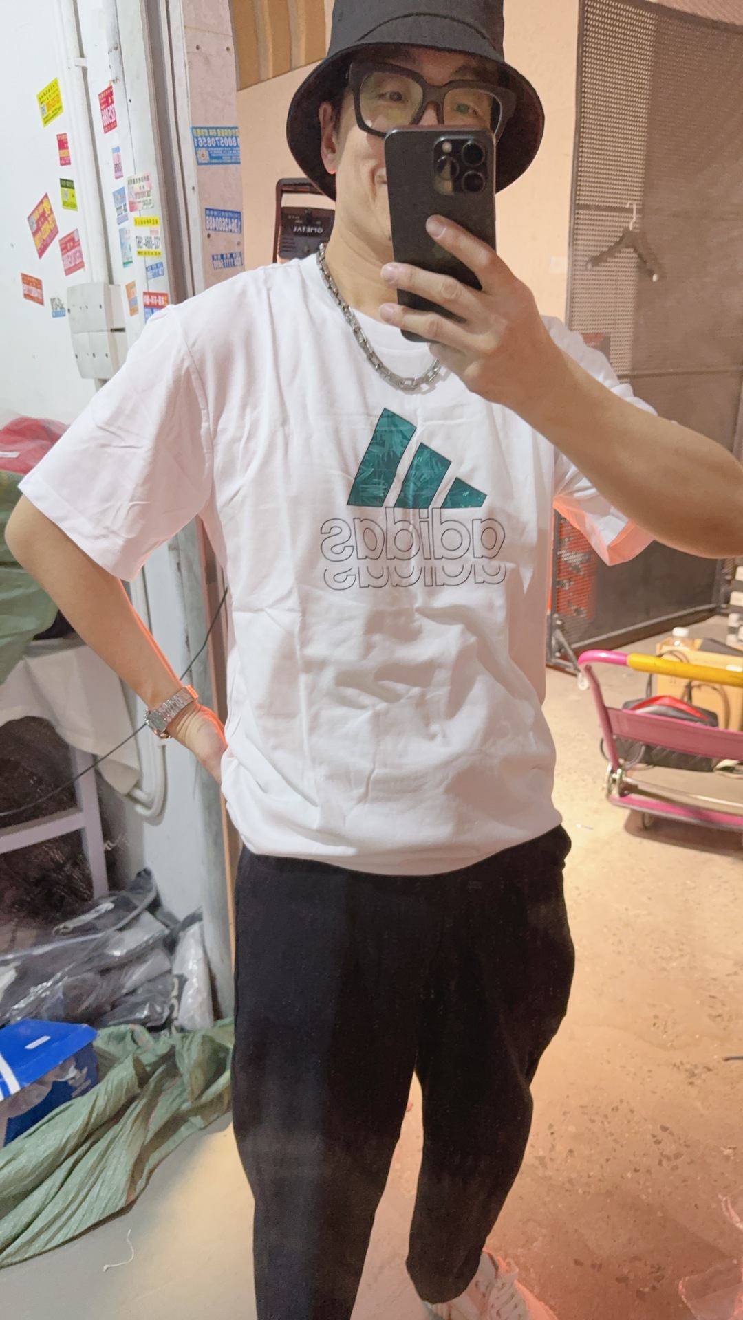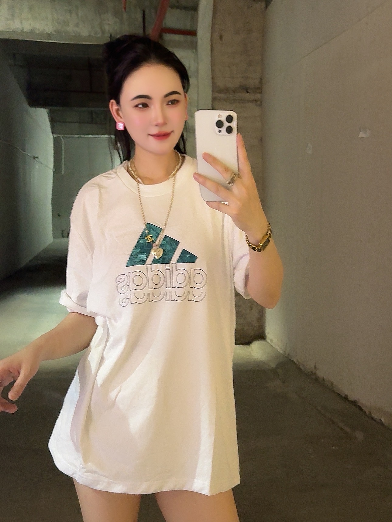 阿&迪男女同款字母logo t经典 两个颜色,纯棉材质。波哥黑色穿的L码。白色穿的XL码。蕾姐白色2XL效果 黑色M效果。图片对应上身效果。最大2XL。这款版型正常卡码往大拍。 M-140以内⚠️ L155以内 XL 170以内 2XL185以内⚠️