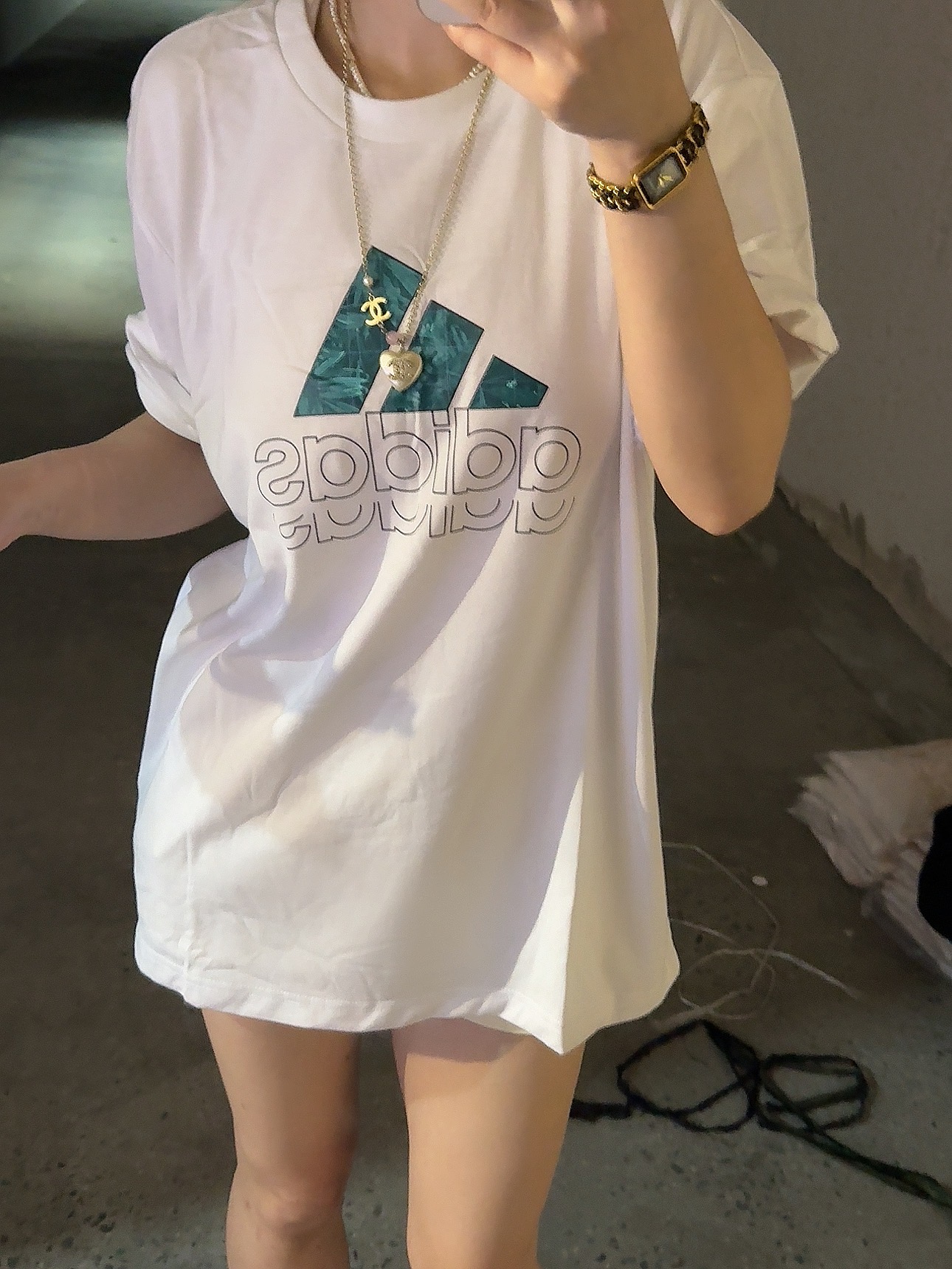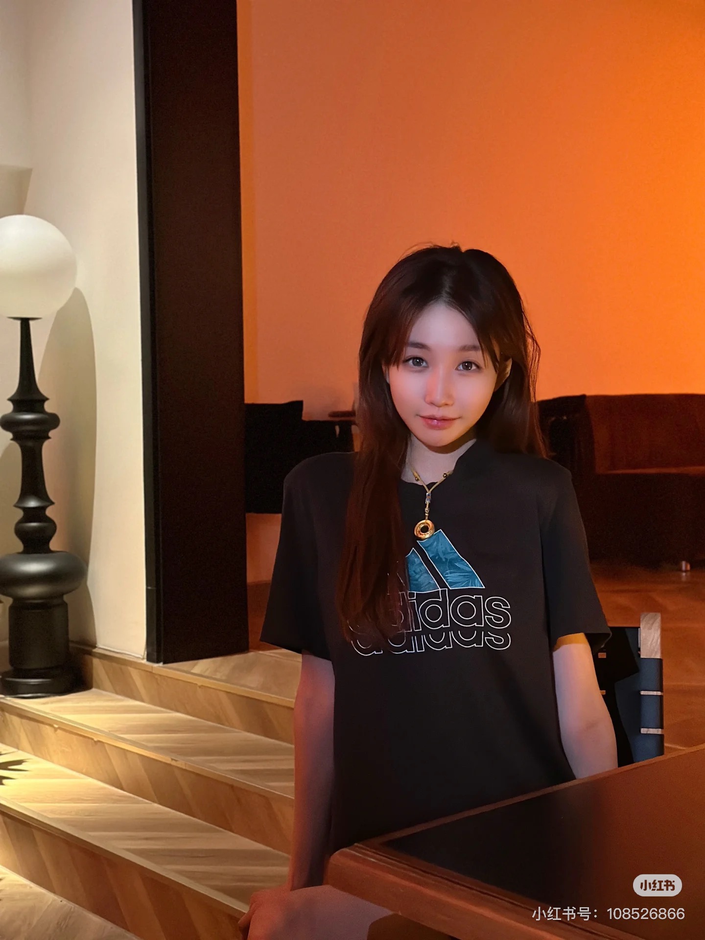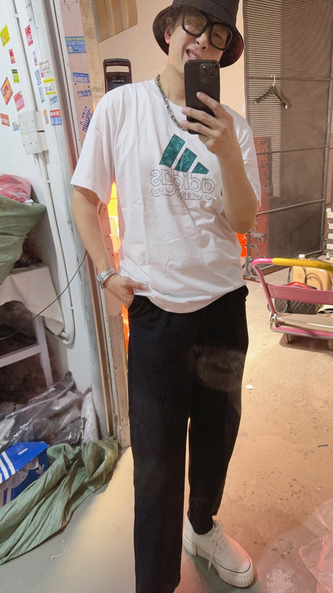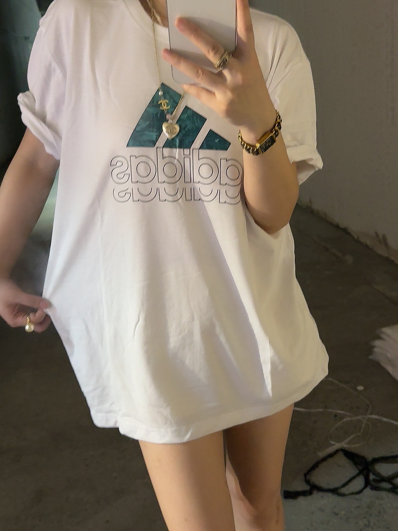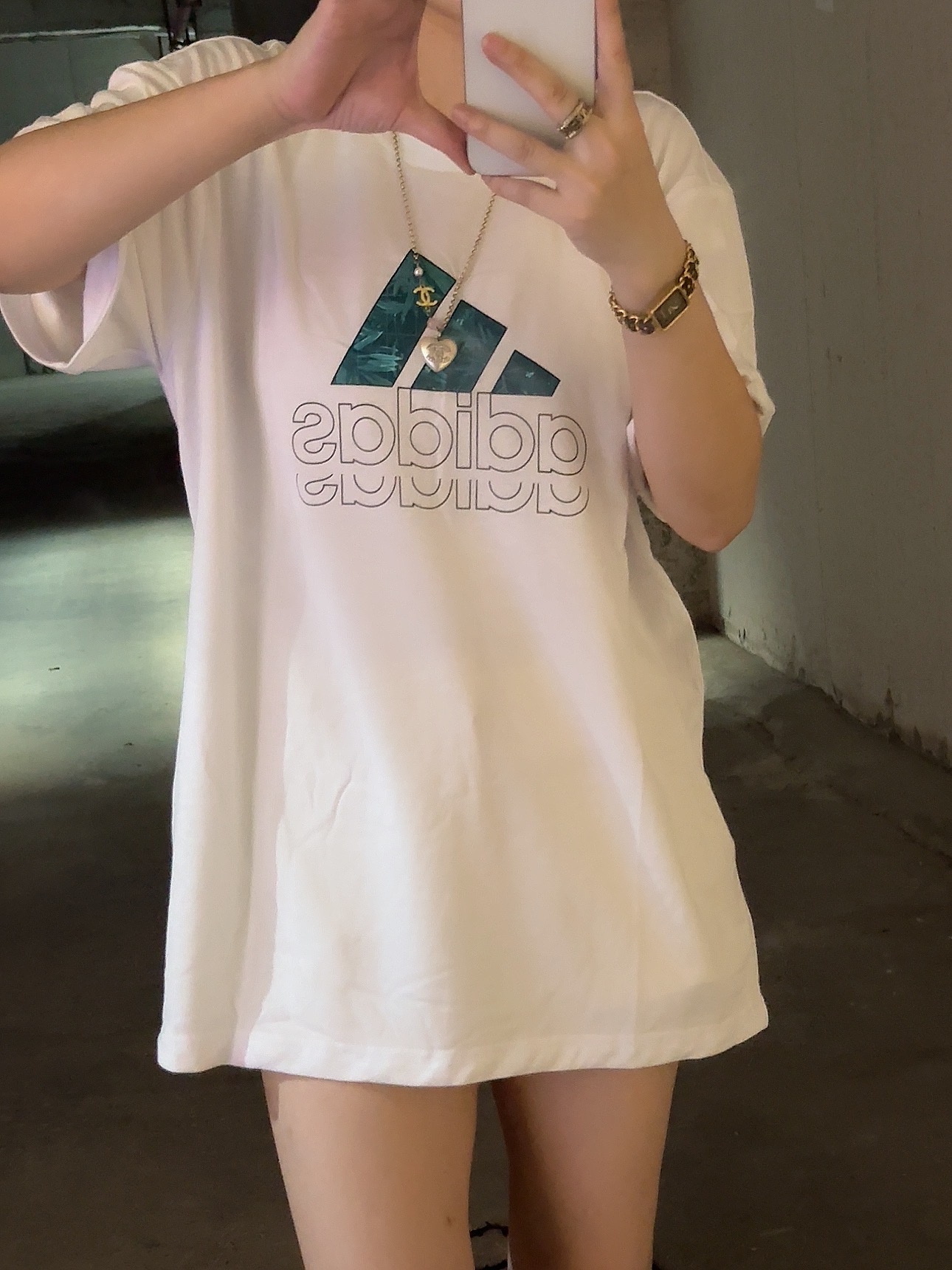 阿&迪男女同款字母logo t经典 两个颜色,纯棉材质。波哥黑色穿的L码。白色穿的XL码。蕾姐白色2XL效果 黑色M效果。图片对应上身效果。最大2XL。这款版型正常卡码往大拍。 M-140以内⚠️ L155以内 XL 170以内 2XL185以内⚠️
