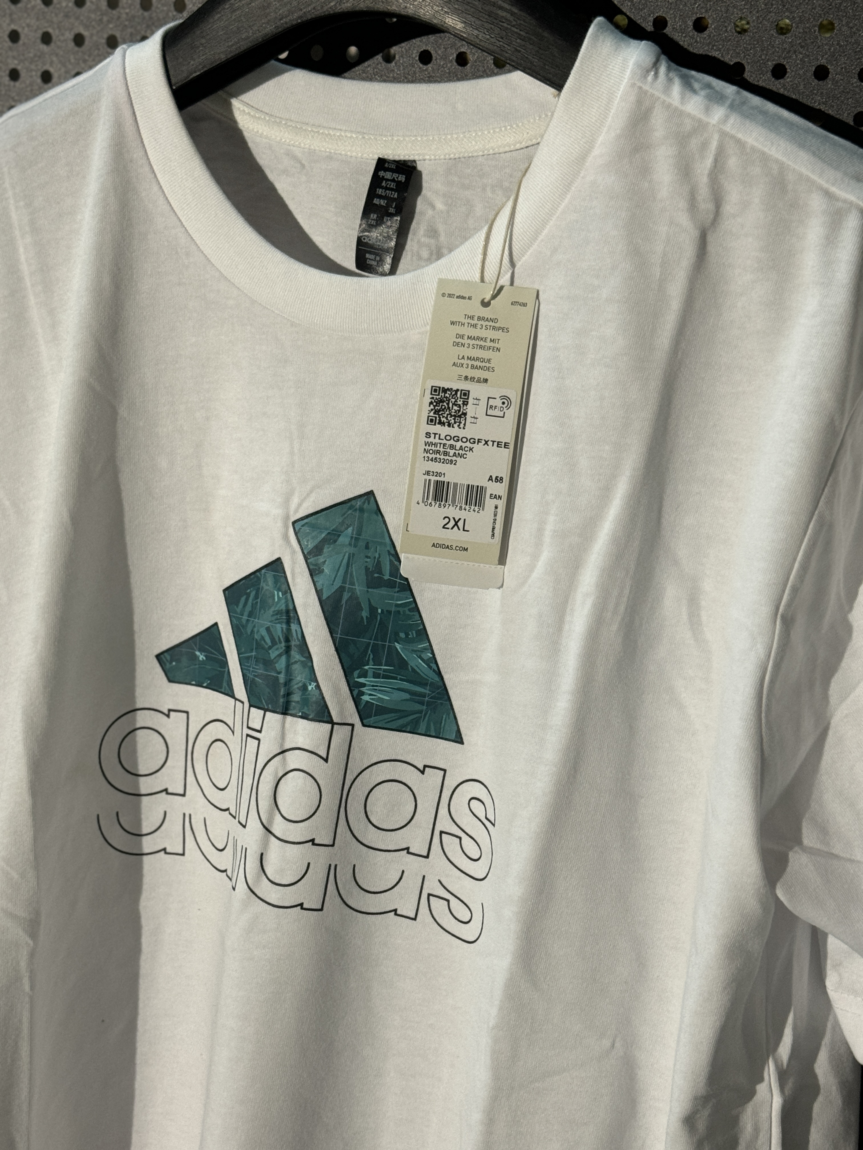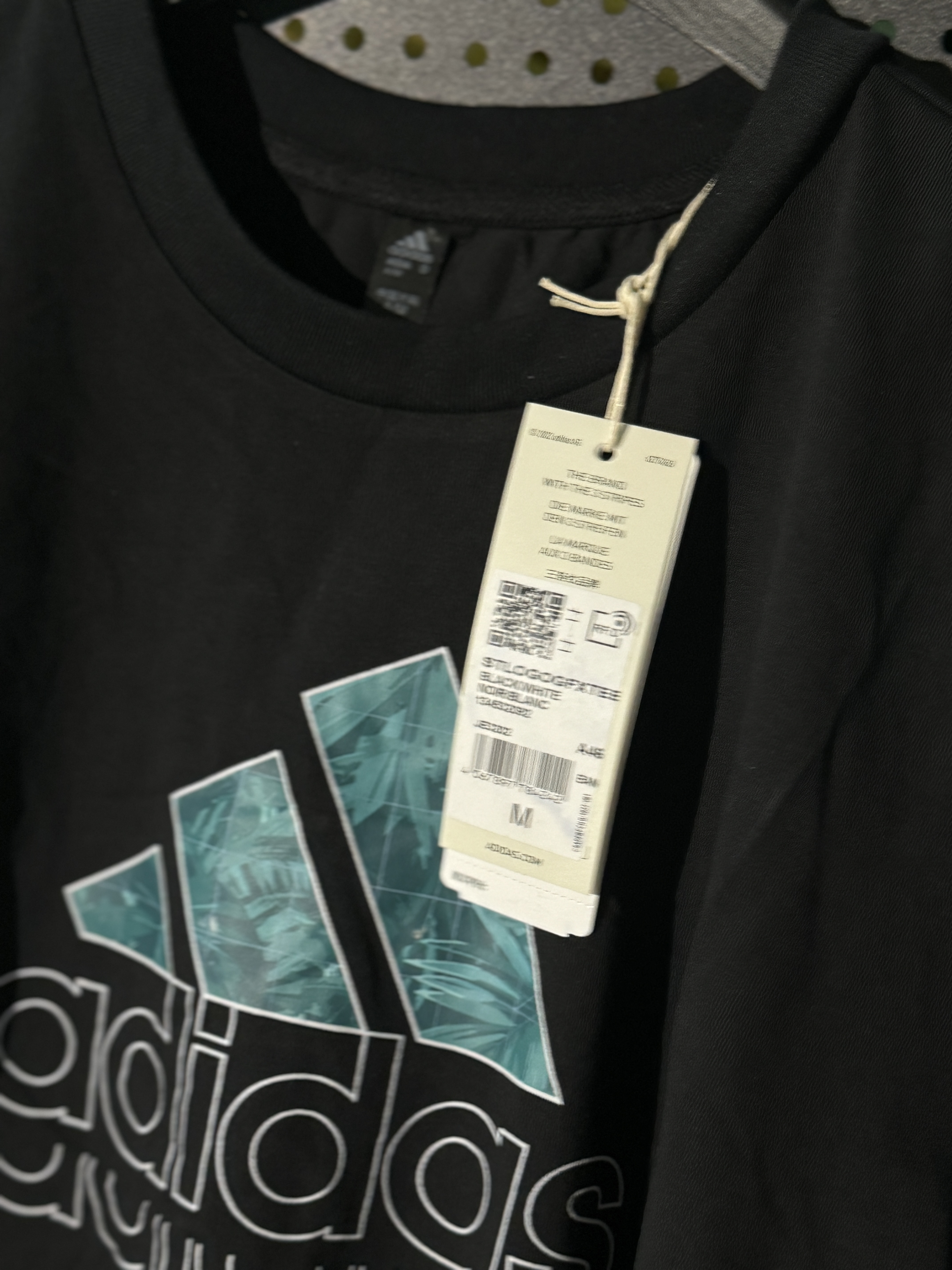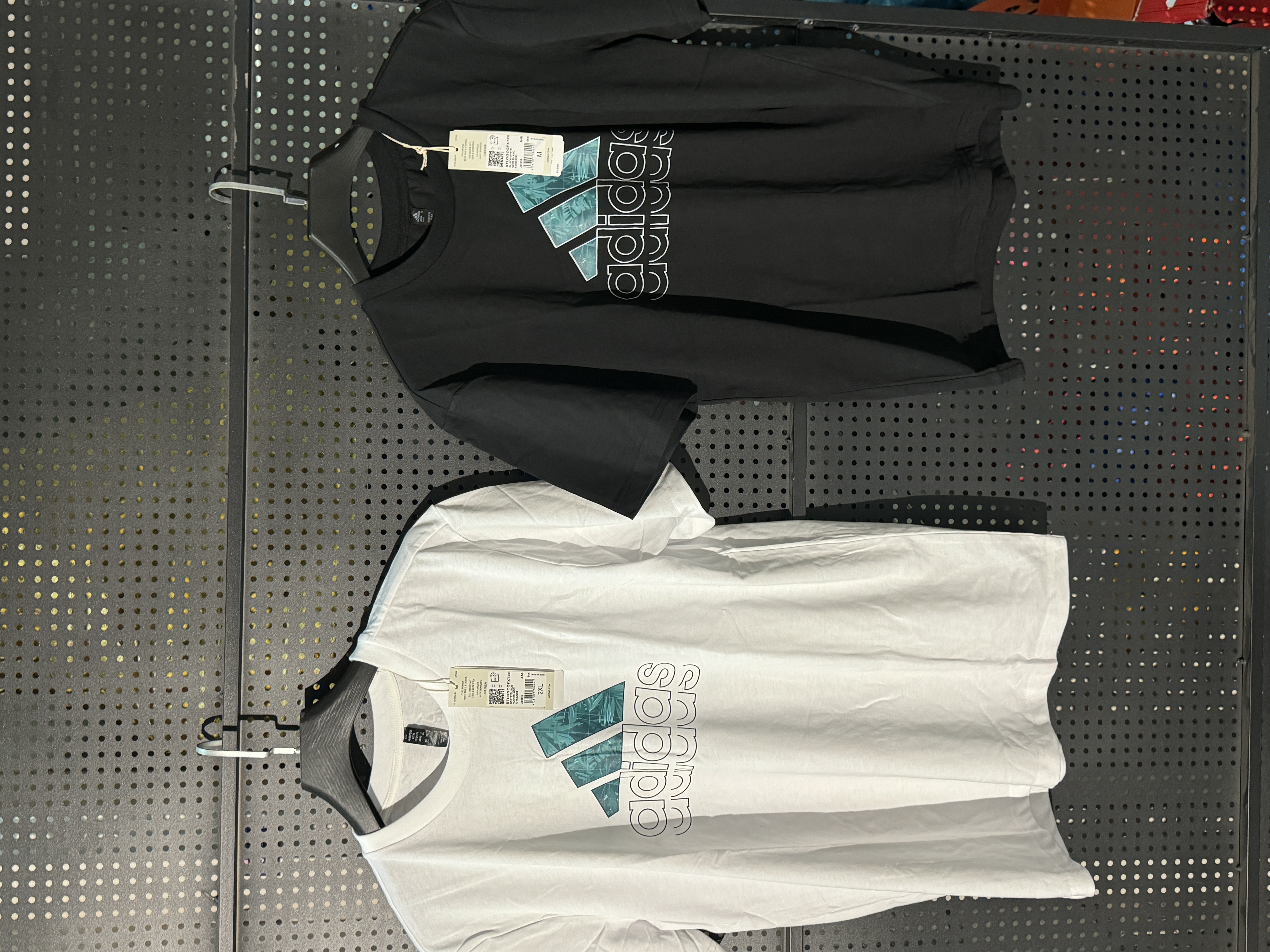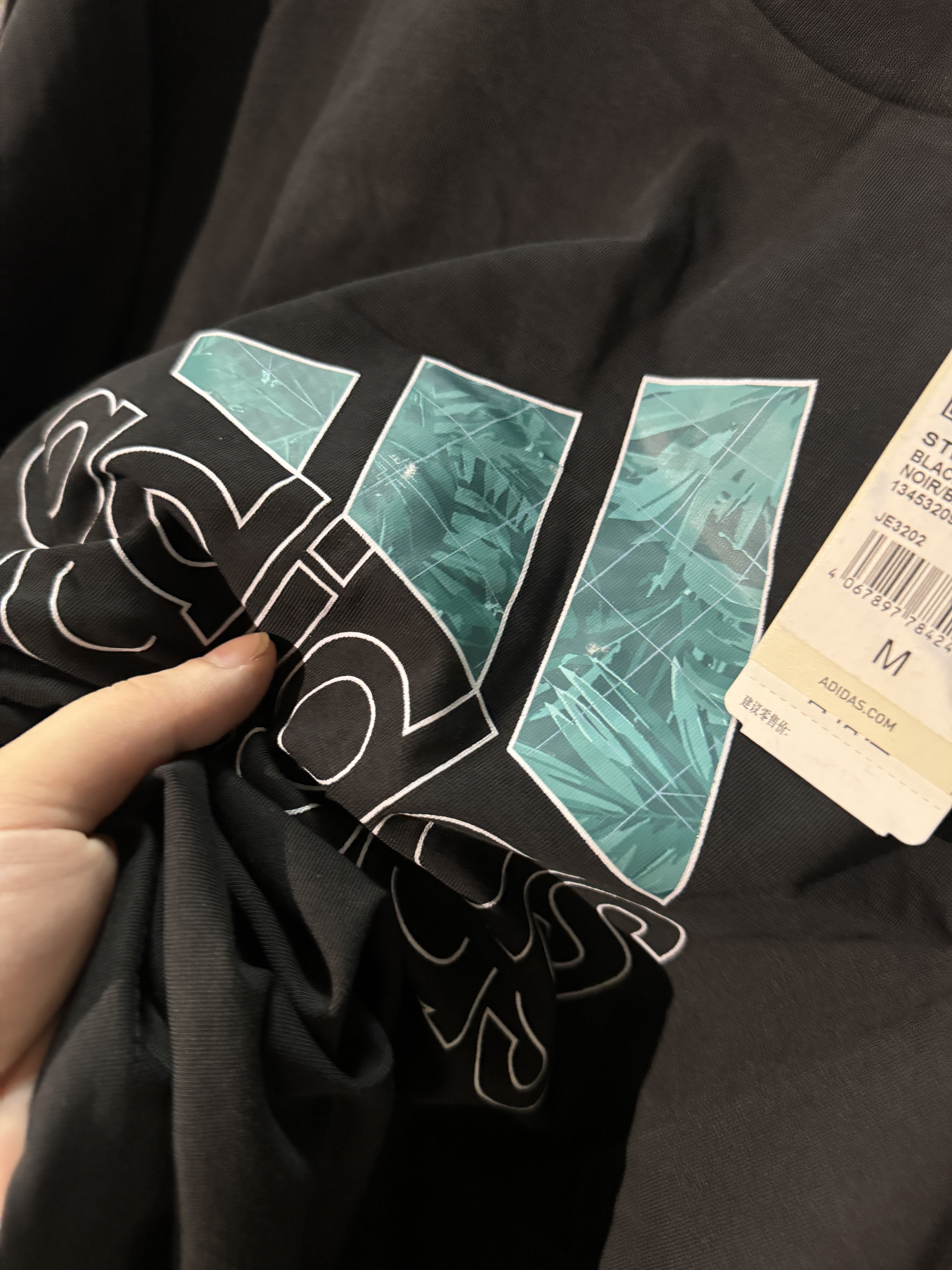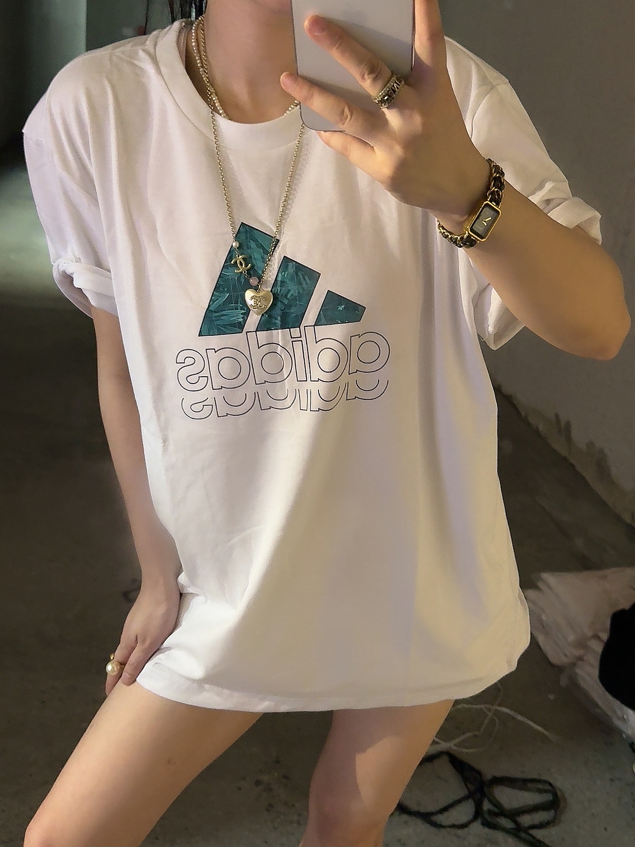 阿&迪男女同款字母logo t经典 两个颜色,纯棉材质。波哥黑色穿的L码。白色穿的XL码。蕾姐白色2XL效果 黑色M效果。图片对应上身效果。最大2XL。这款版型正常卡码往大拍。 M-140以内⚠️ L155以内 XL 170以内 2XL185以内⚠️