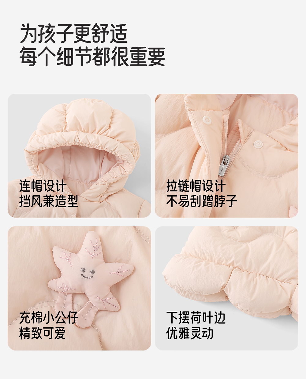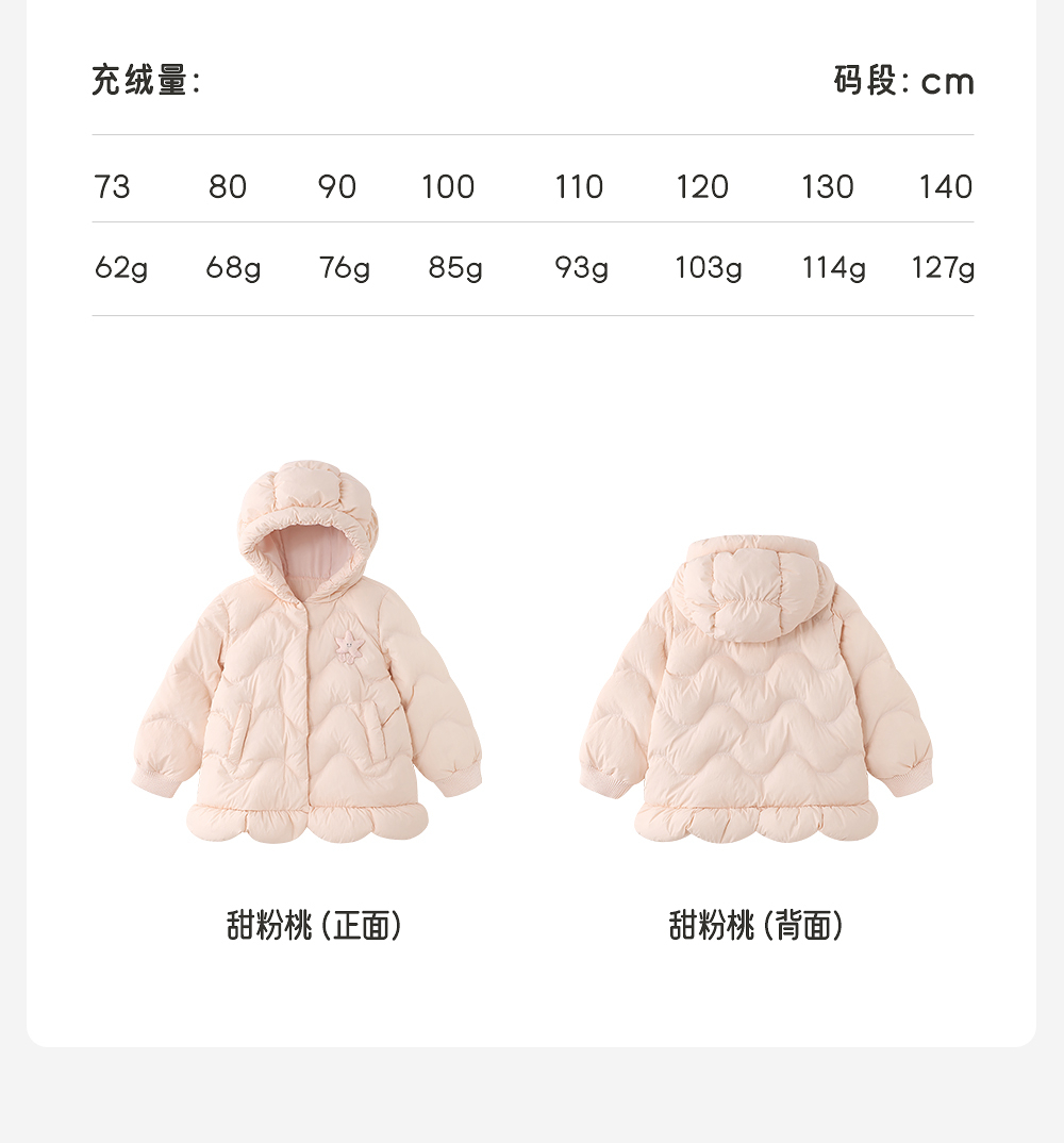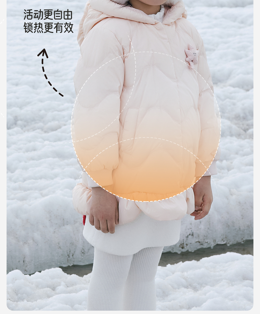 【商场同款】英氏儿童羽绒服女童连帽外套秋冬保暖粉色宝宝新款超韧绒
