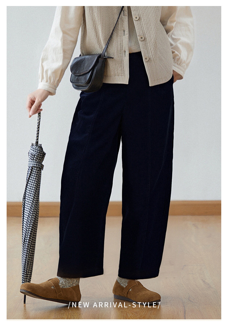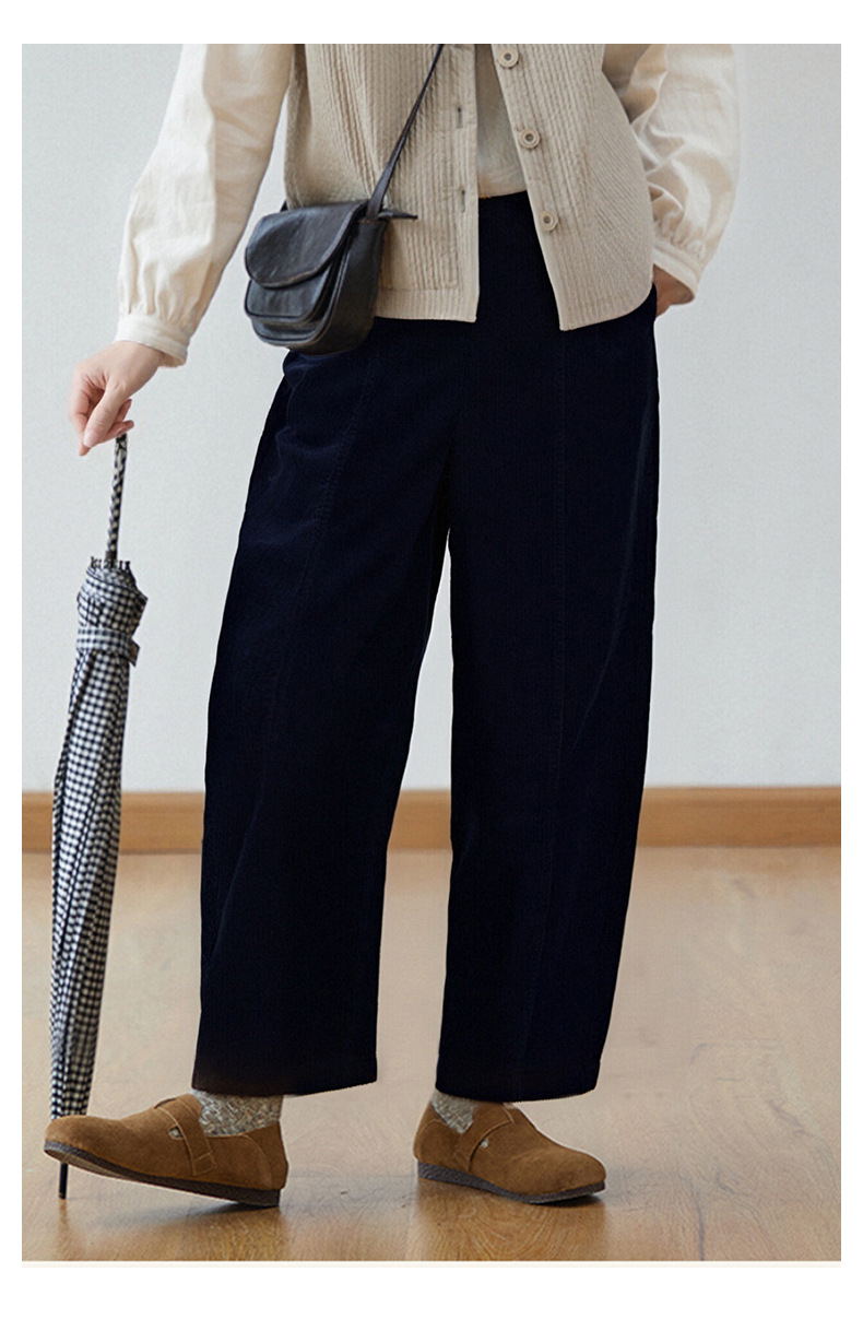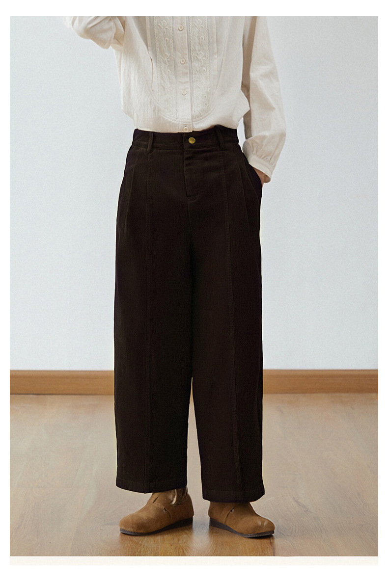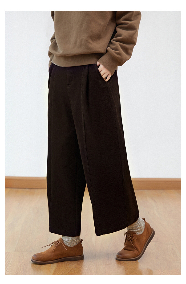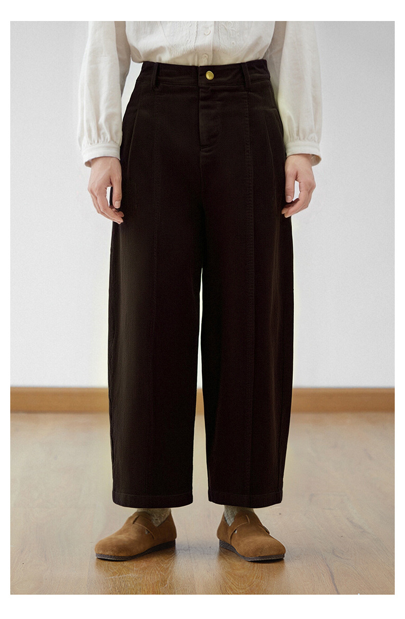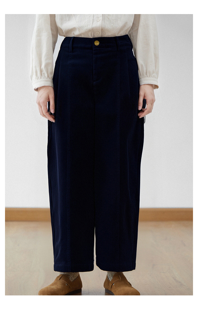 丁摩 灯芯绒休闲裤高腰显瘦直筒阔腿裤秋冬新款长裤5ZF-59106