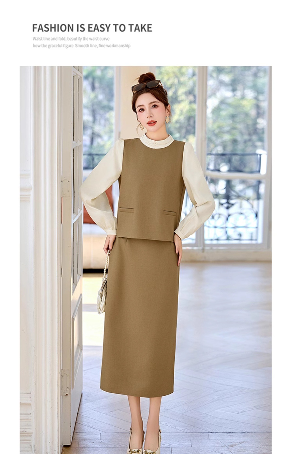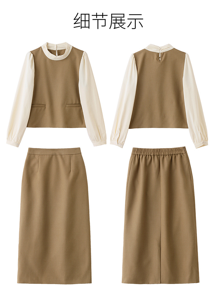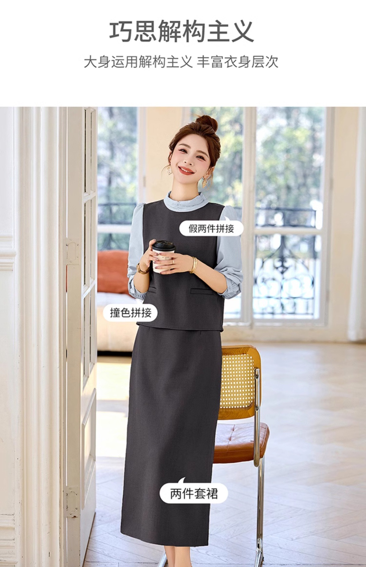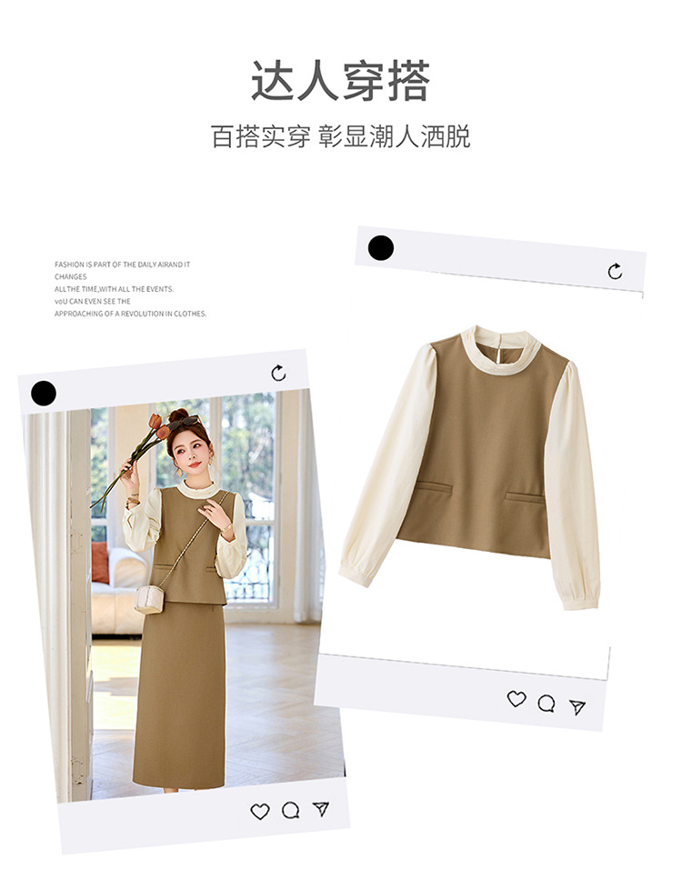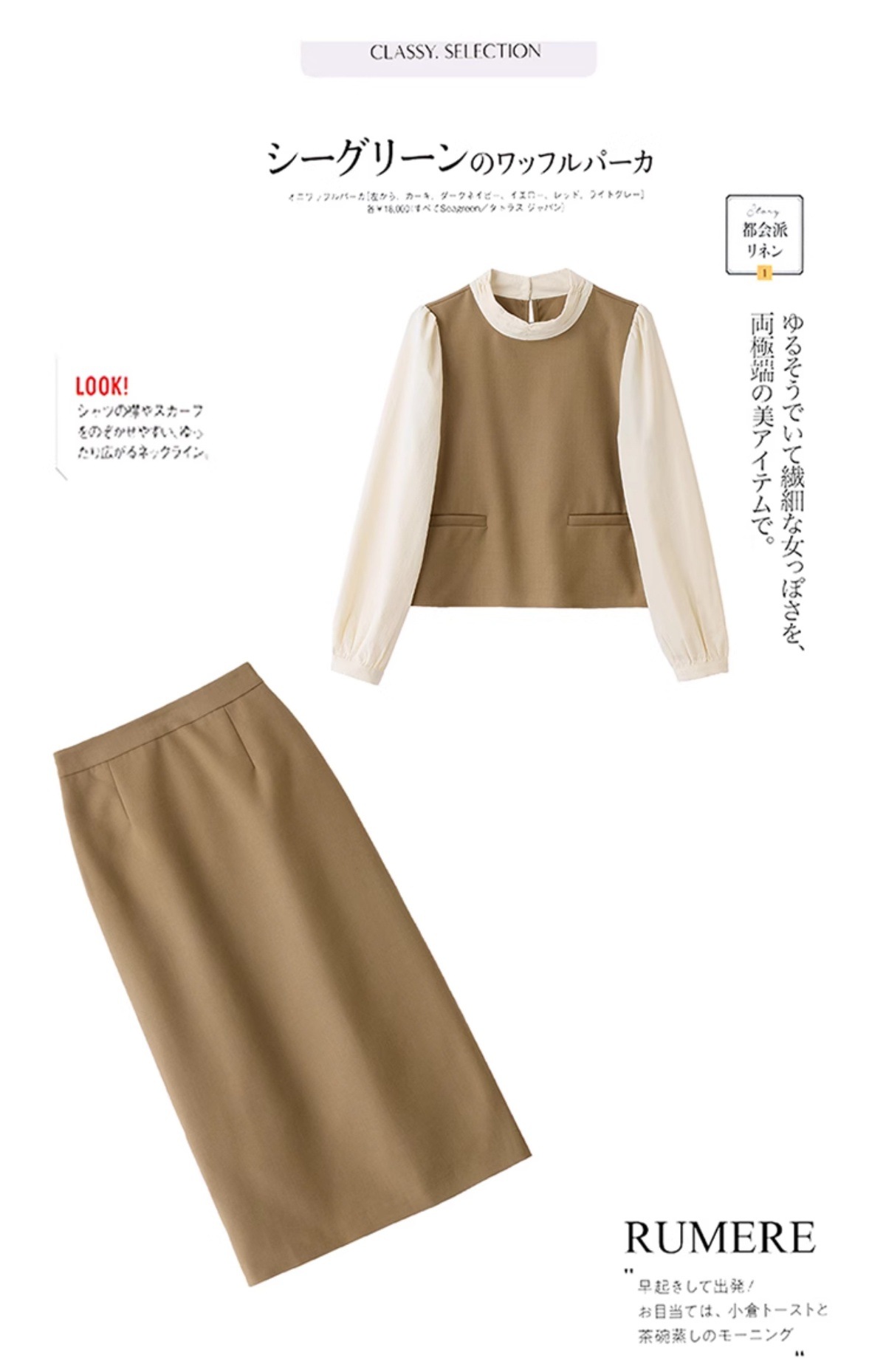 韩系时尚假两件衬衫半身裙套装女春新款通勤气质收腰显瘦两件套MEIQIN5525