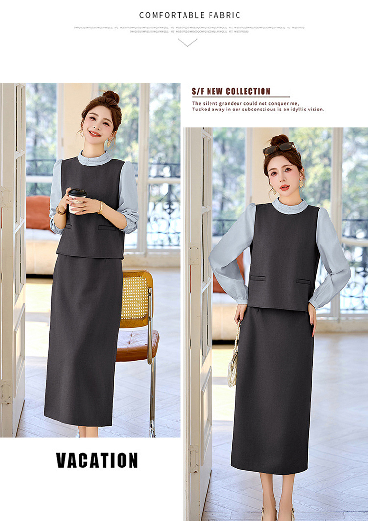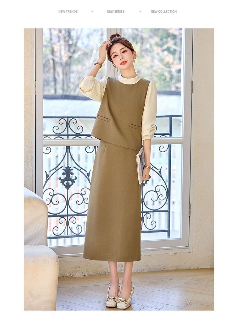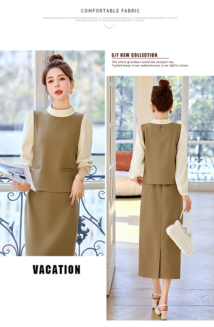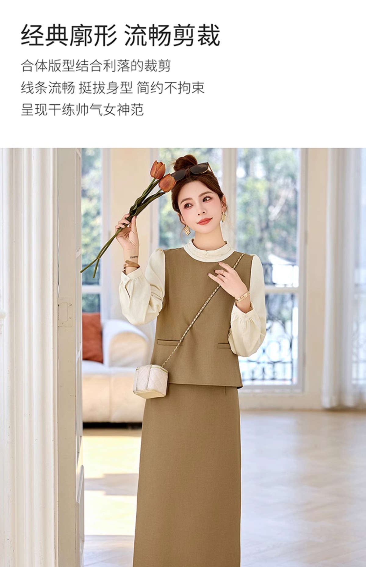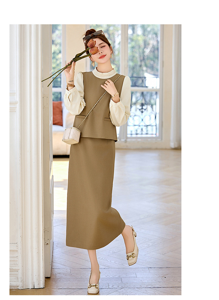 韩系时尚假两件衬衫半身裙套装女春新款通勤气质收腰显瘦两件套MEIQIN5525