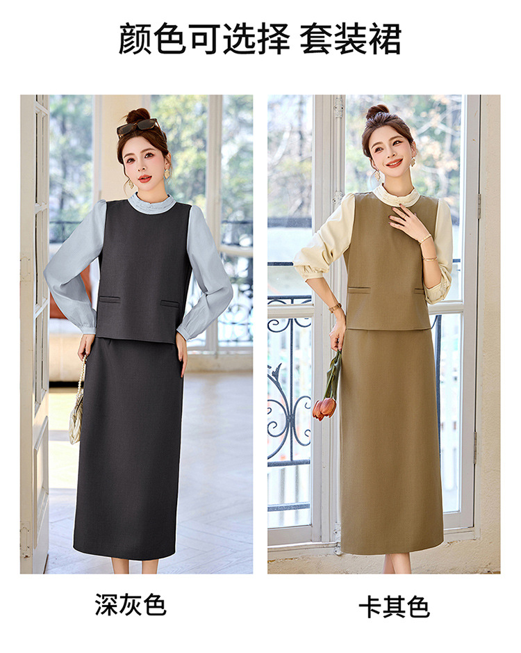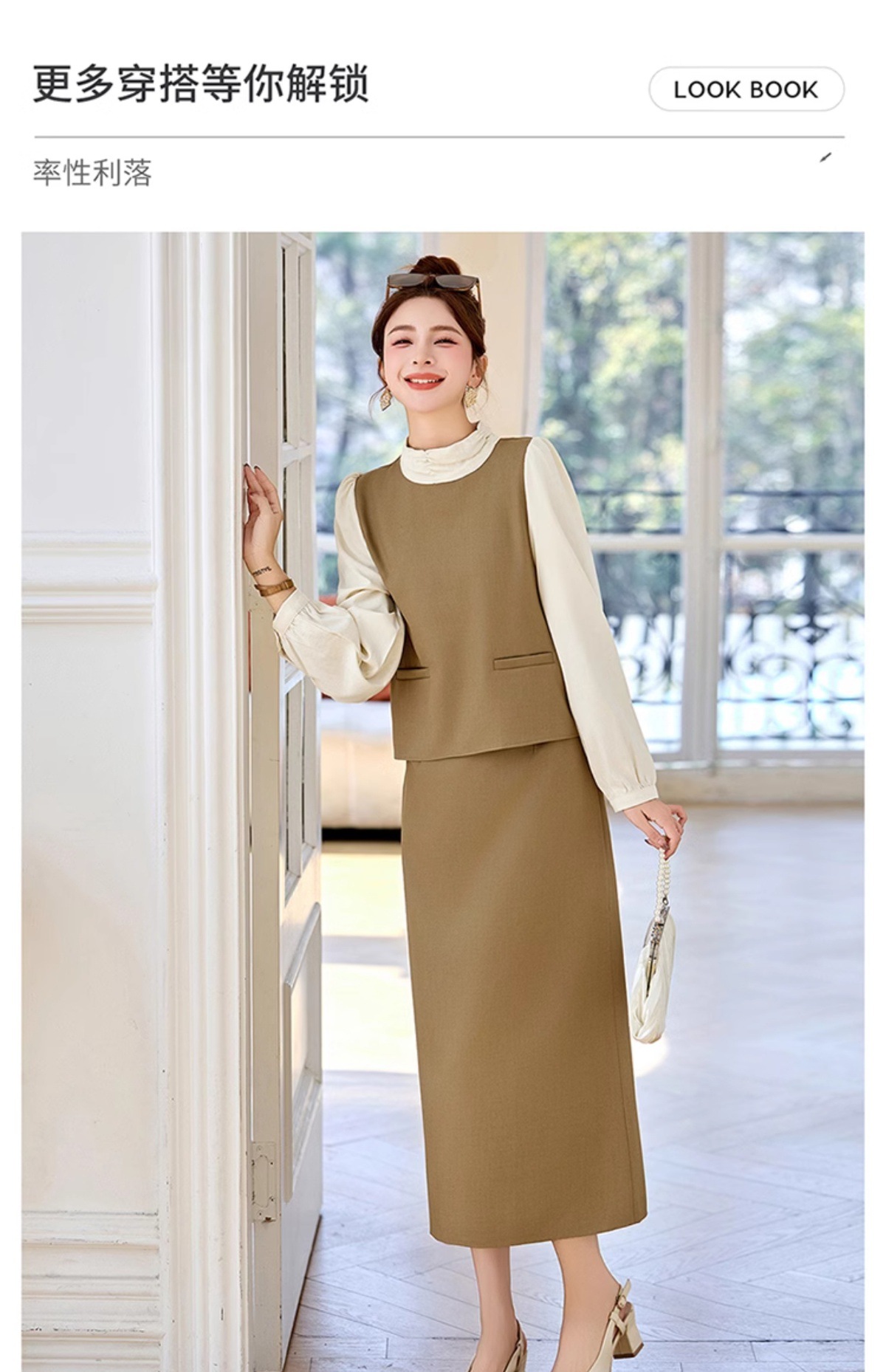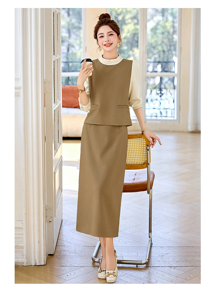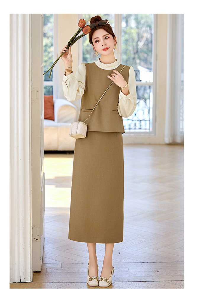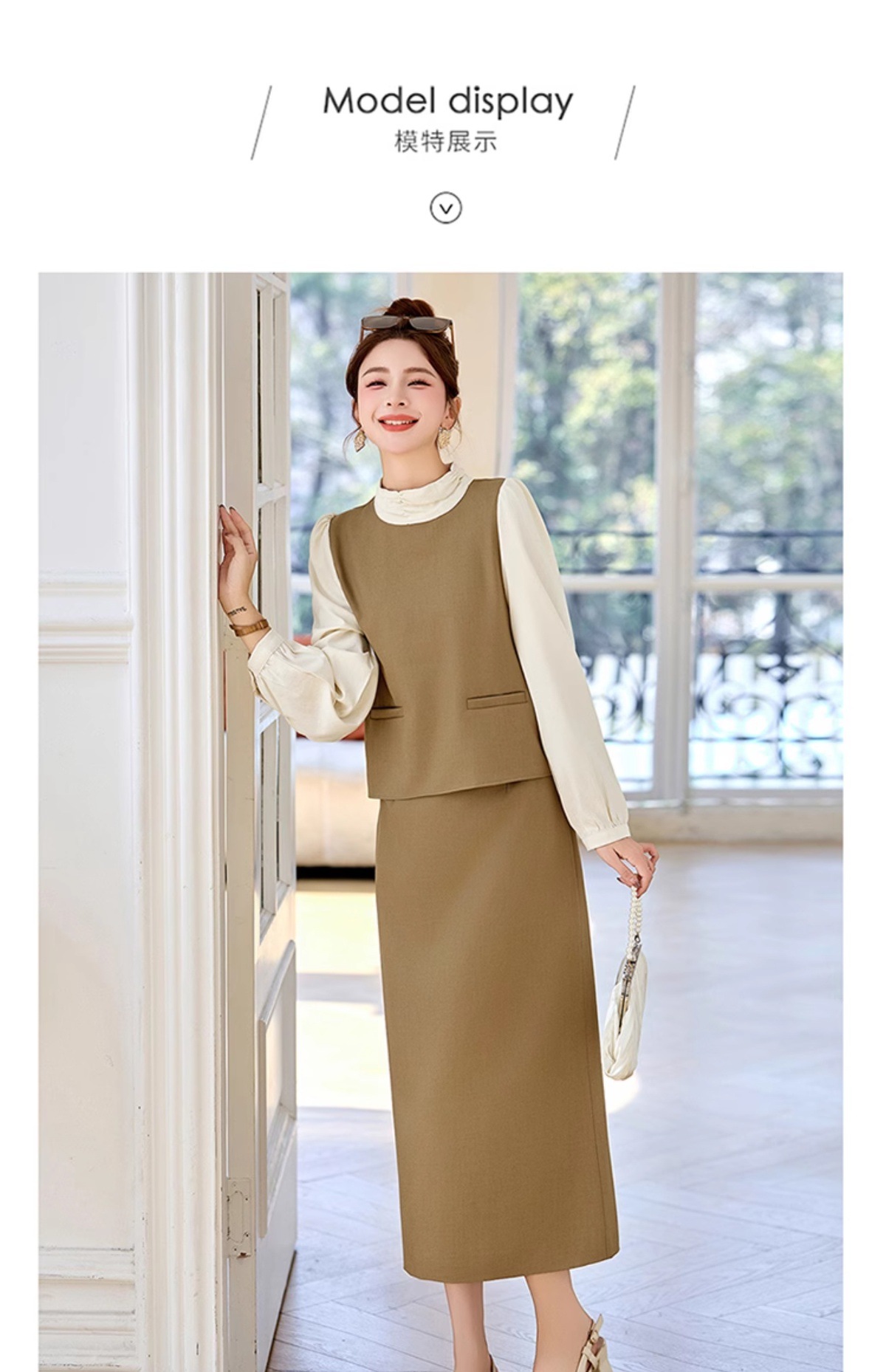 韩系时尚假两件衬衫半身裙套装女春新款通勤气质收腰显瘦两件套MEIQIN5525