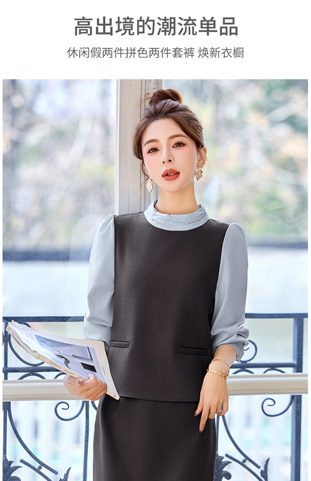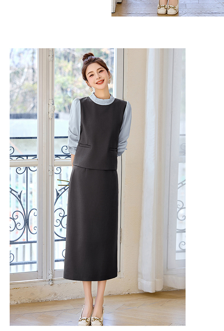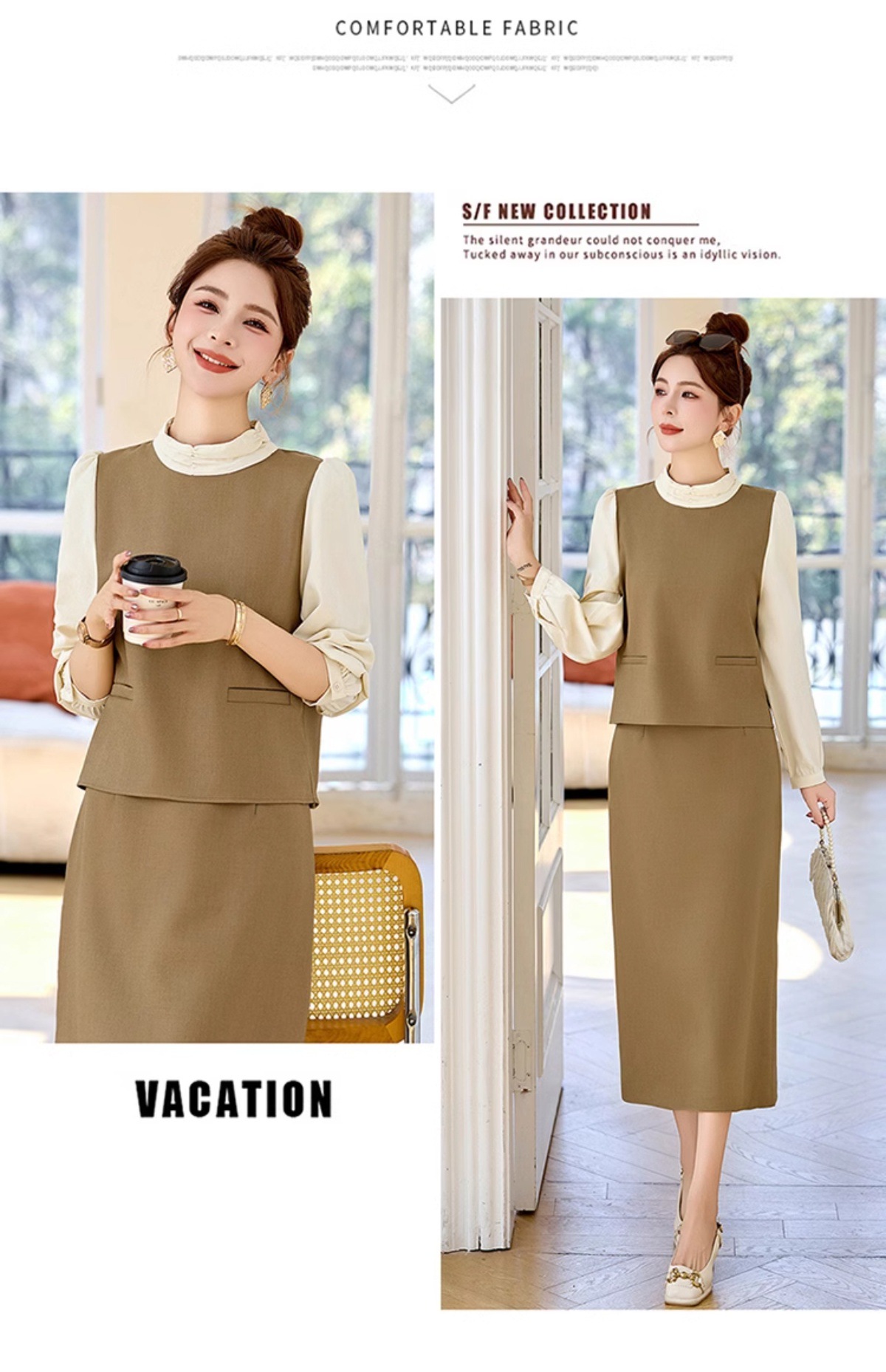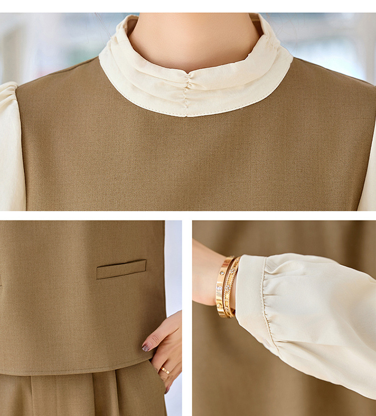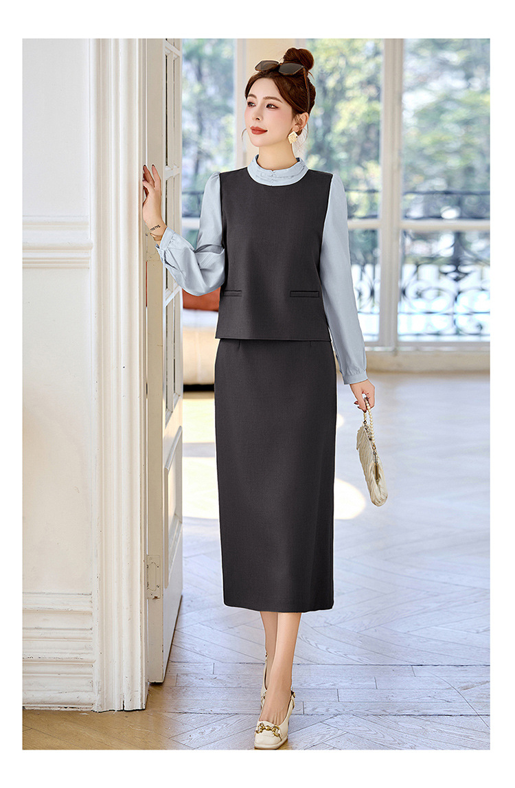 韩系时尚假两件衬衫半身裙套装女春新款通勤气质收腰显瘦两件套MEIQIN5525