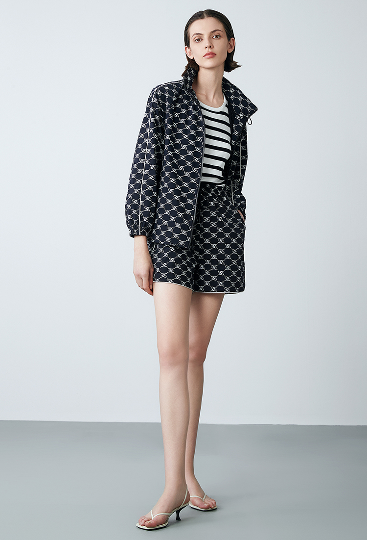 EITIE爱特爱春季新款洋气复古高腰显瘦百搭印花短裤女裤7705418